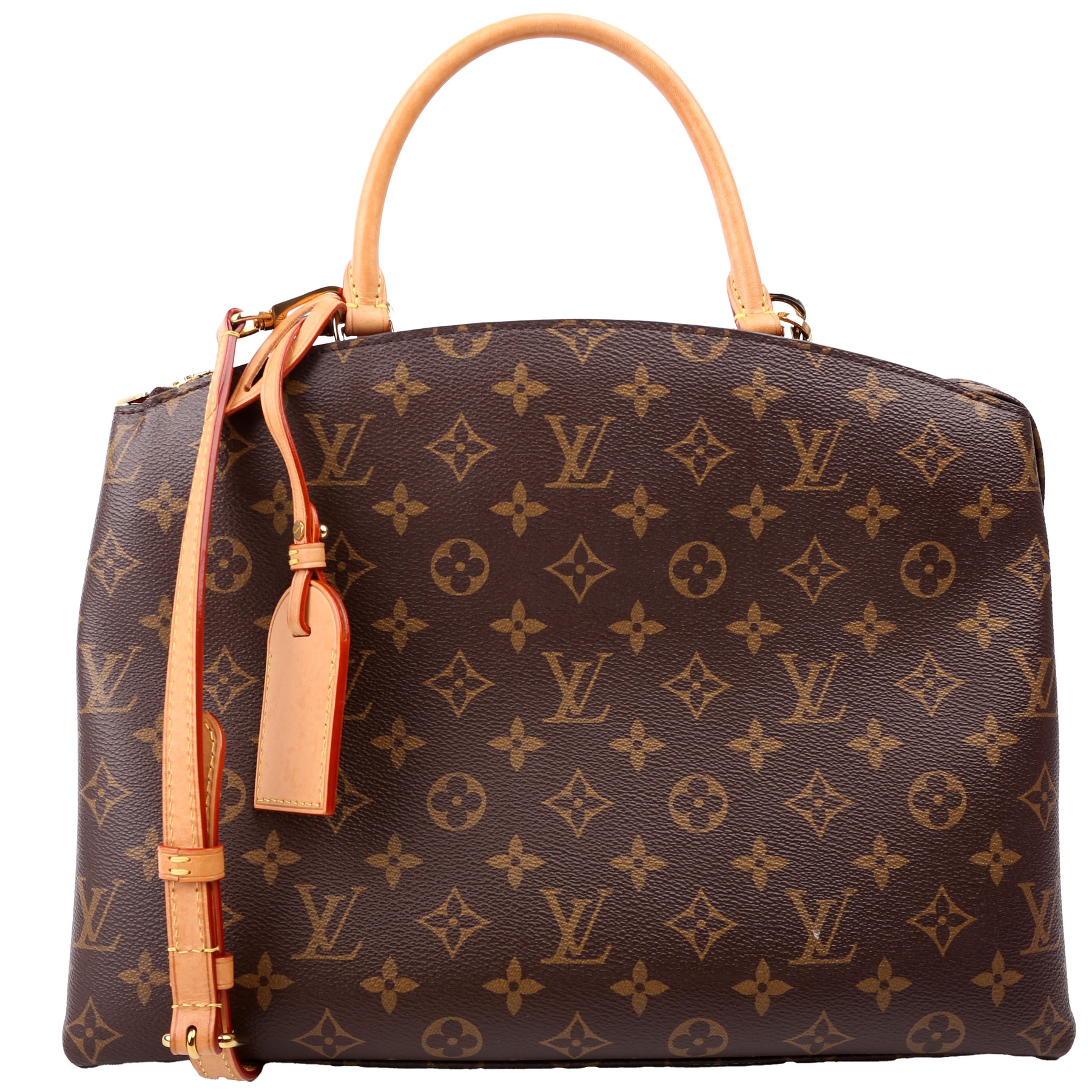 This pre-owned Louis Vuitton Grand Palais MM is guaranteed 100% authentic. The exterior is in the classic Louis Vuitton Monogram coated canvas.