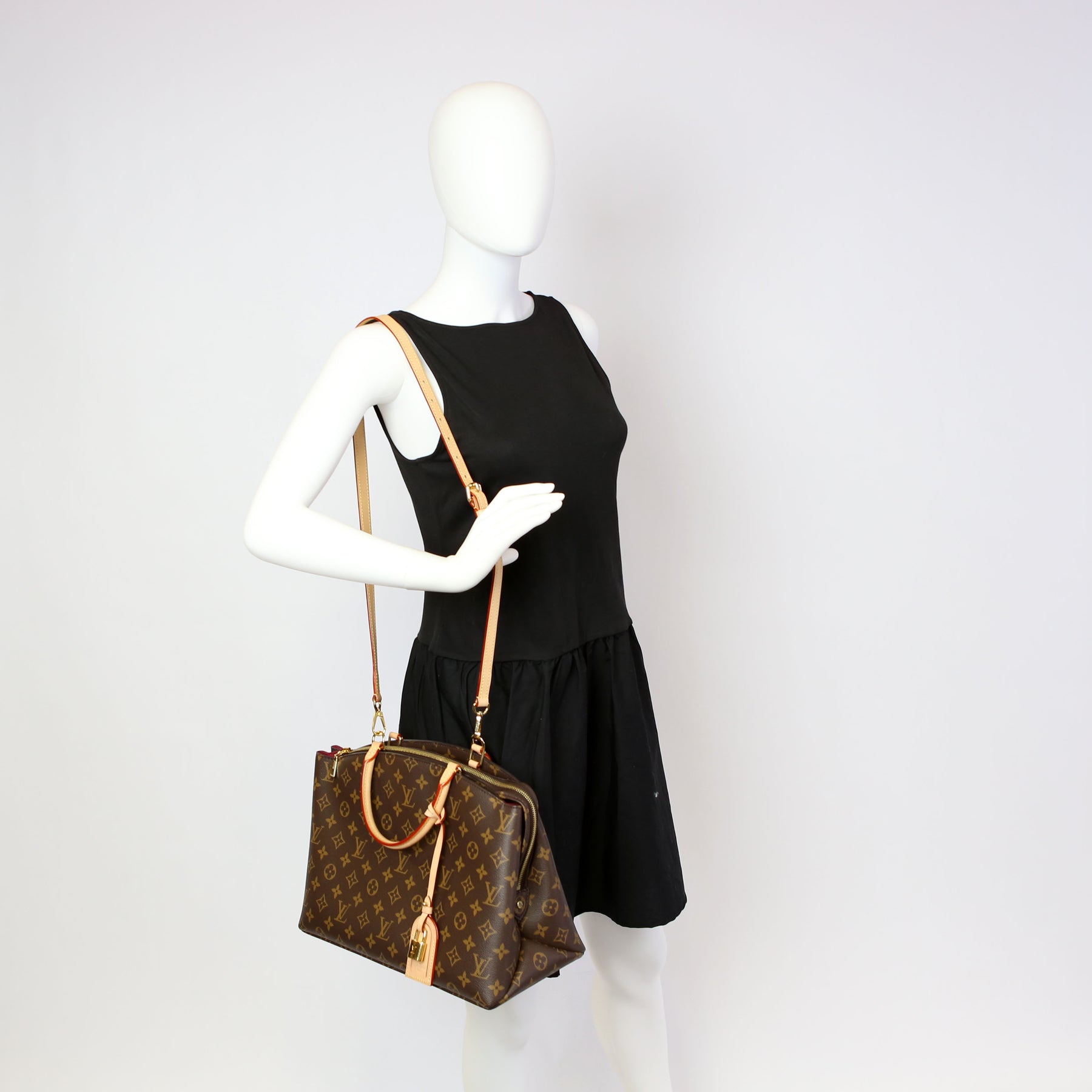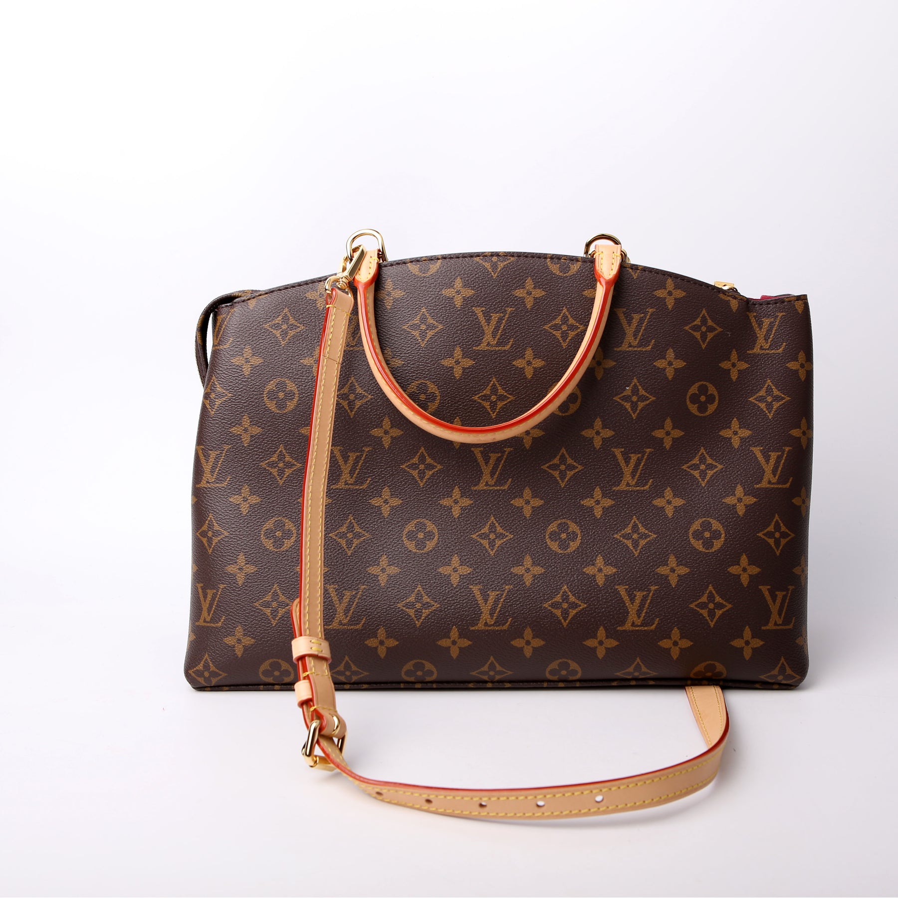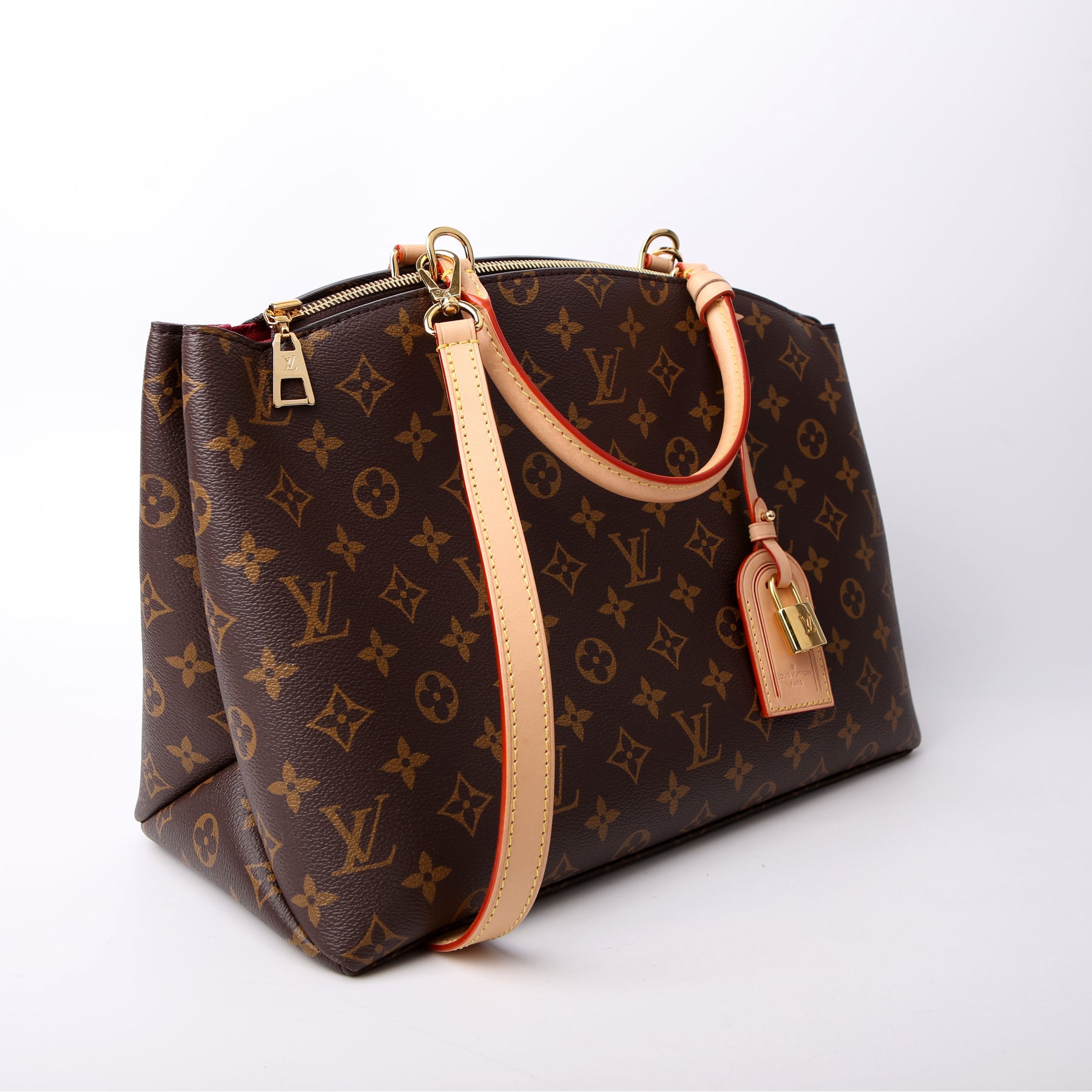 This pre-owned Louis Vuitton Grand Palais MM is guaranteed 100% authentic. The exterior is in the classic Louis Vuitton Monogram coated canvas.