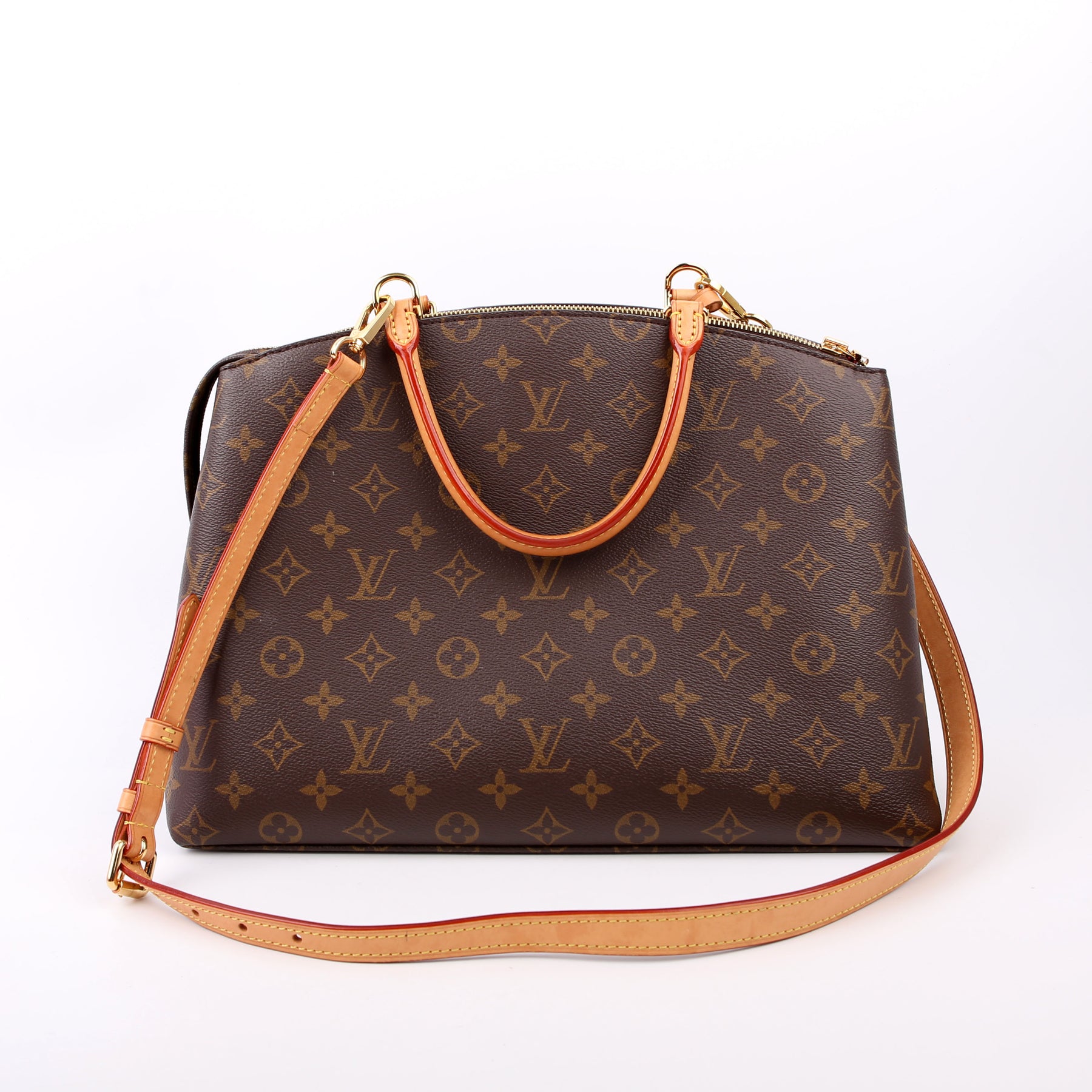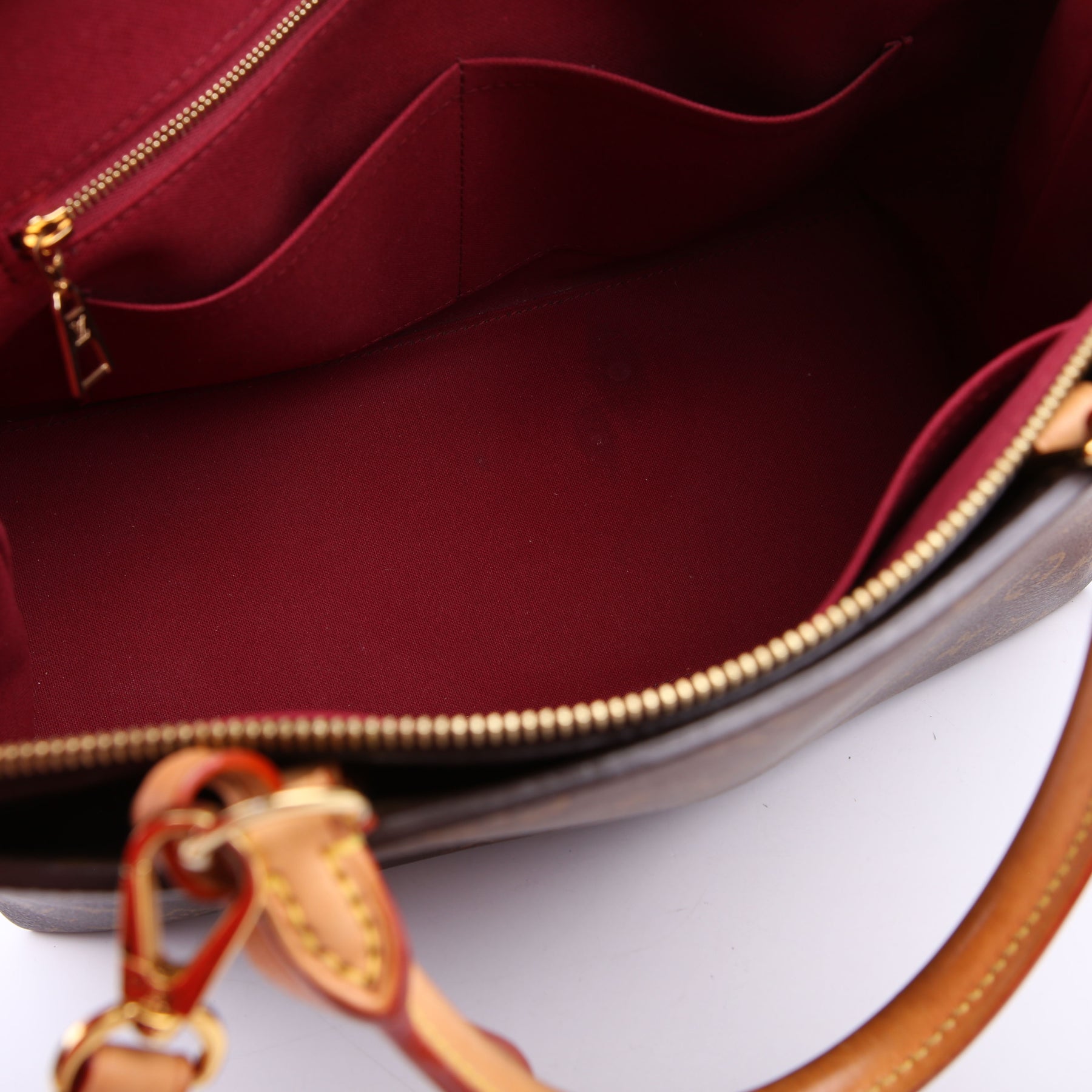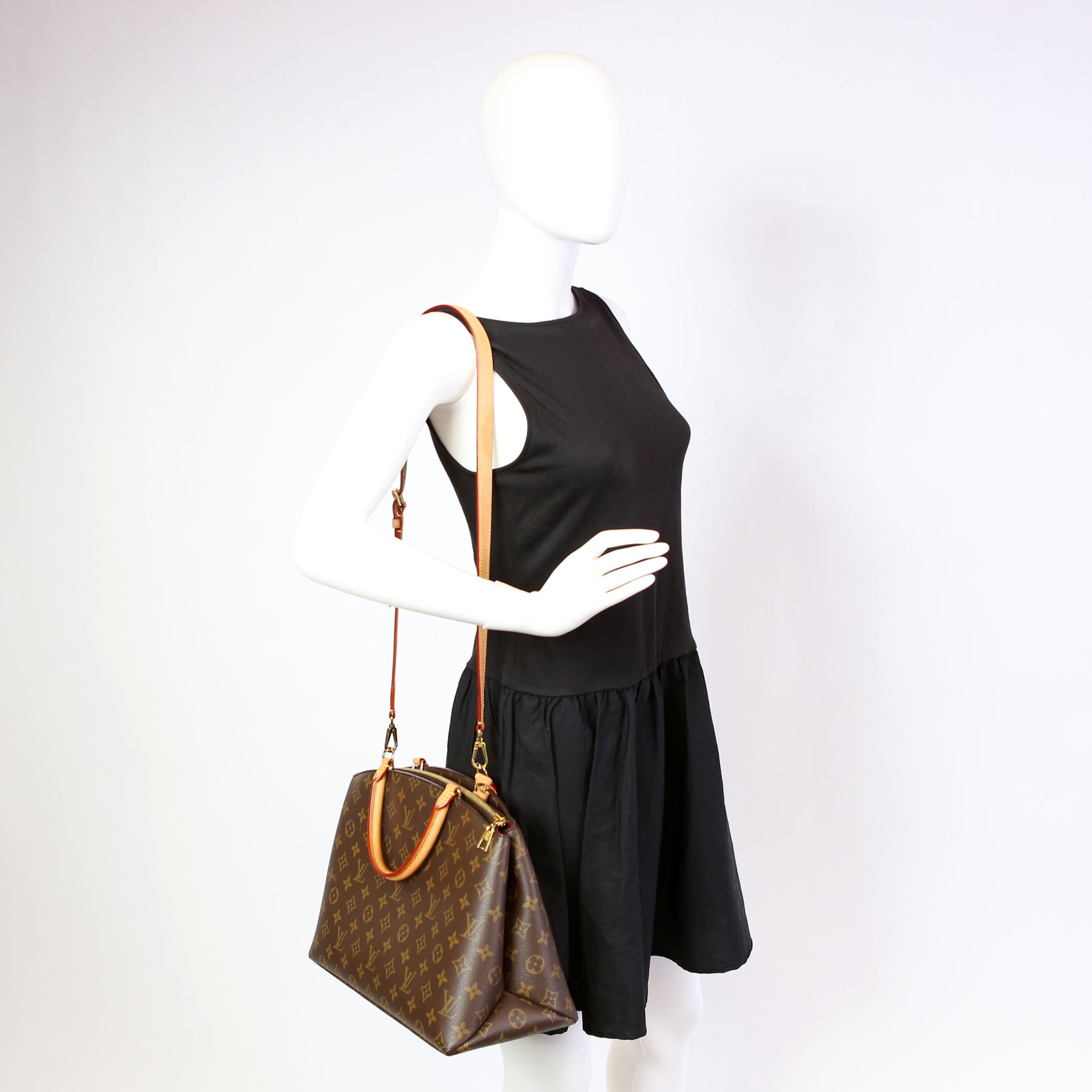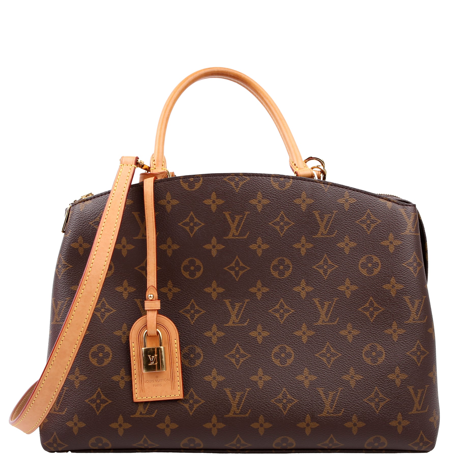 This pre-owned Louis Vuitton Grand Palais MM is guaranteed 100% authentic. The exterior is in the classic Louis Vuitton Monogram coated canvas.