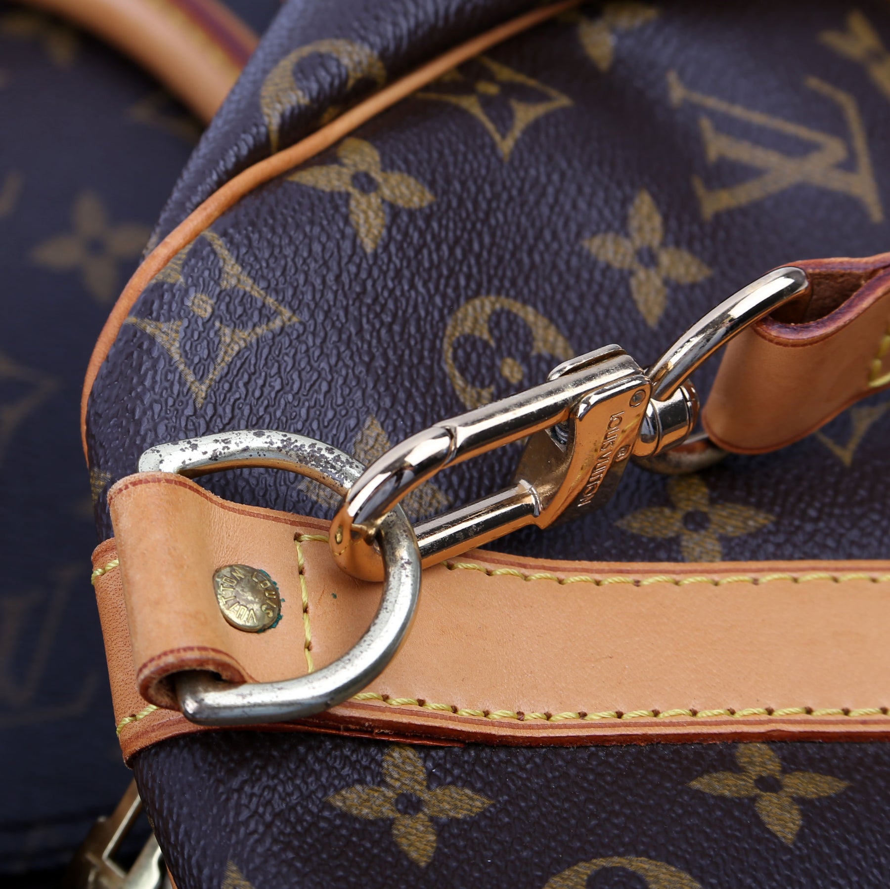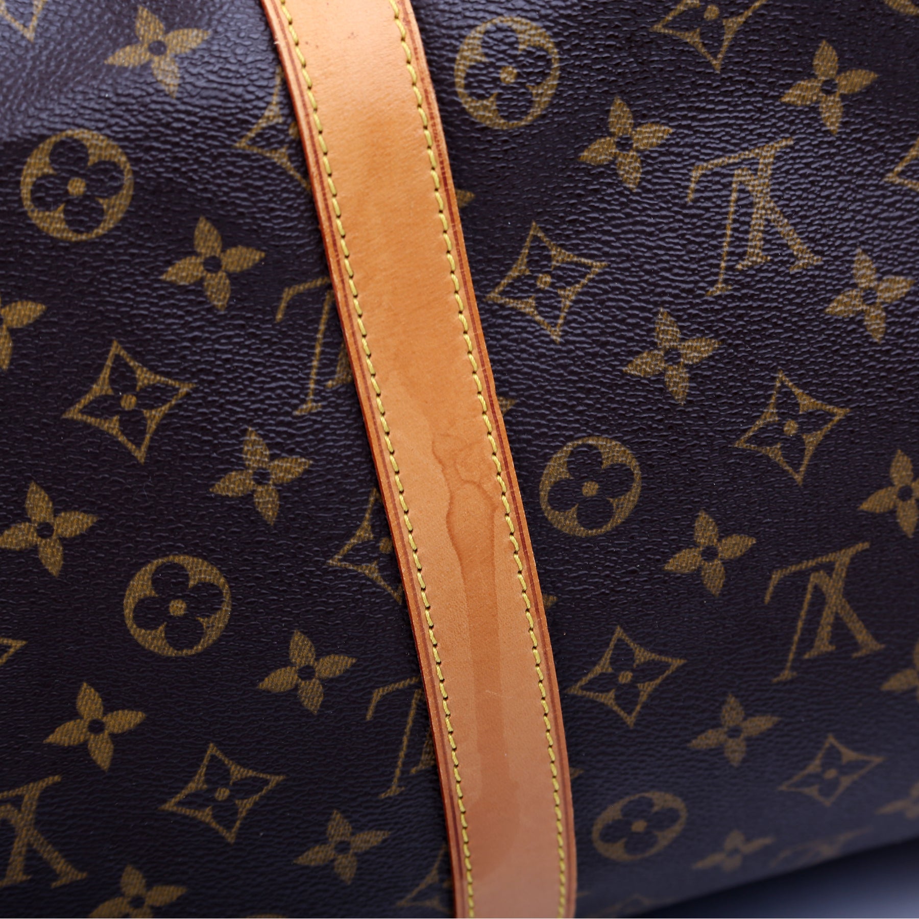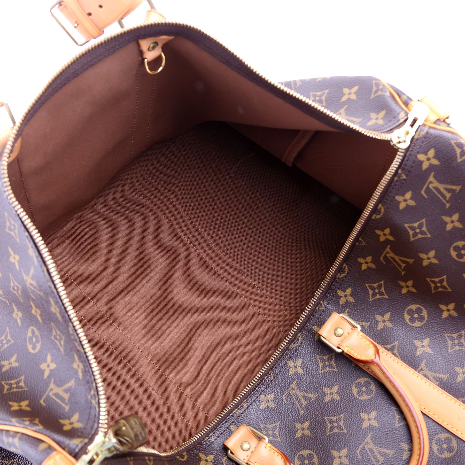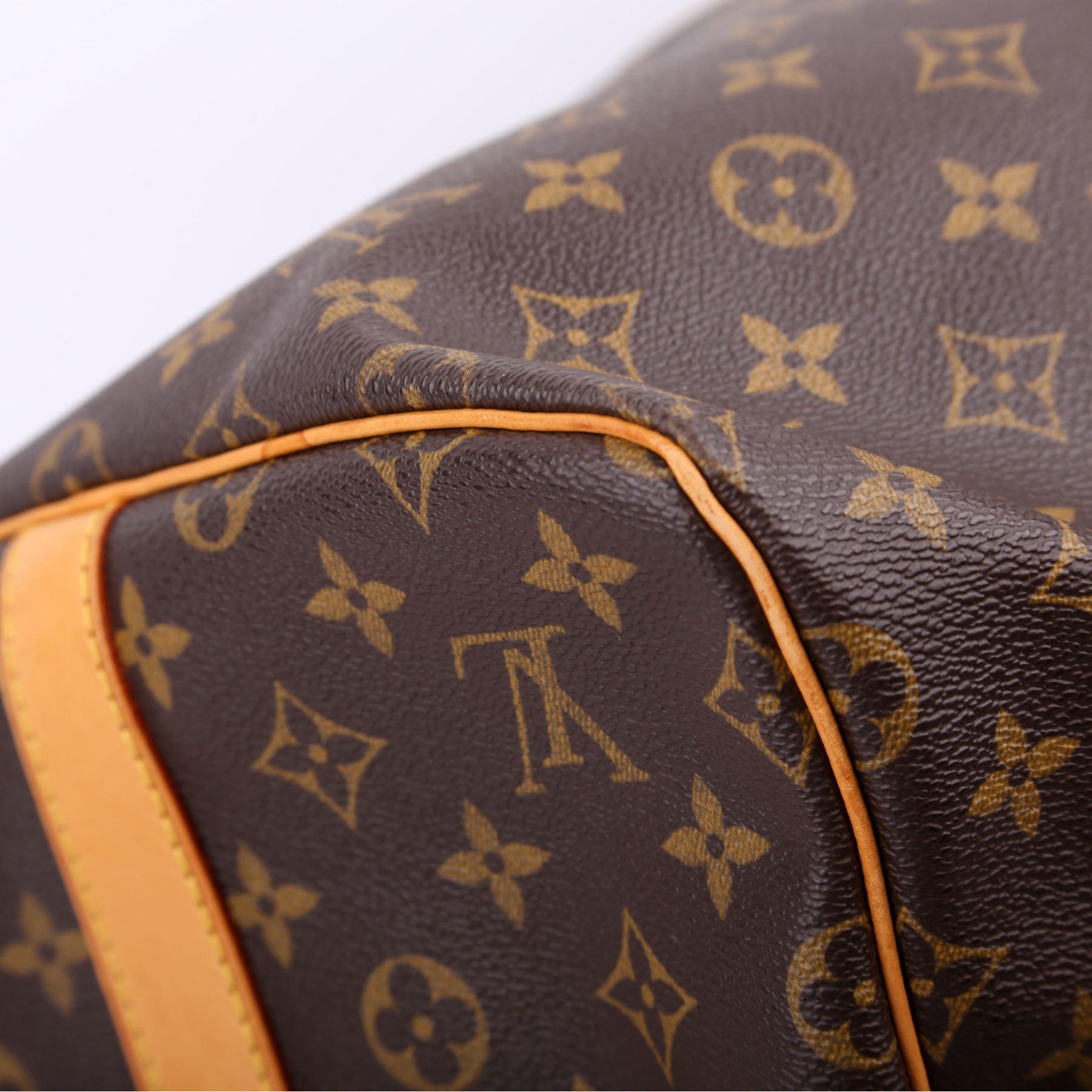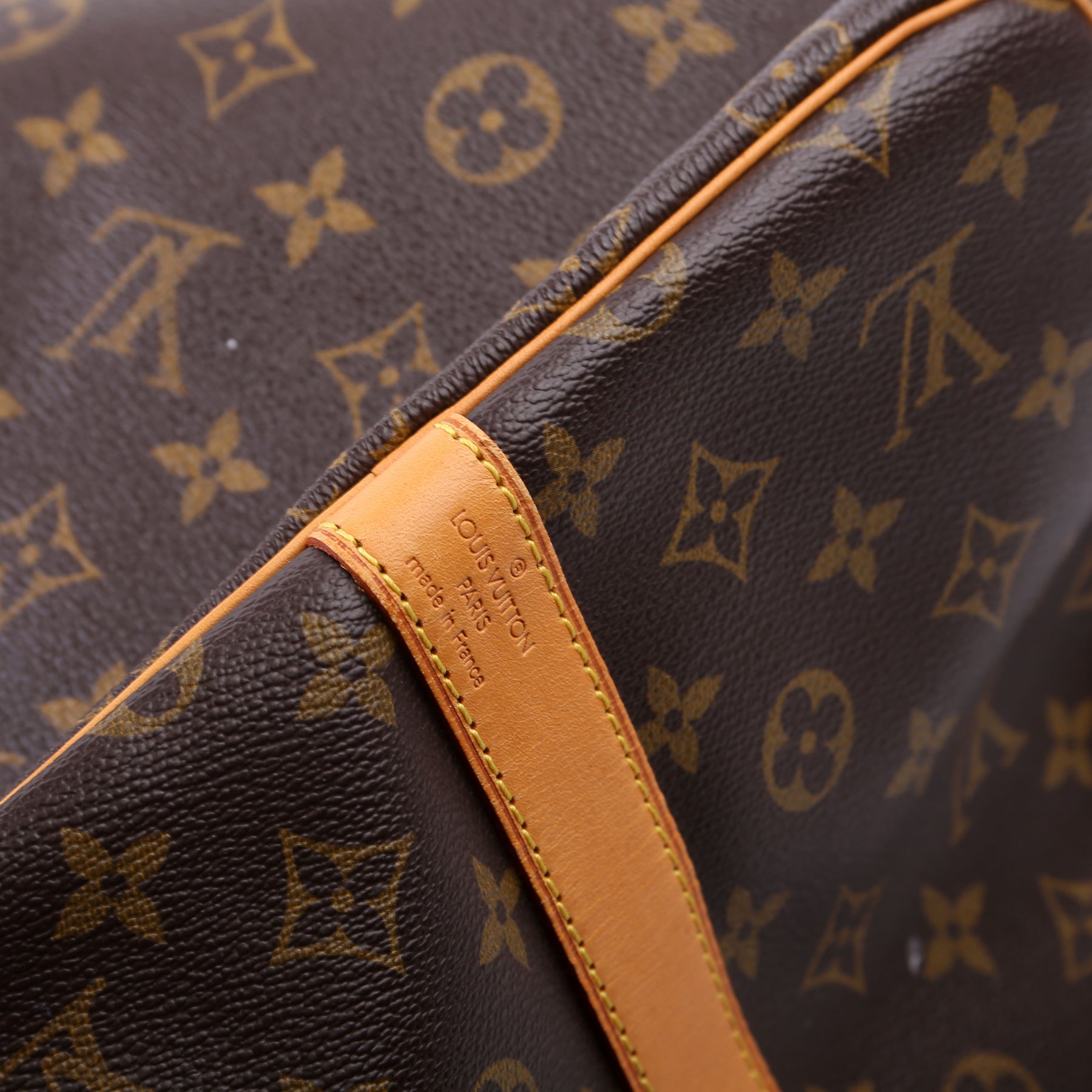 This pre-owned Louis Vuitton Keepall 55 Bandouliere is guaranteed 100% authentic. The exterior is in the classic Louis Vuitton Monogram coated canvas.