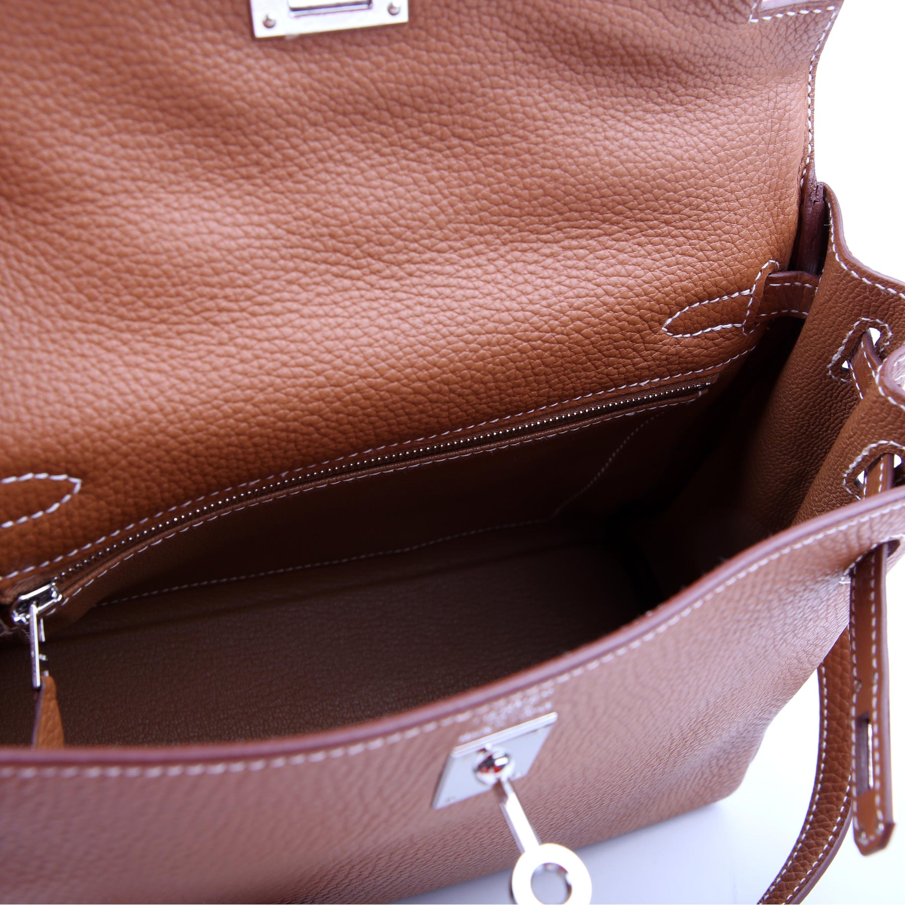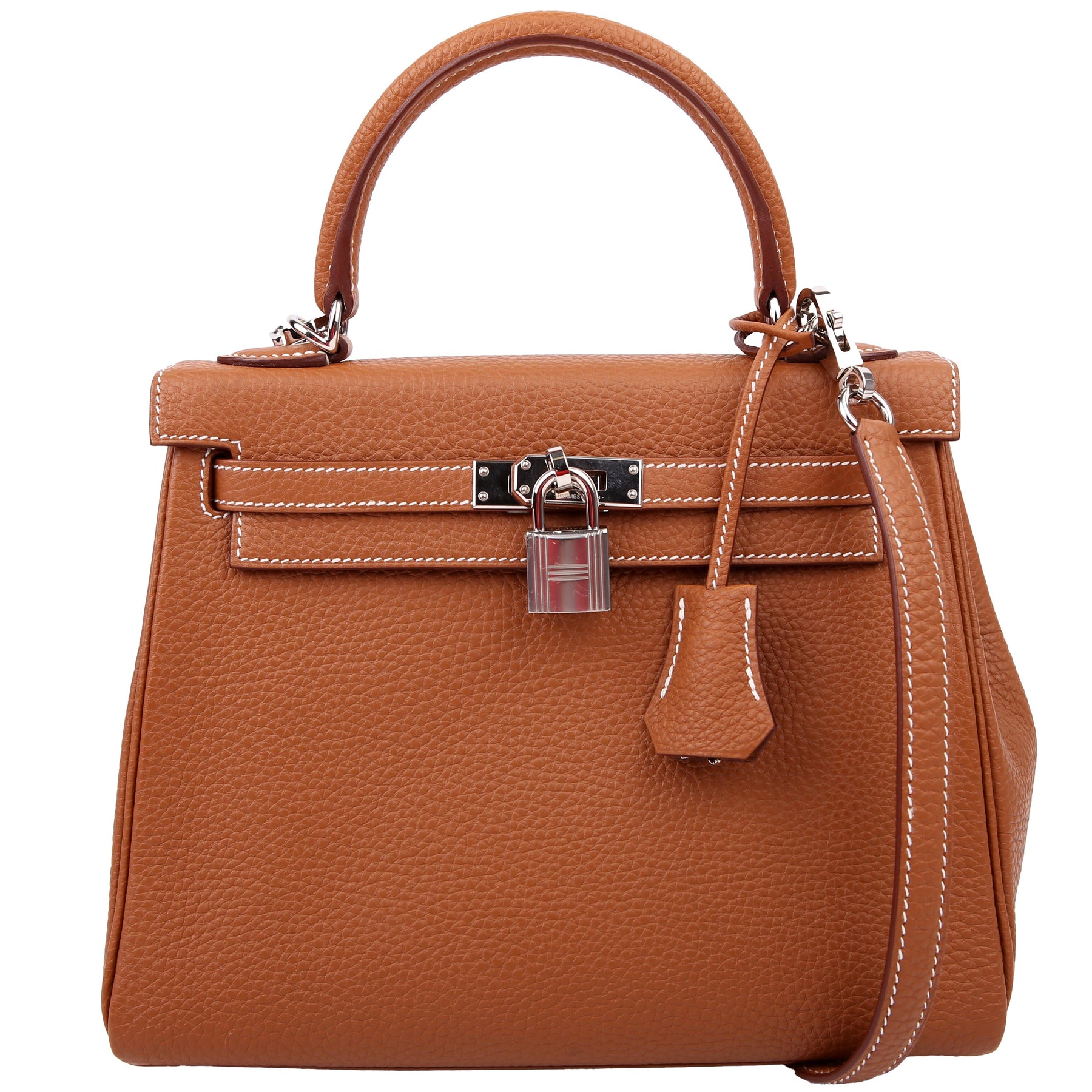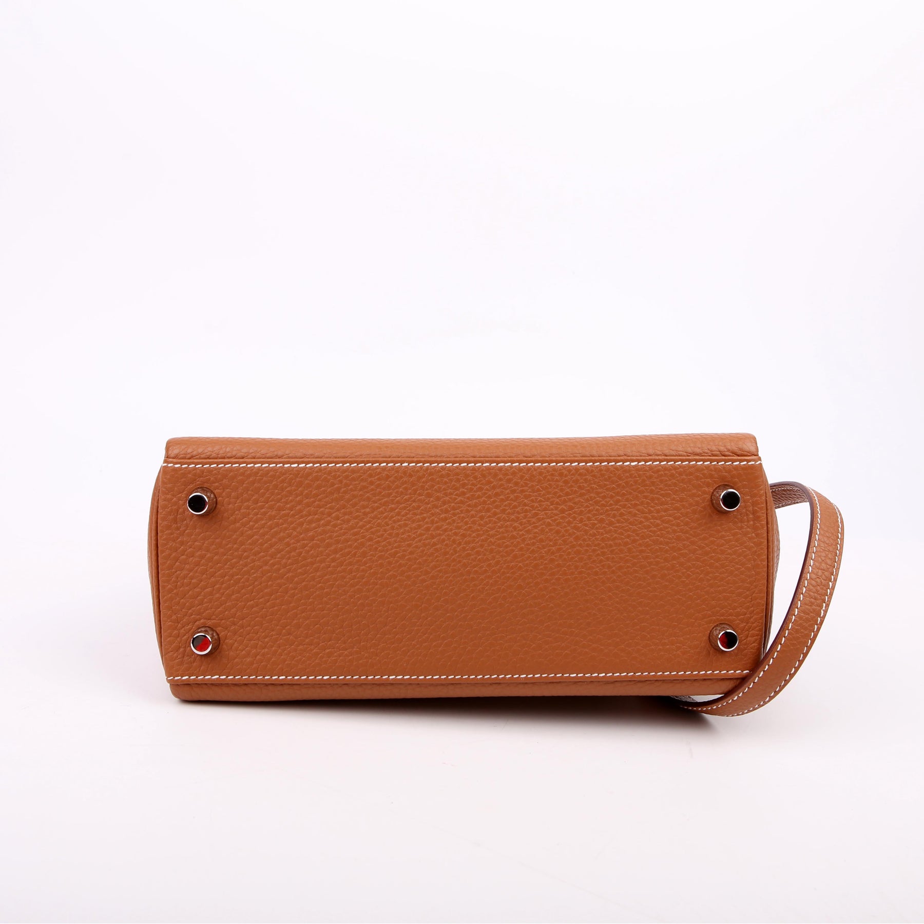 These pre-owned Hermes Kelly Retourne 25 is guaranteed 100% authentic. The exterior is in the classic Hermes Togo leather.