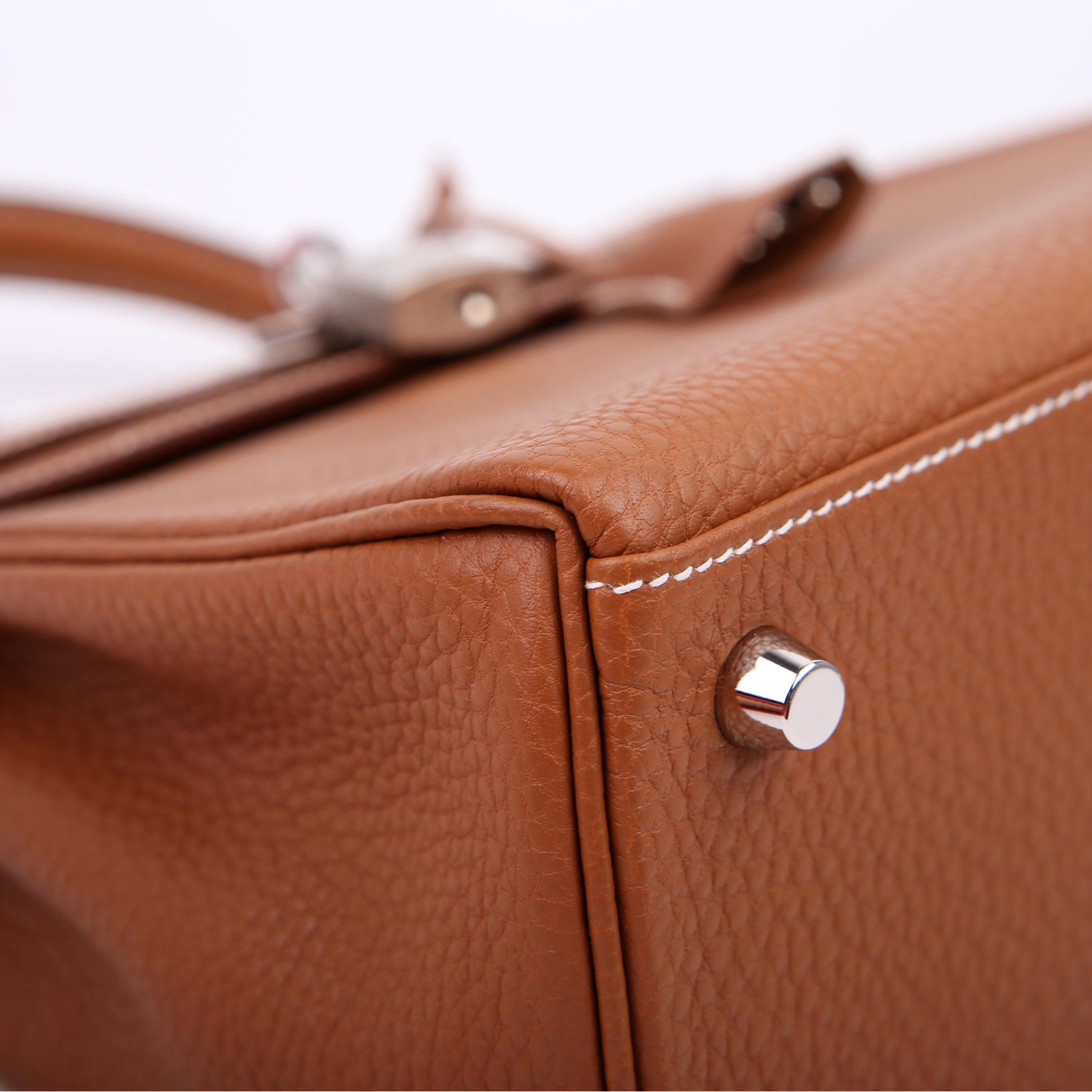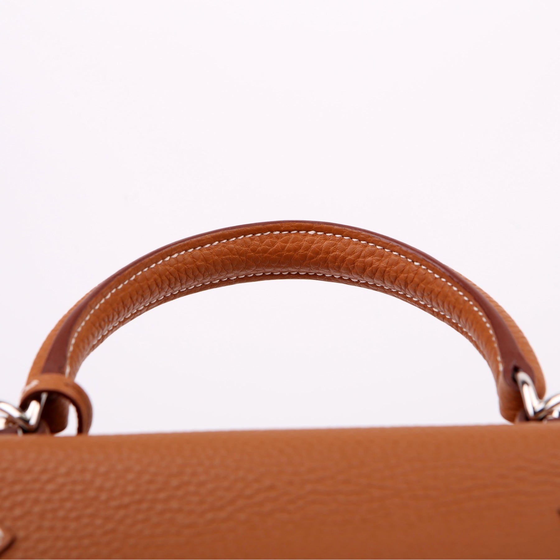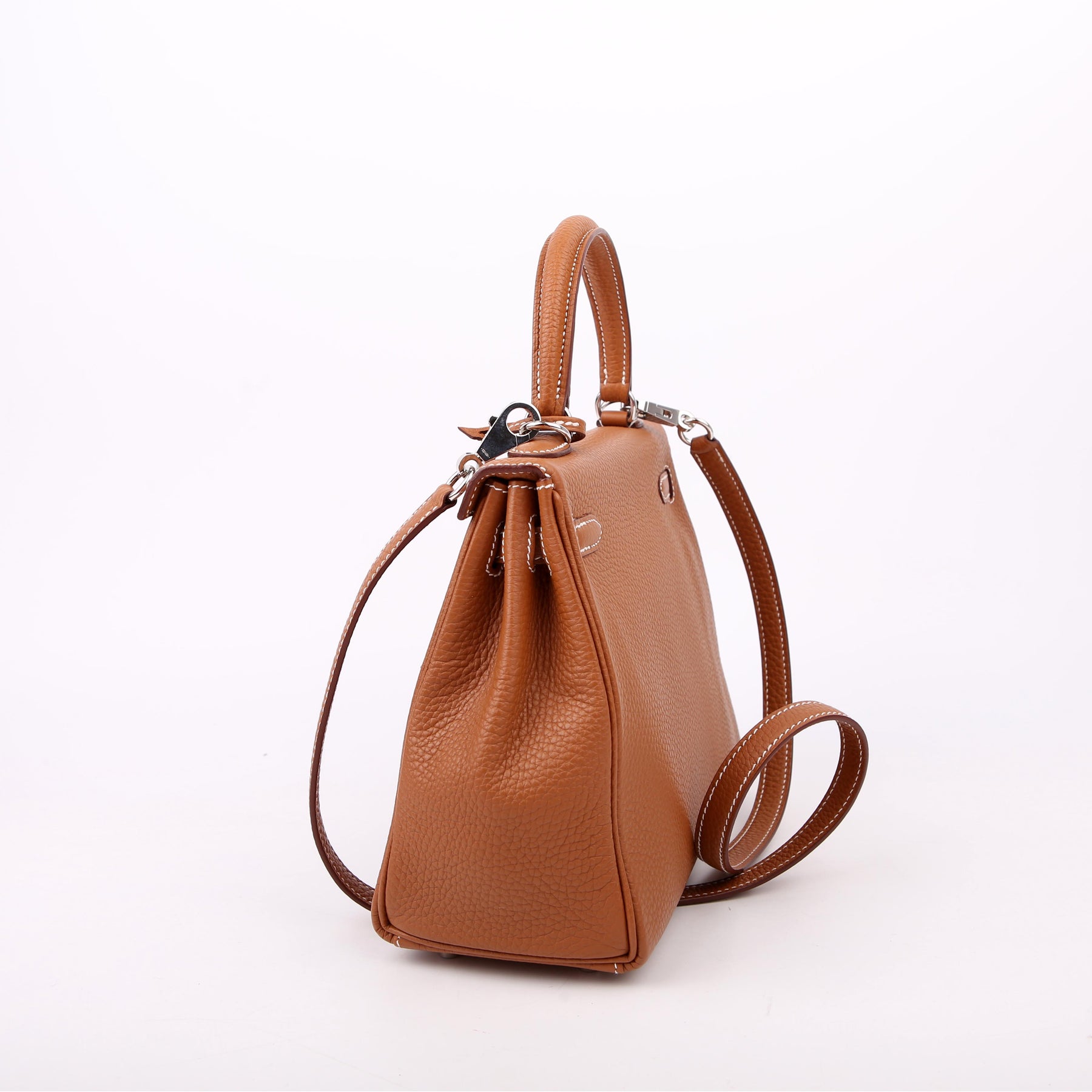 These pre-owned Hermes Kelly Retourne 25 is guaranteed 100% authentic. The exterior is in the classic Hermes Togo leather.