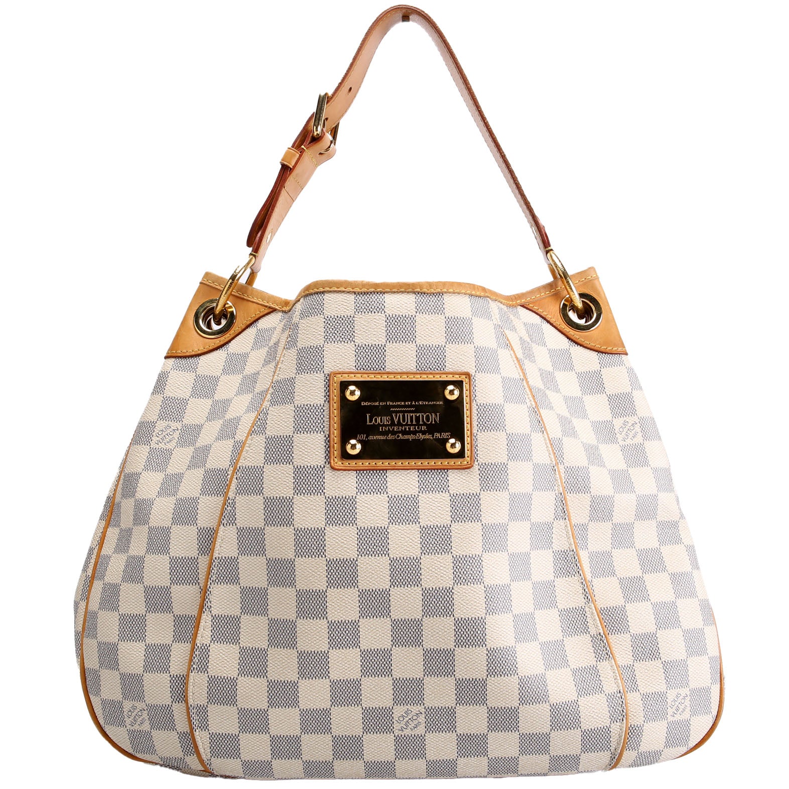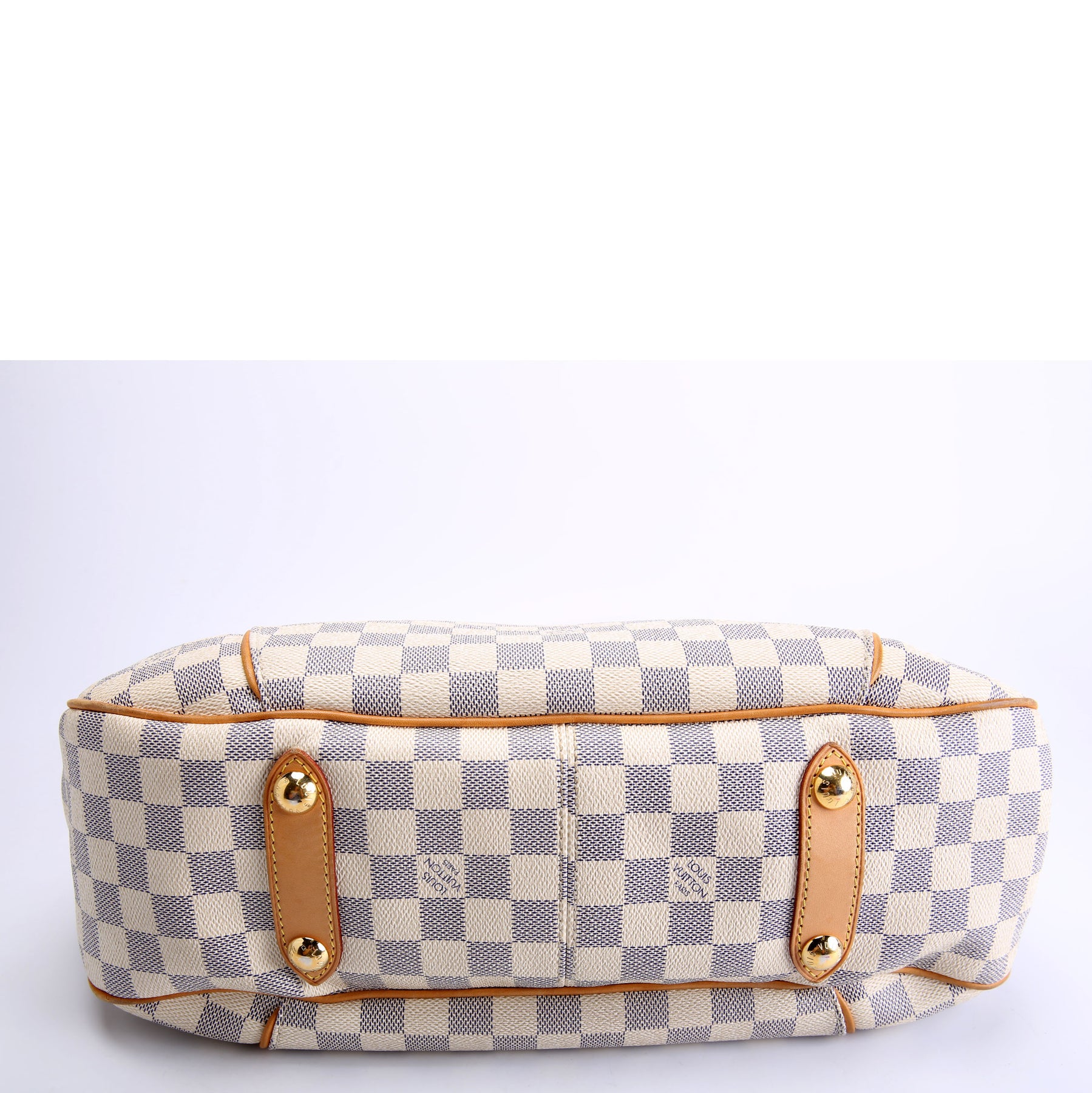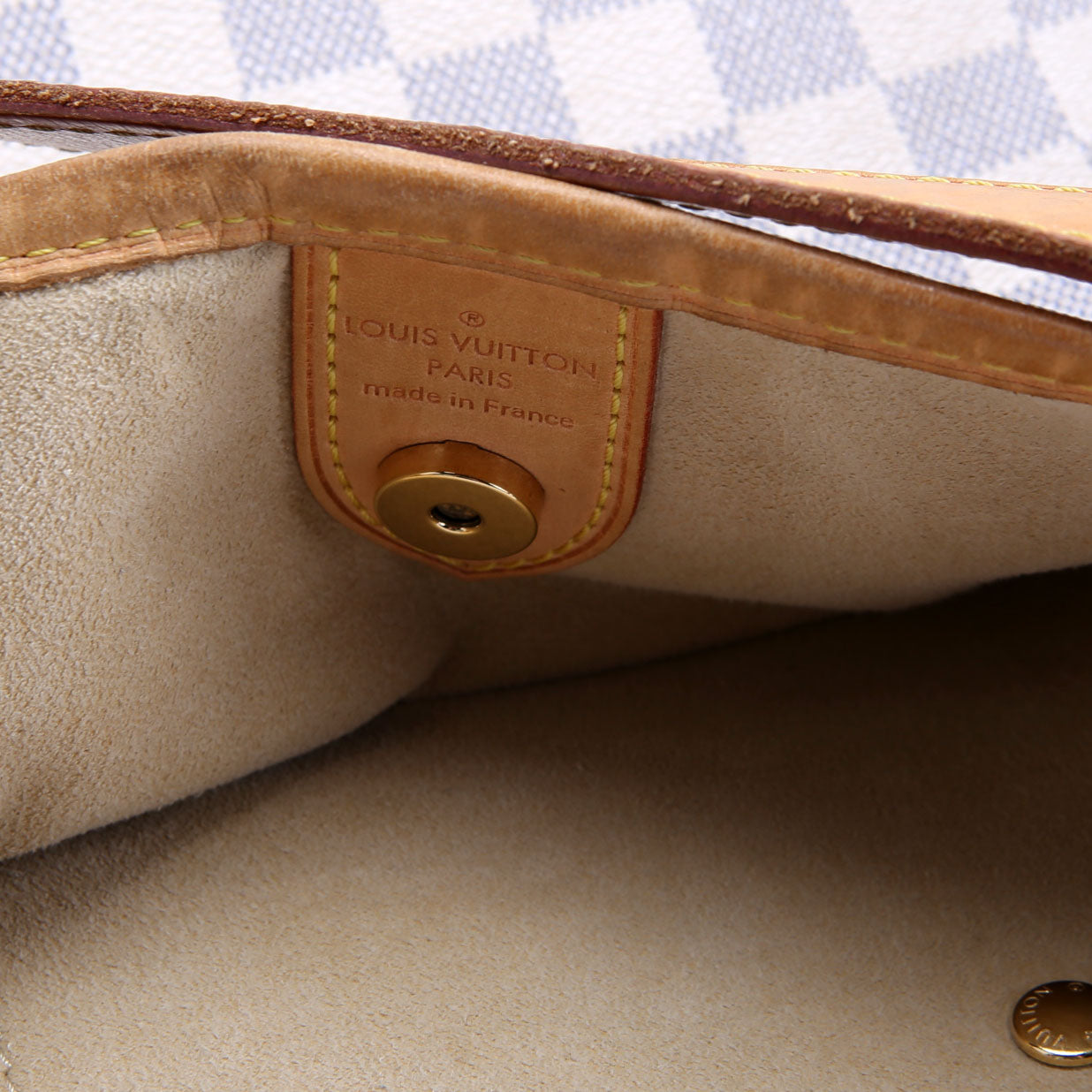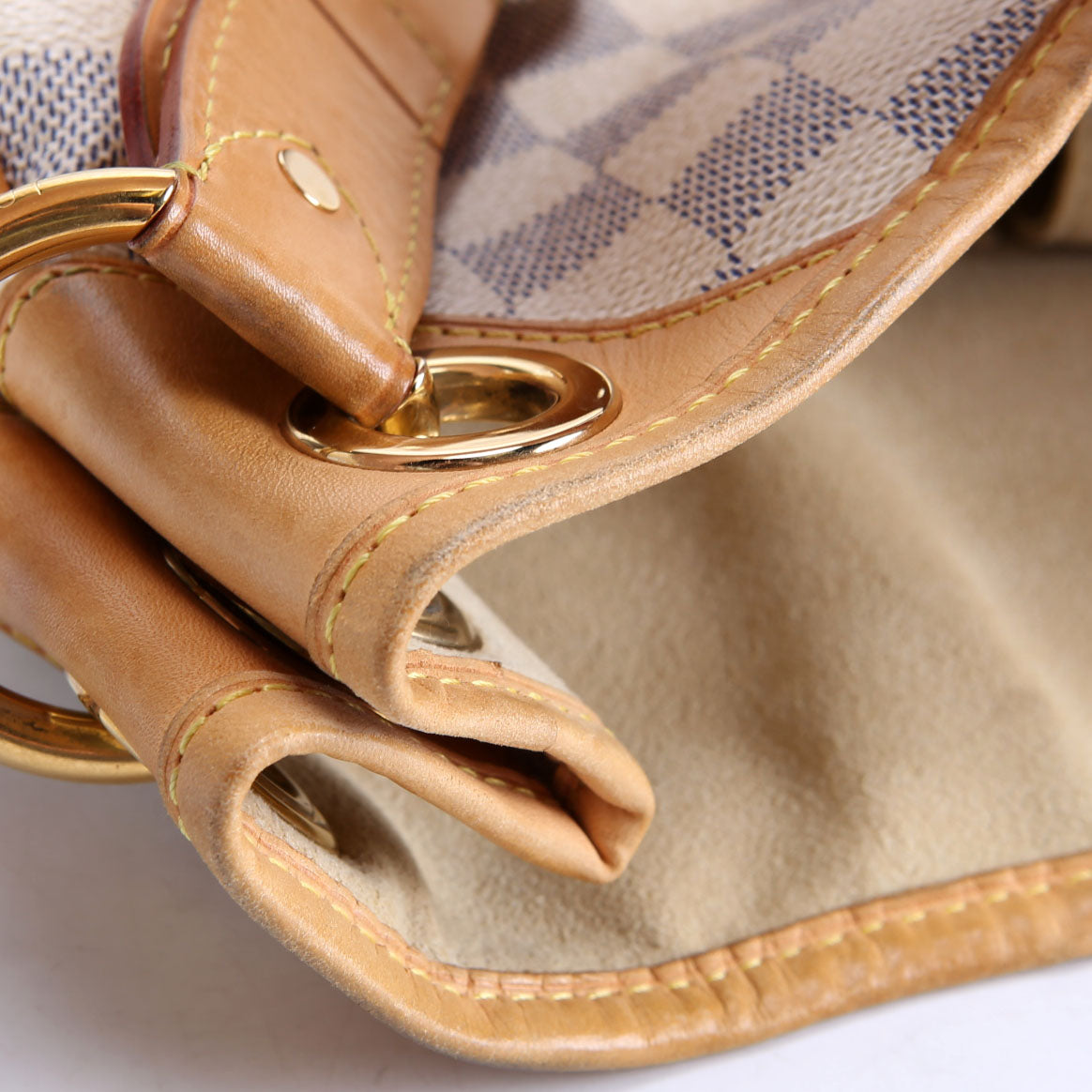 This pre-owned Louis Vuitton Galliera PM is guaranteed 100% authentic. The exterior is in the classic Louis Vuitton Damier Azur coated canvas.