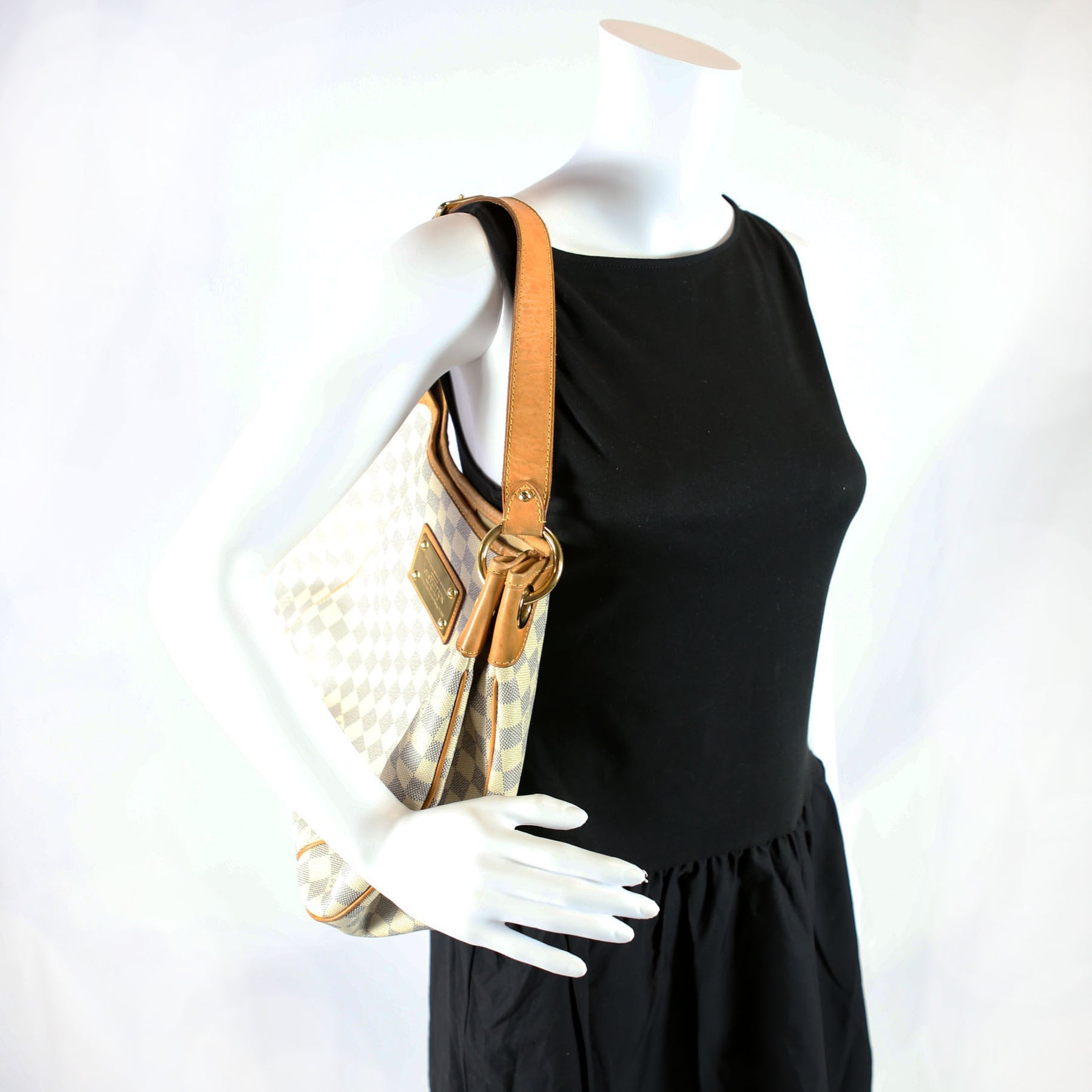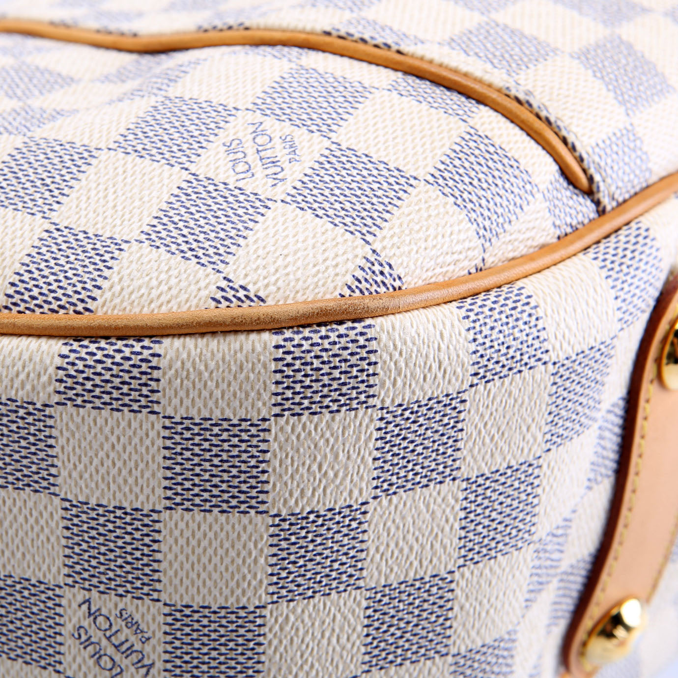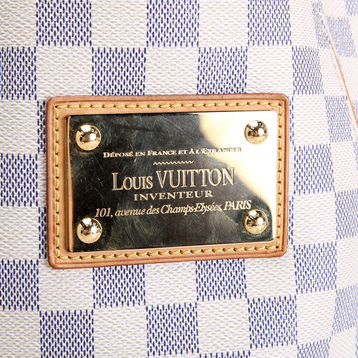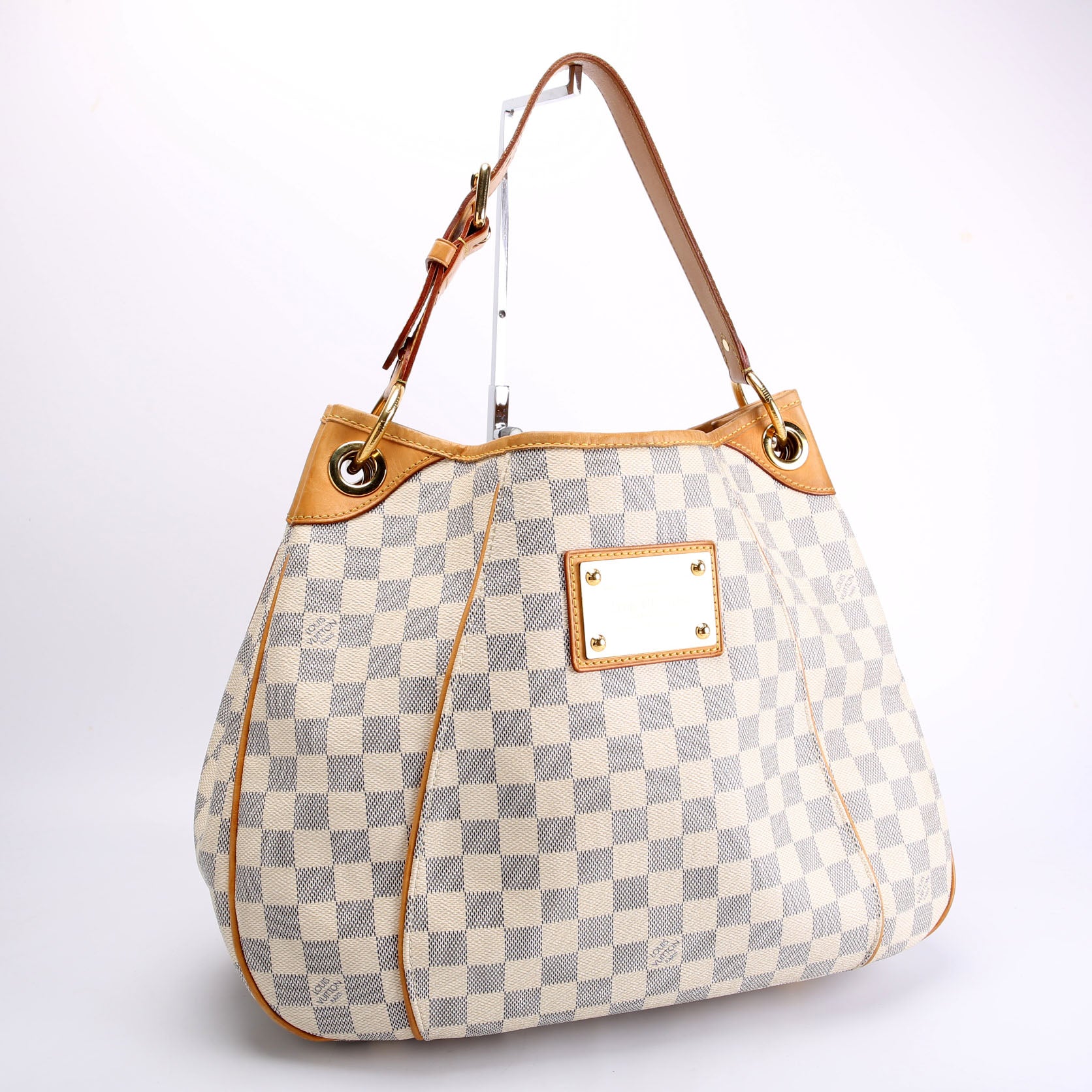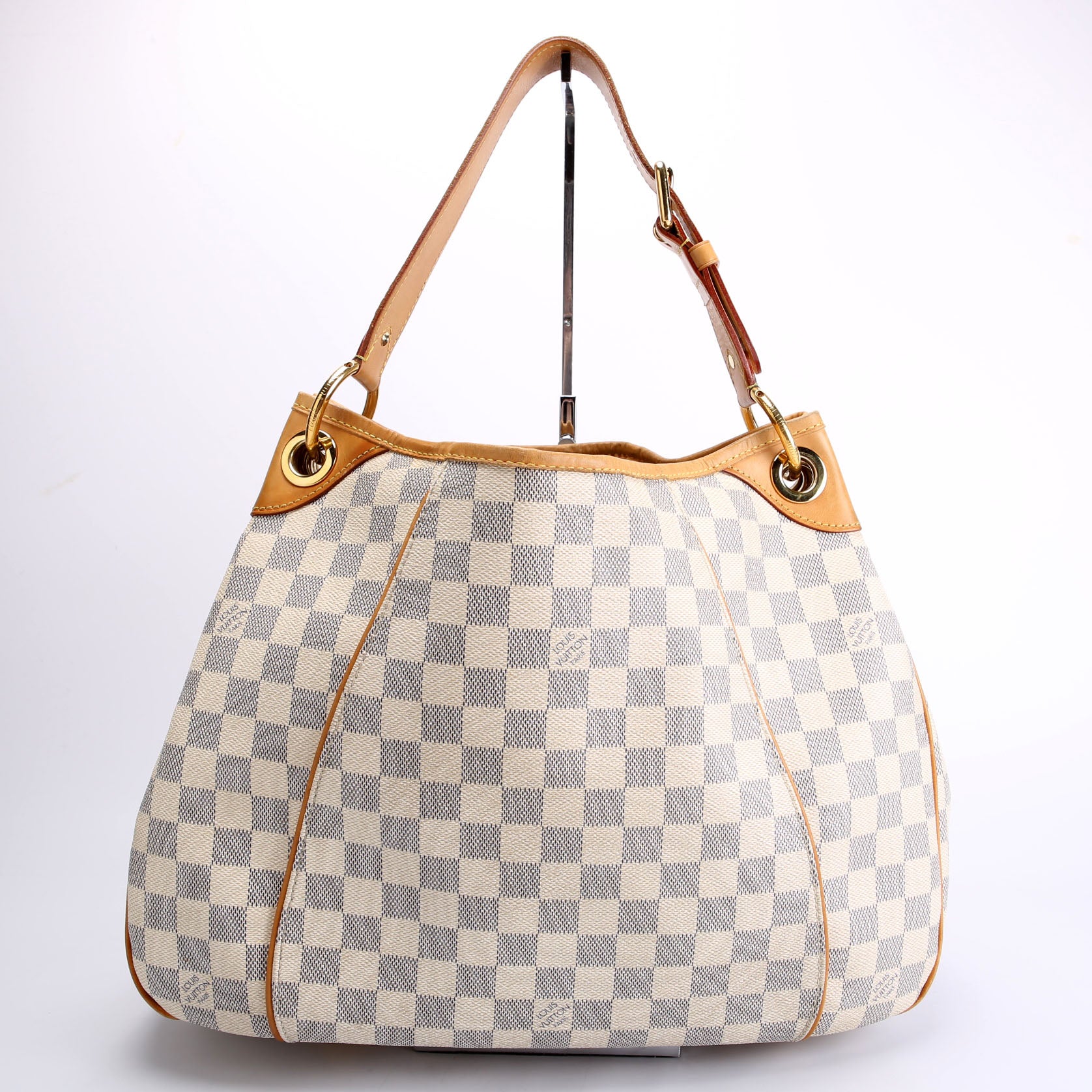 This pre-owned Louis Vuitton Galliera PM is guaranteed 100% authentic. The exterior is in the classic Louis Vuitton Damier Azur coated canvas.