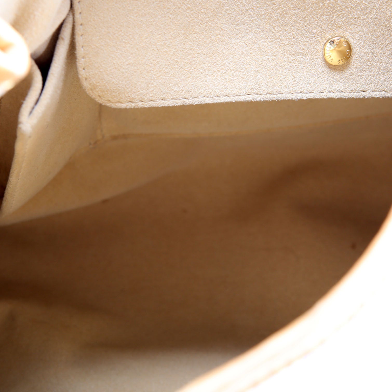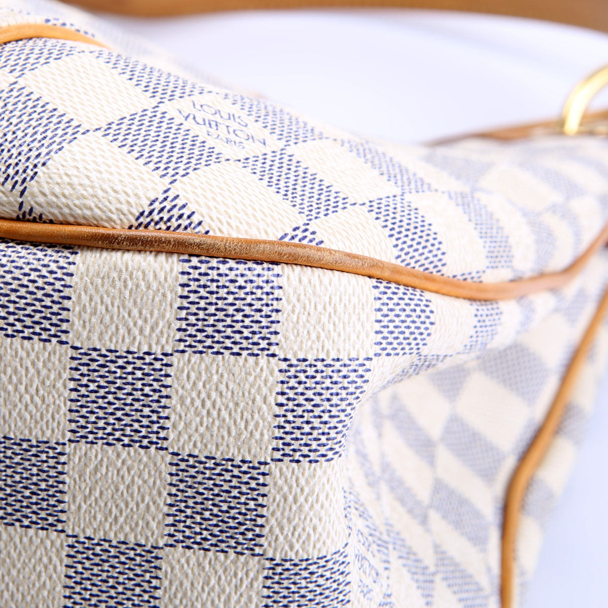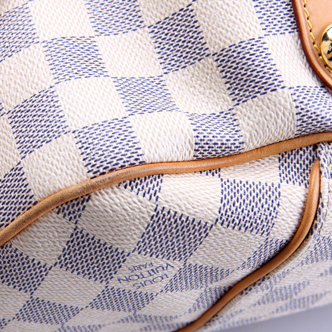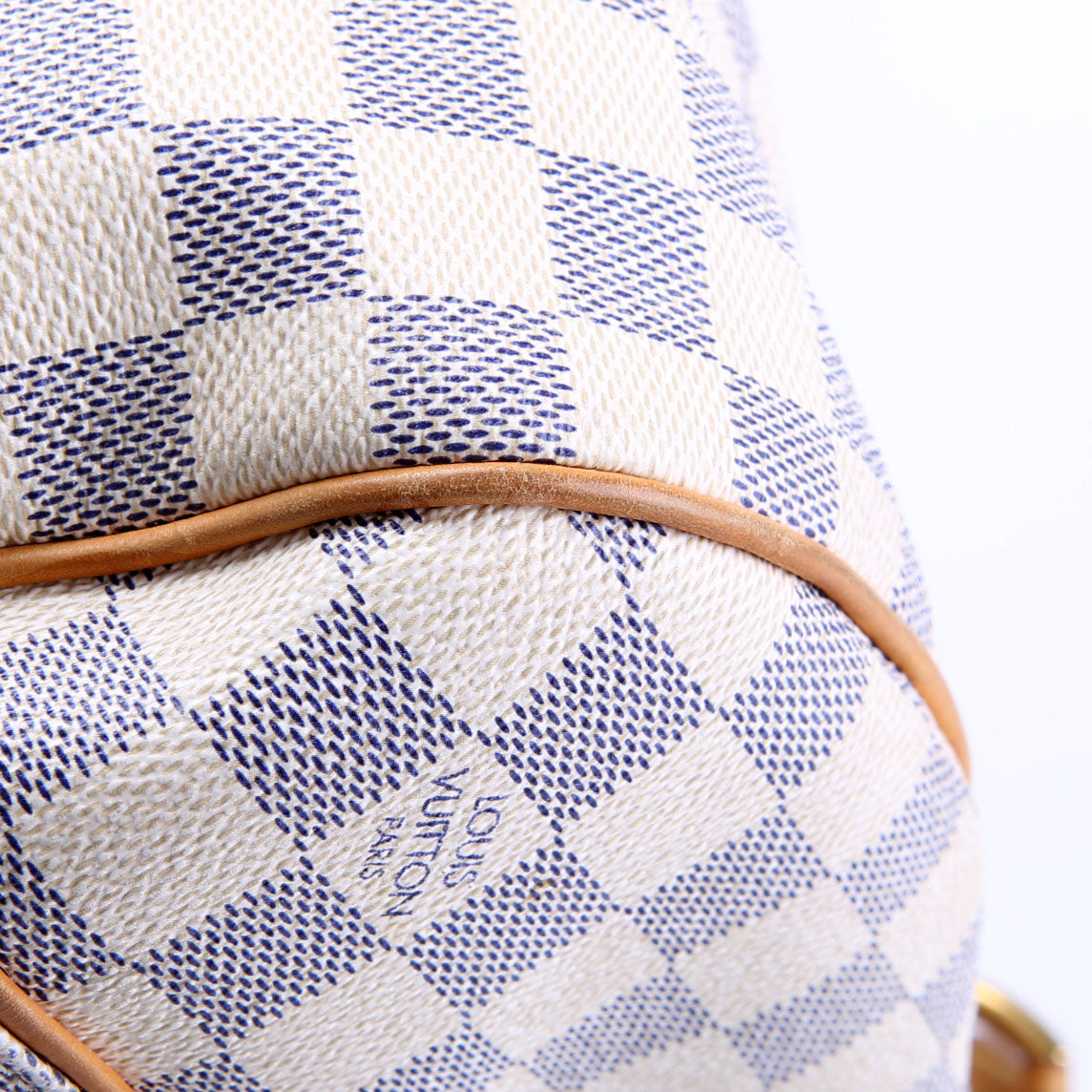 This pre-owned Louis Vuitton Galliera PM is guaranteed 100% authentic. The exterior is in the classic Louis Vuitton Damier Azur coated canvas.