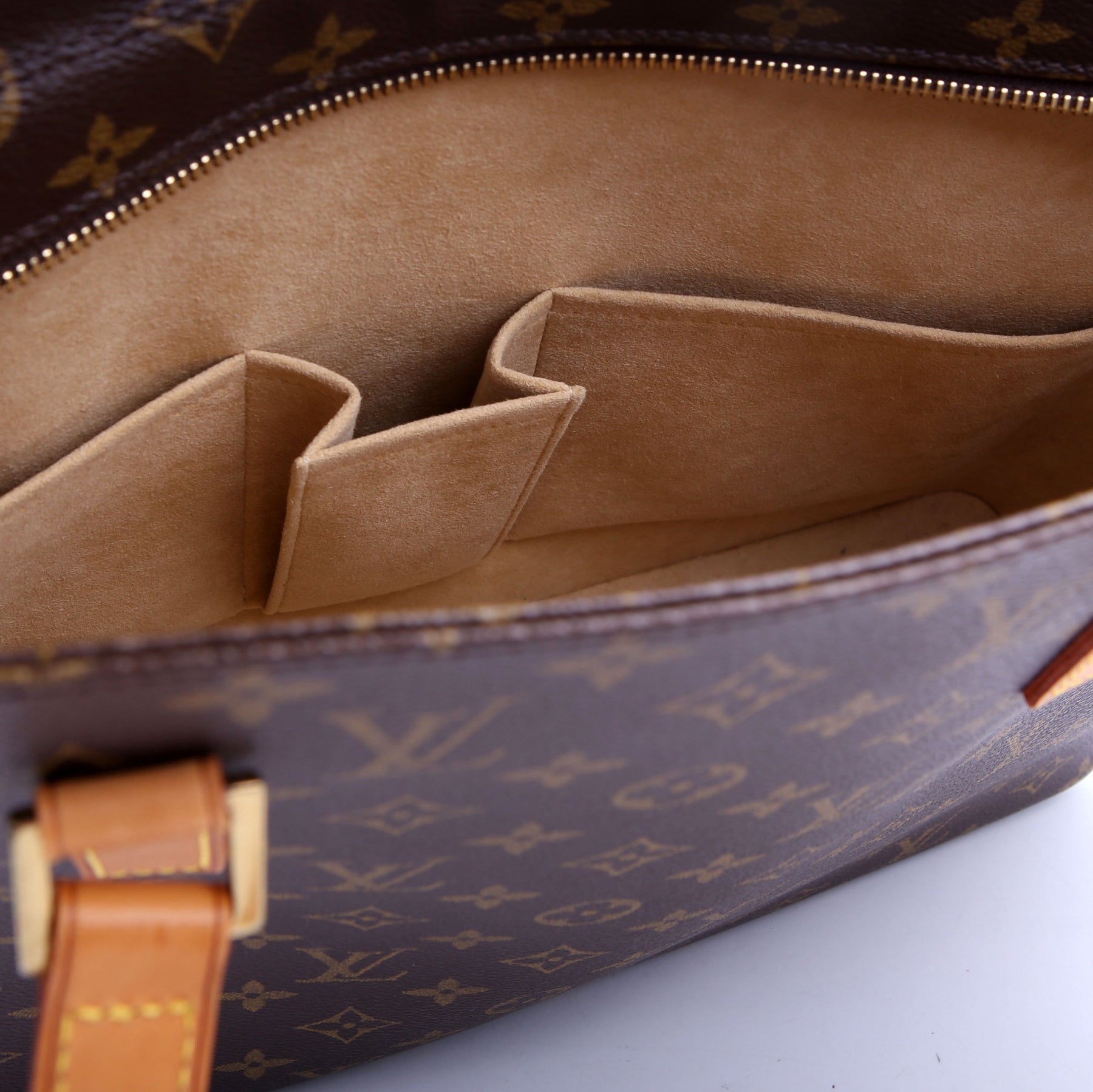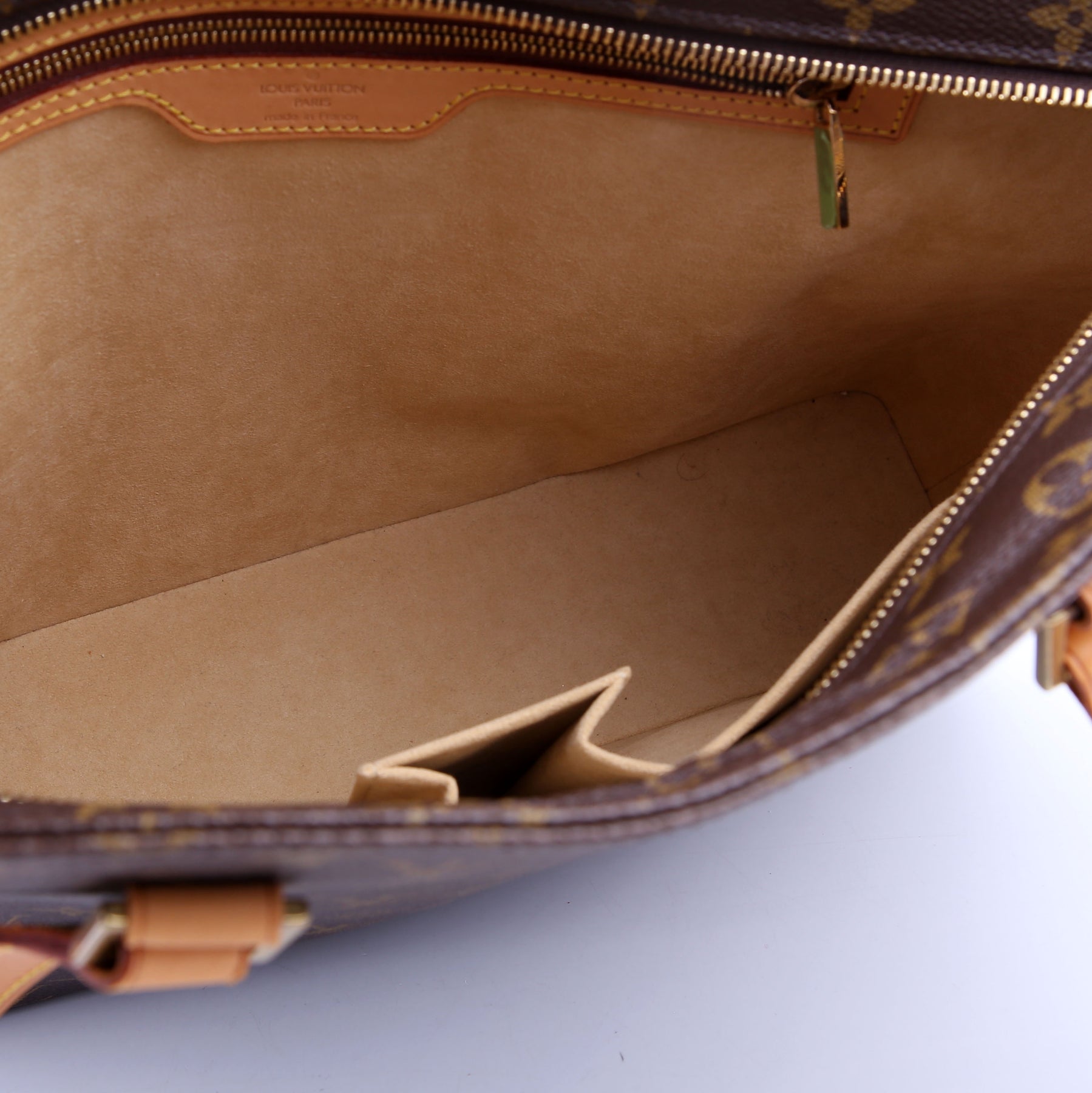 This pre-owned Louis Vuitton Luco is guaranteed 100% authentic. The exterior is in the classic Louis Vuitton Monogram coated canvas.
