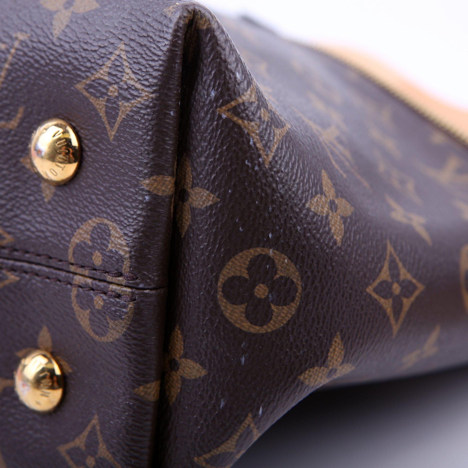 Handle: The leather handle has minor water spots.