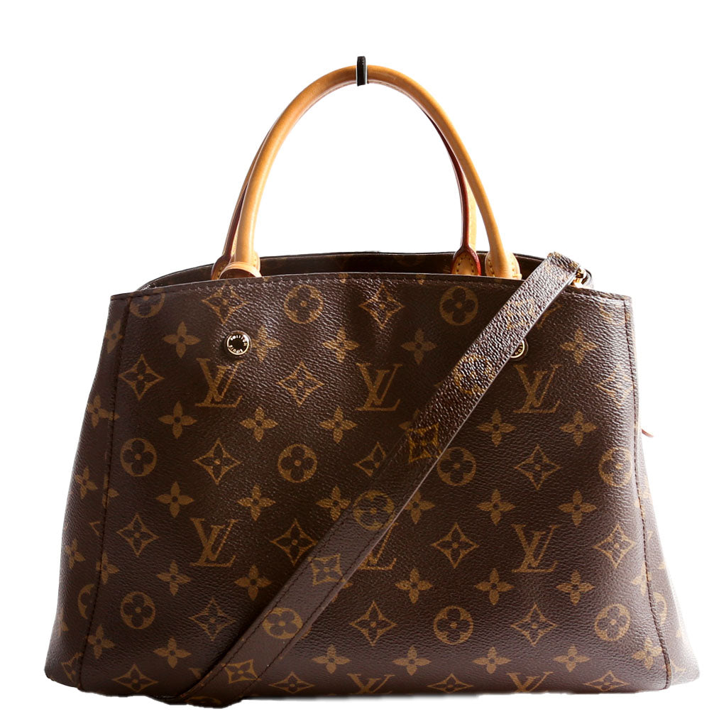 This pre-owned Louis Vuitton Montaigne MM is guaranteed 100% authentic. The exterior is in the classic Louis Vuitton Monogram coated canvas.