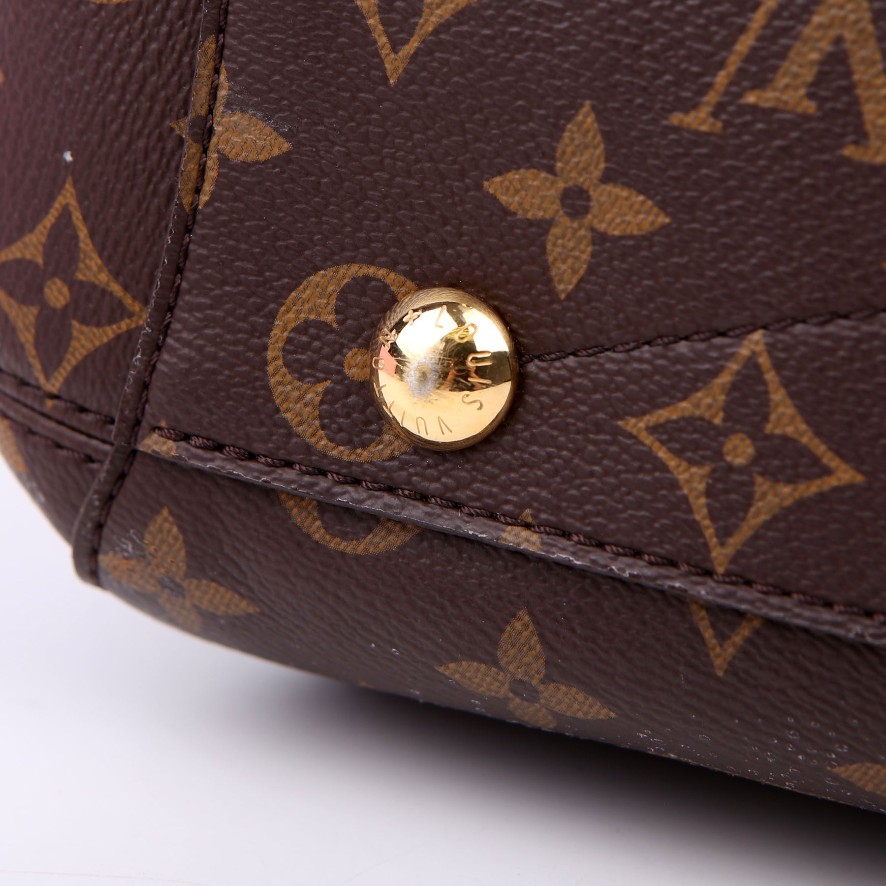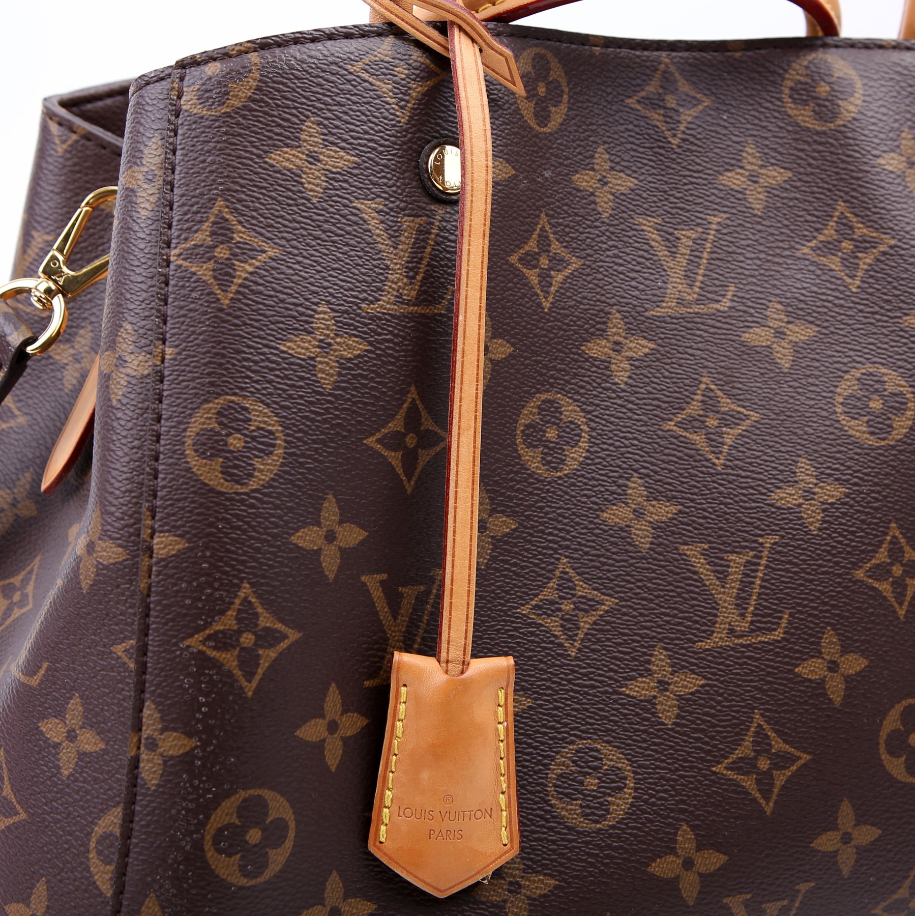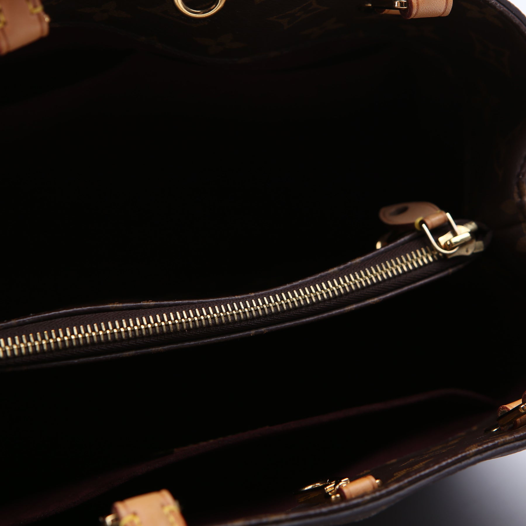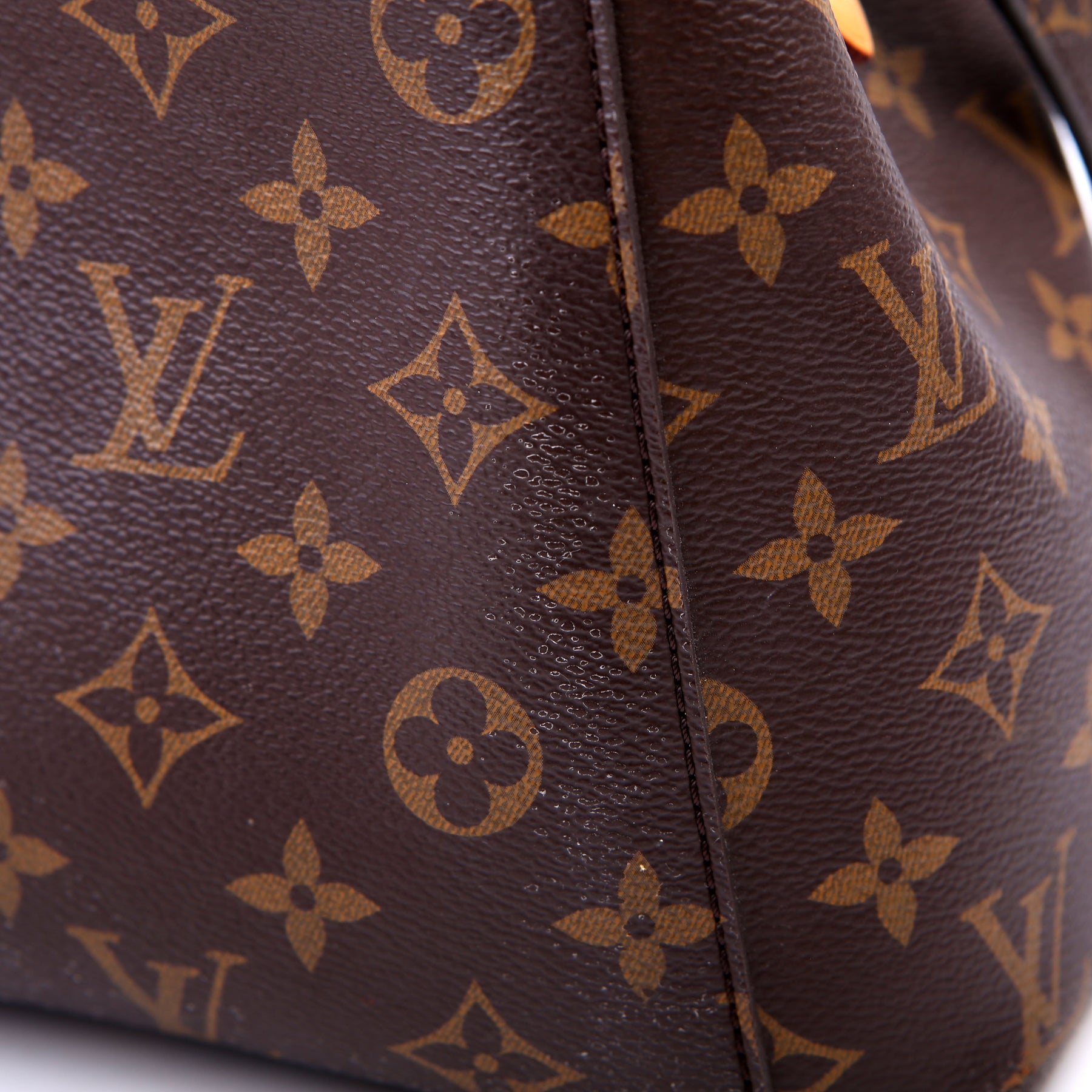 This pre-owned Louis Vuitton Montaigne MM is guaranteed 100% authentic. The exterior is in the classic Louis Vuitton Monogram coated canvas.