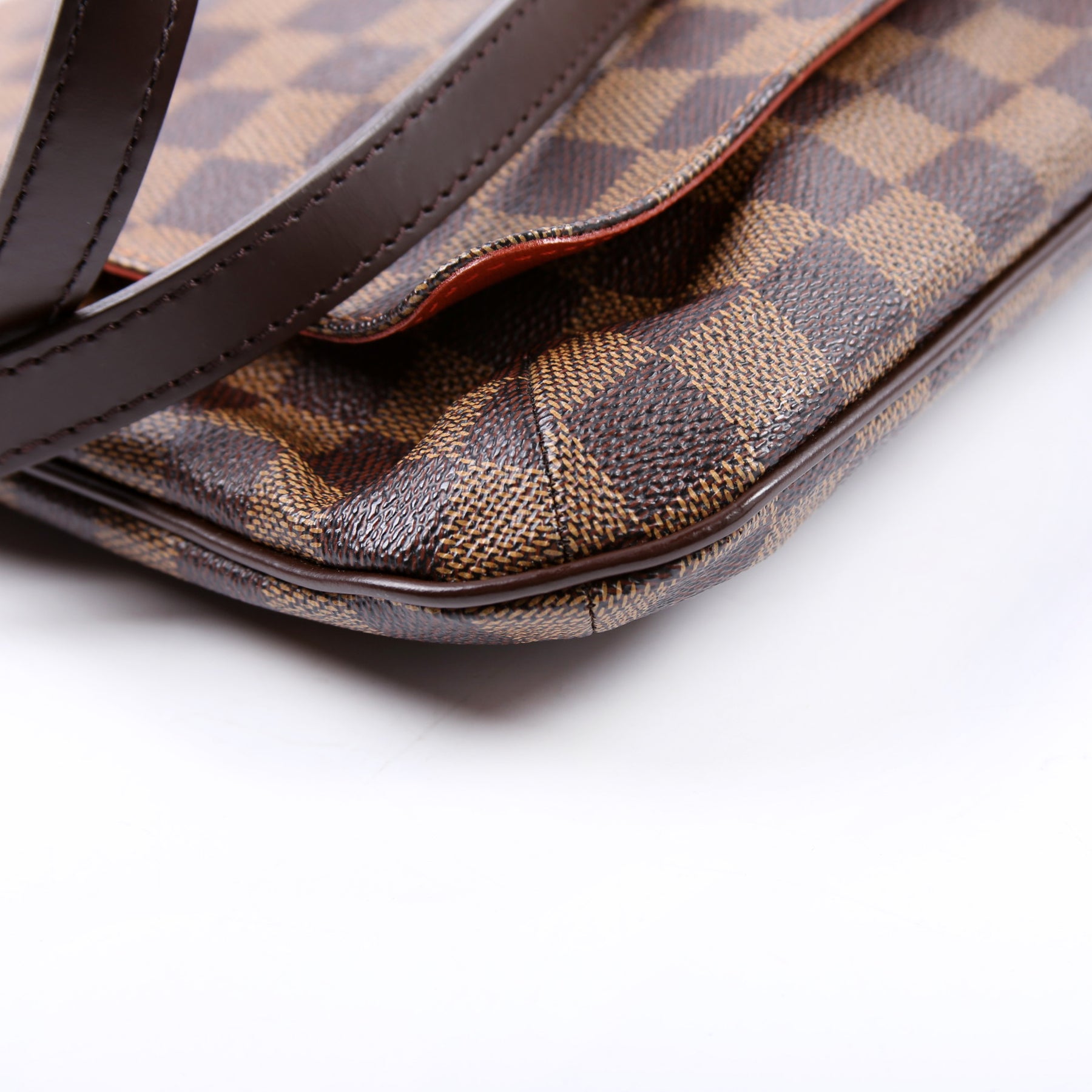This pre-owned Louis Vuitton Musette Salsa Long is guaranteed 100% authentic. The exterior is in the classic Louis Vuitton Damier Ebene coated canvas.
