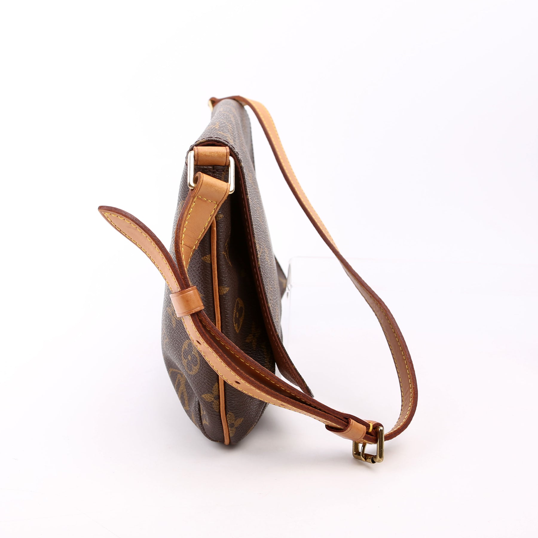 This pre-owned Louis Vuitton Musette Tango Short is guaranteed 100% authentic. The exterior is in the classic Louis Vuitton Monogram coated canvas.