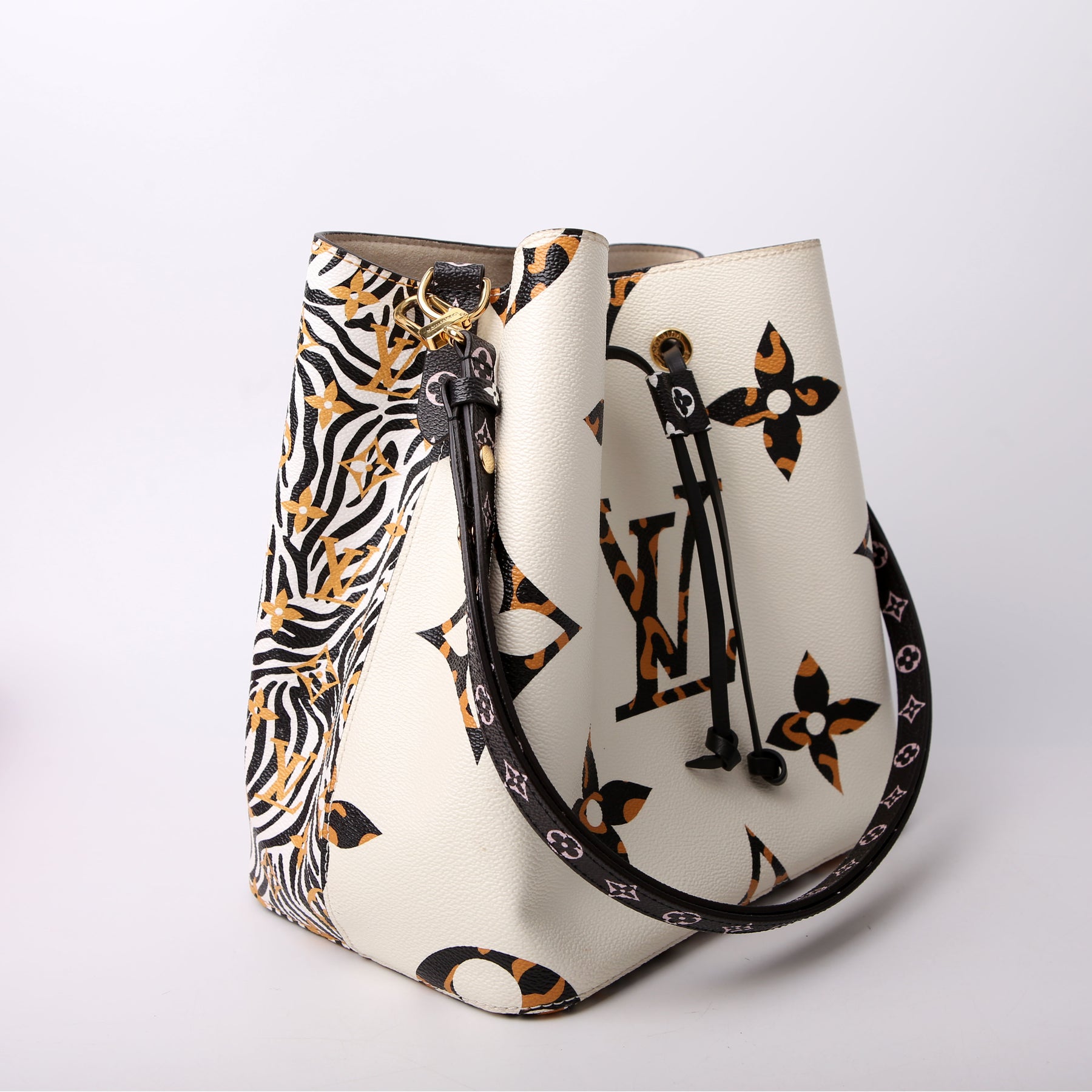 This pre-owned Louis Vuitton Neonoe is guaranteed 100% authentic. The exterior is in the classic Louis Vuitton Jungle coated canvas.