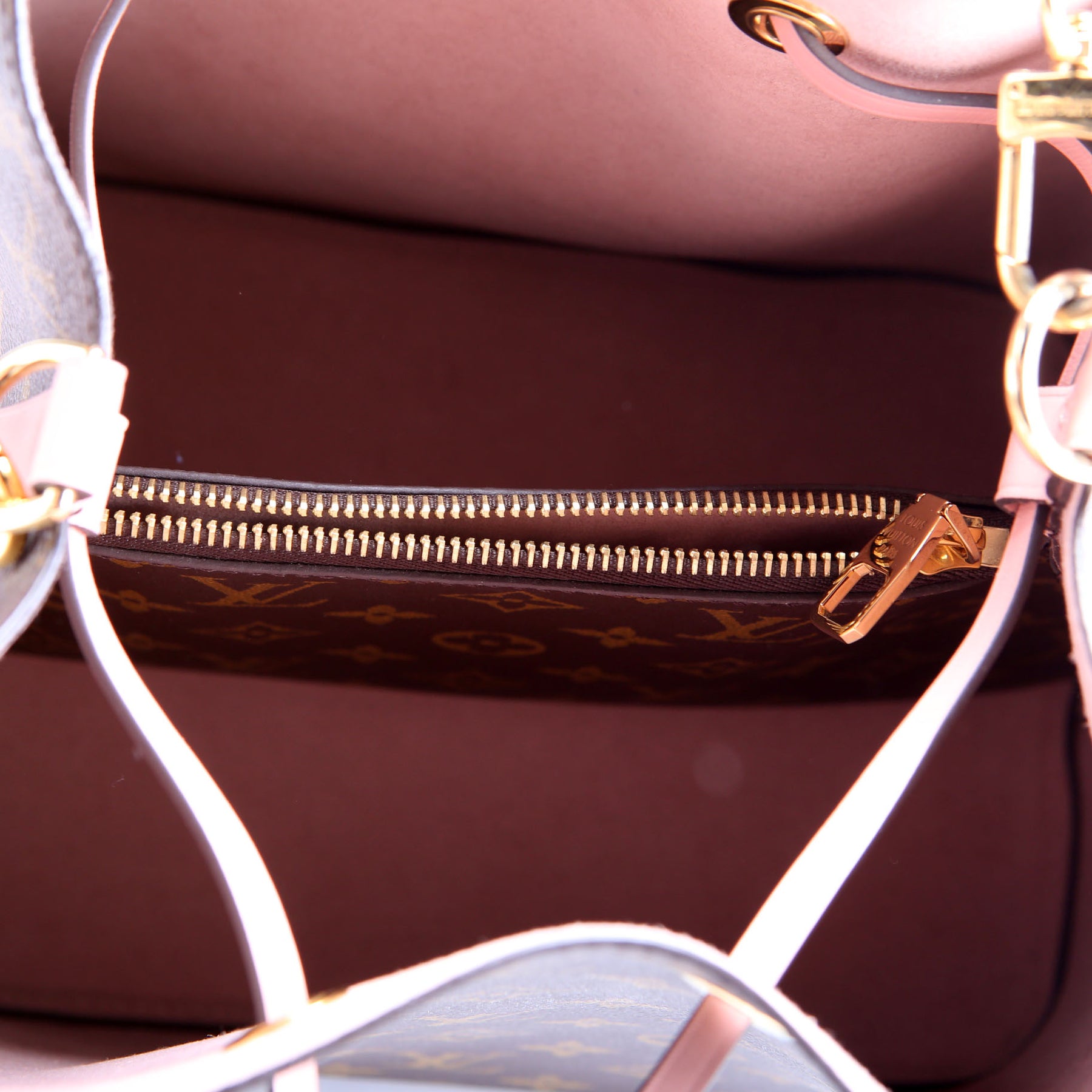 This pre-owned Louis Vuitton Neonoe is guaranteed 100% authentic. The exterior is in the classic Louis Vuitton Monogram coated canvas.