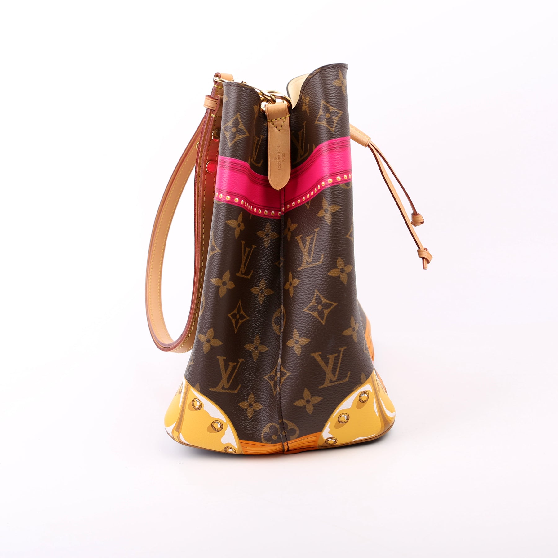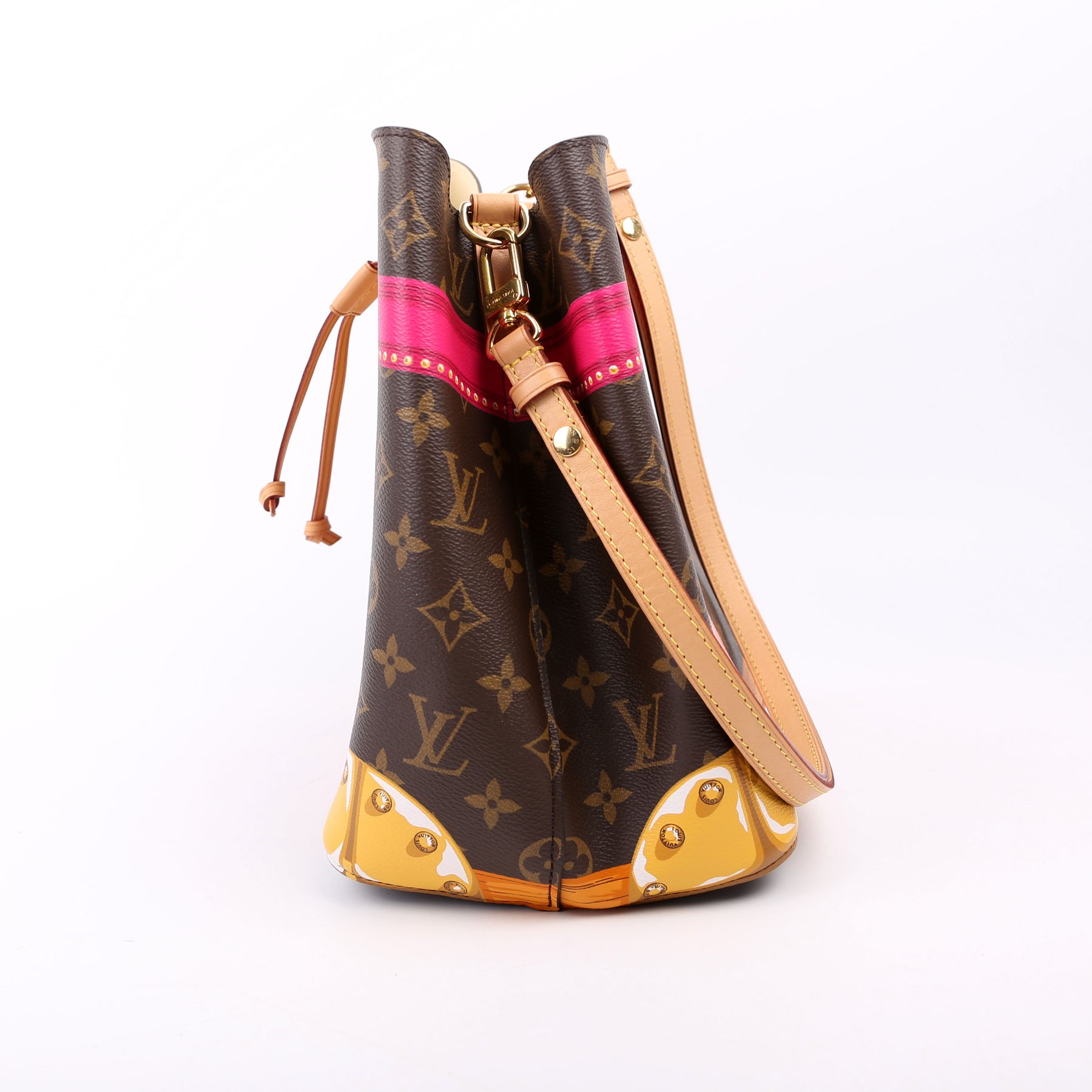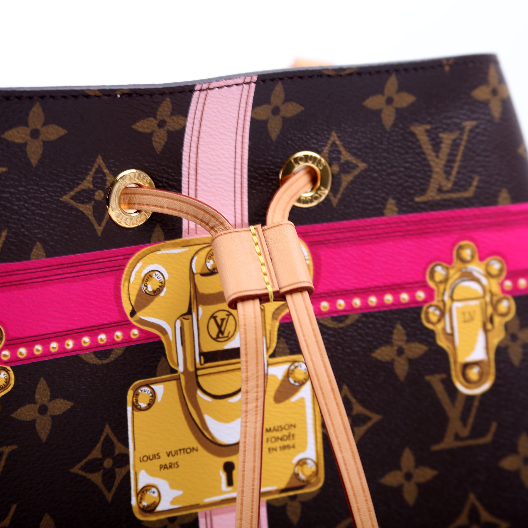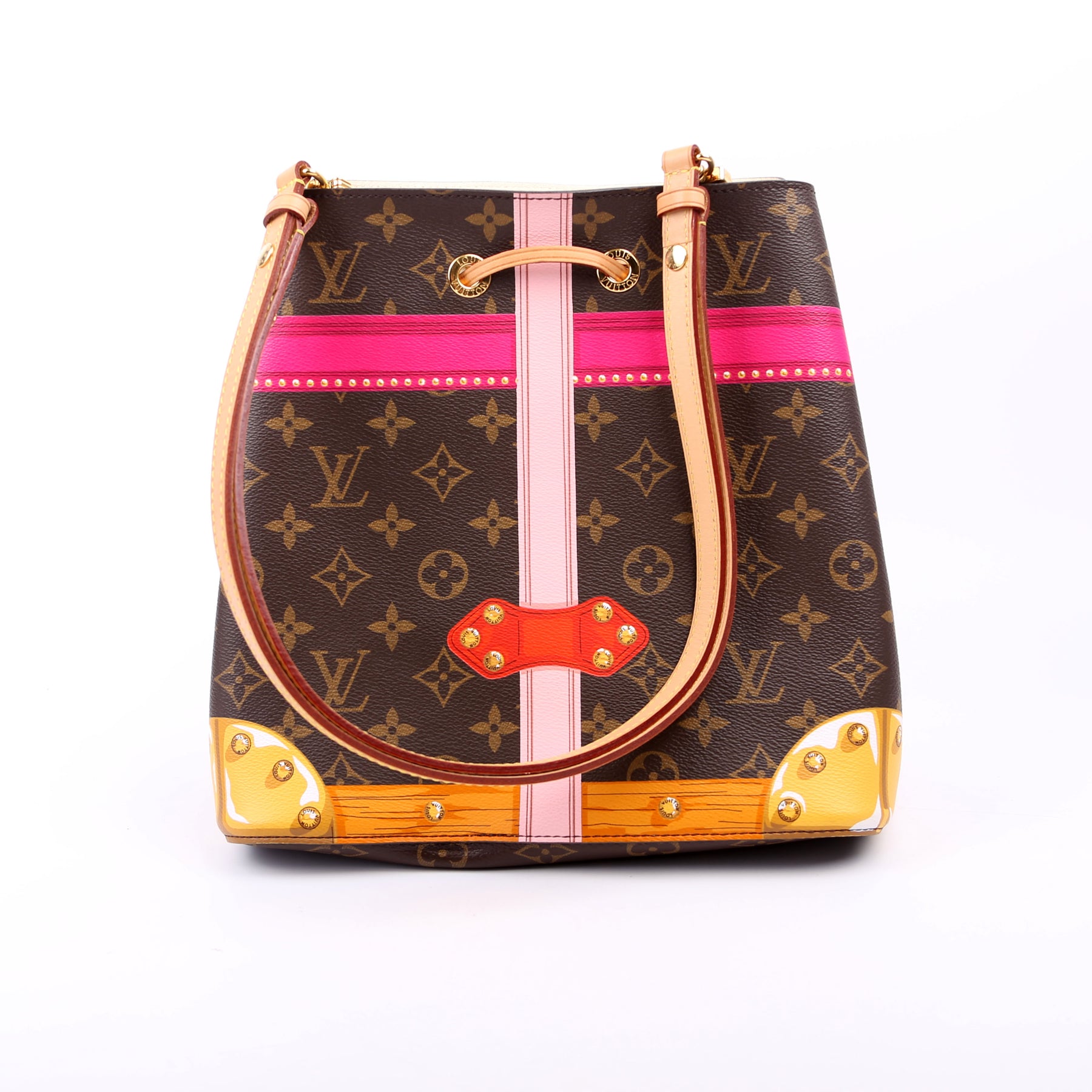 This pre-owned Louis Vuitton Neonoe is guaranteed 100% authentic. The exterior is in the classic Louis Vuitton Monogram Summer Trunks coated canvas.