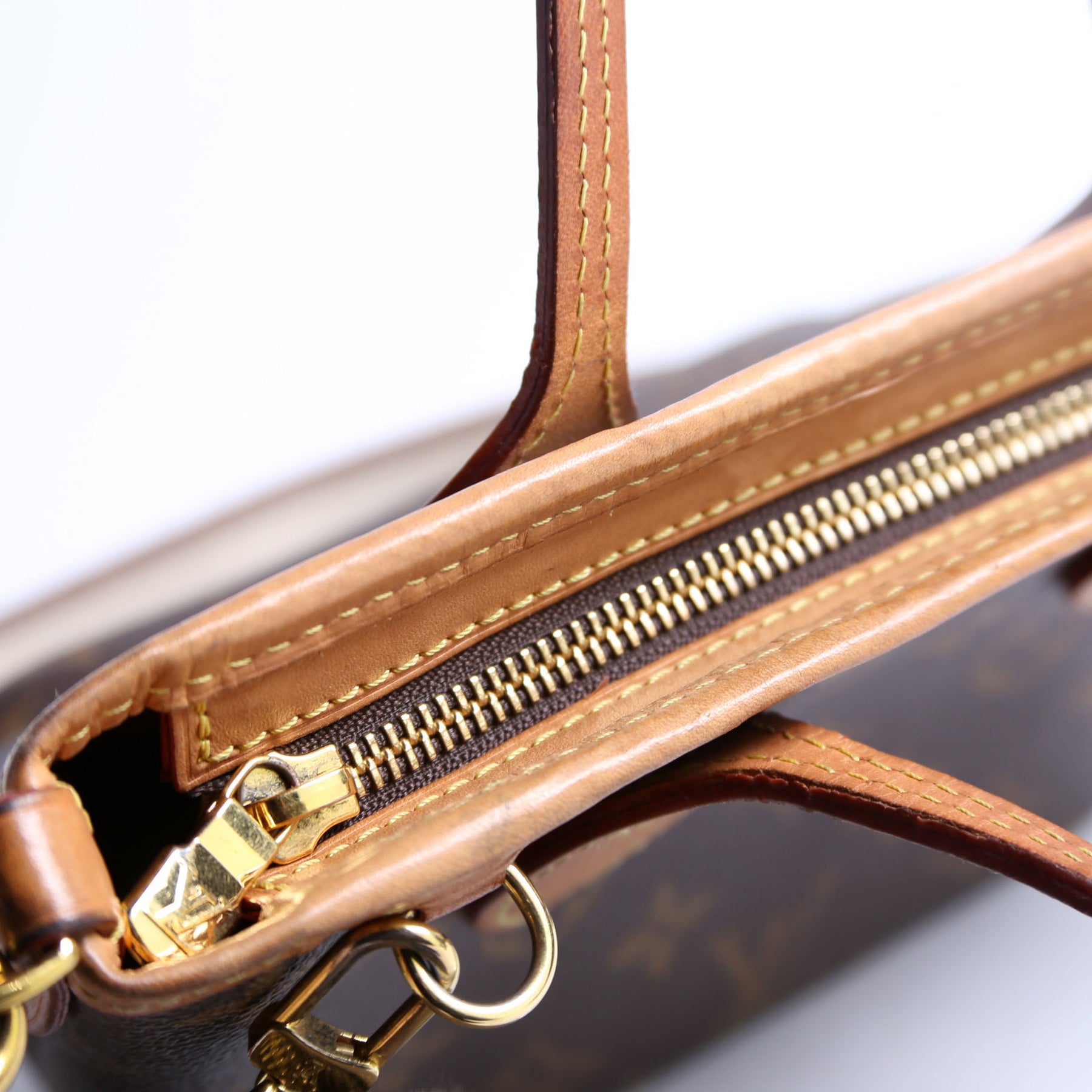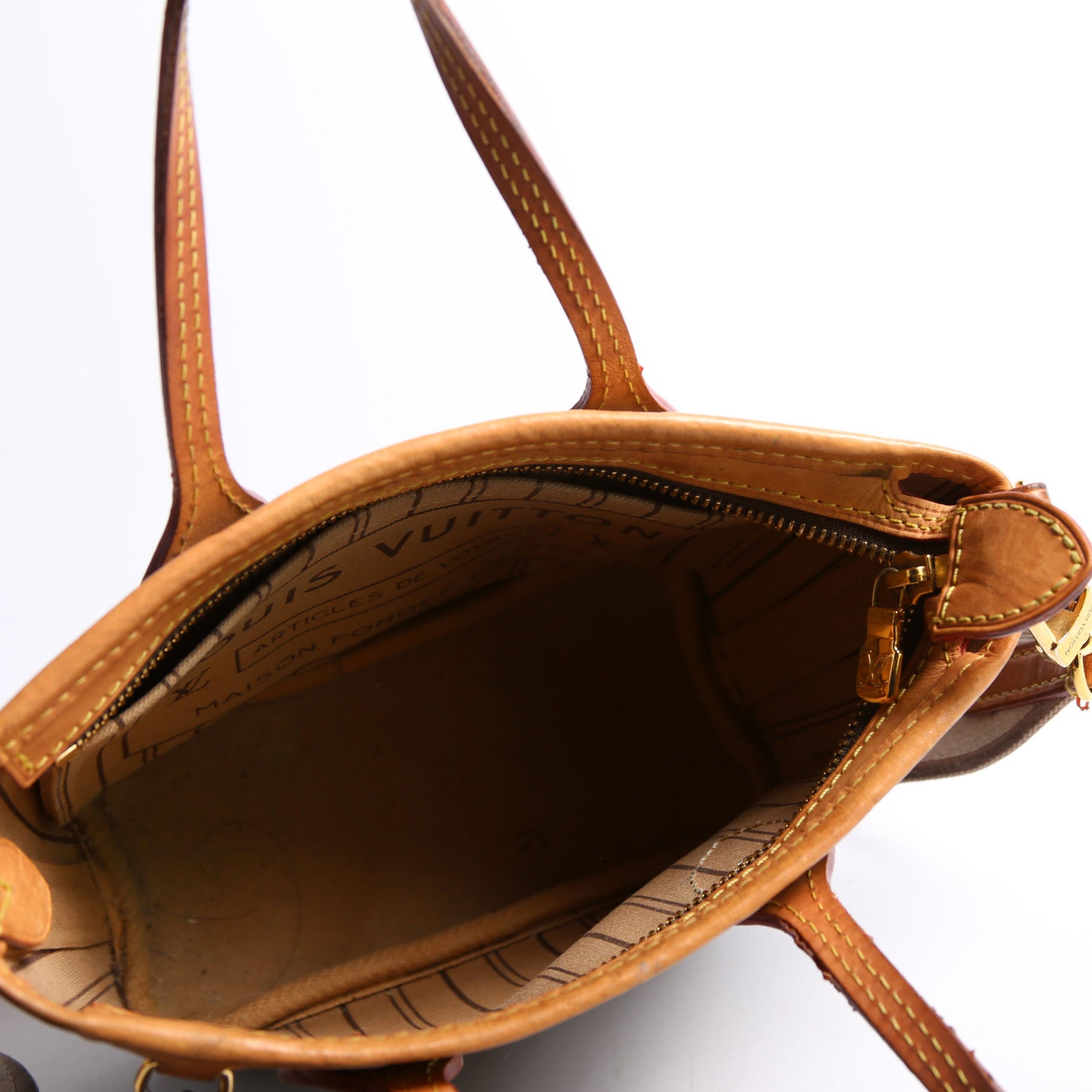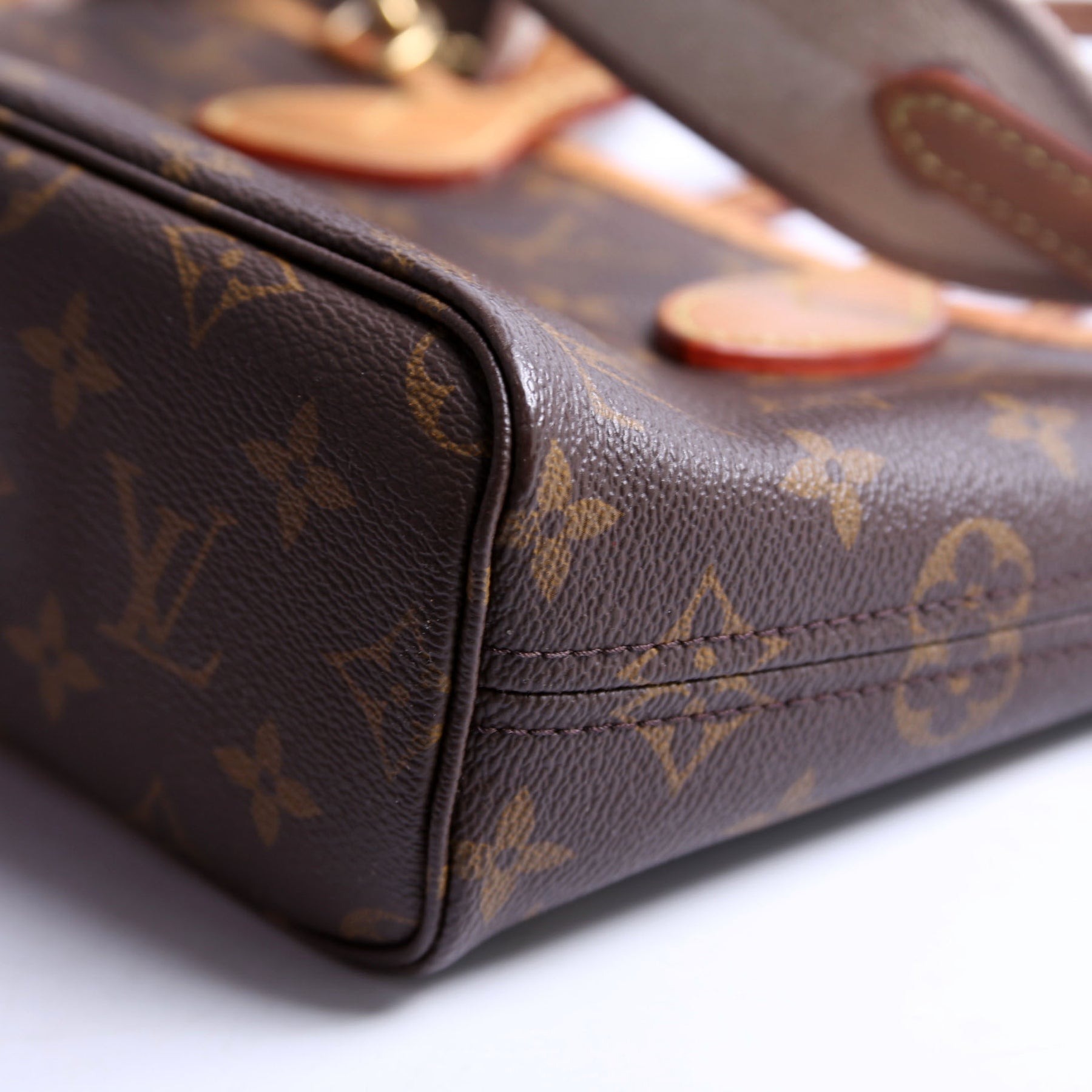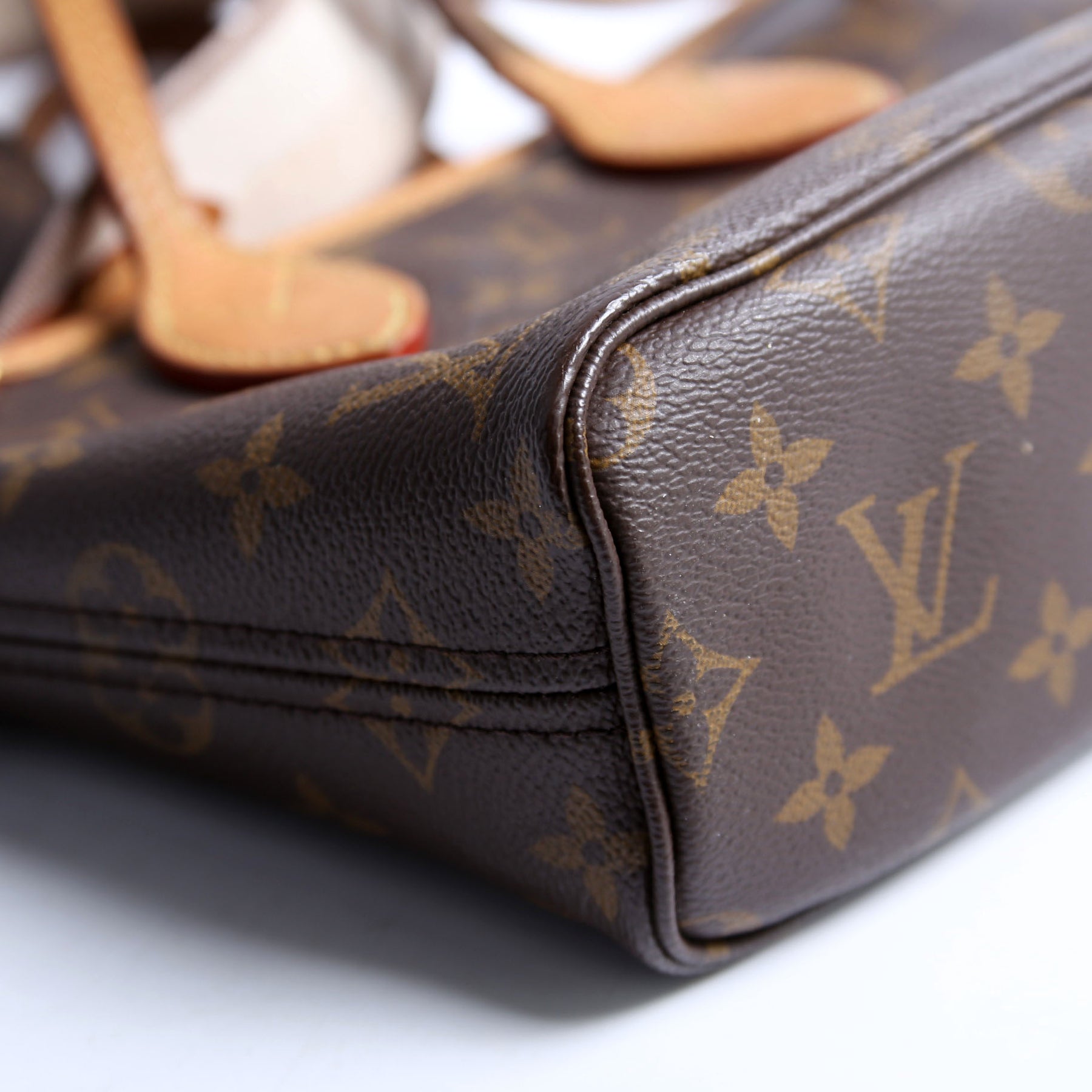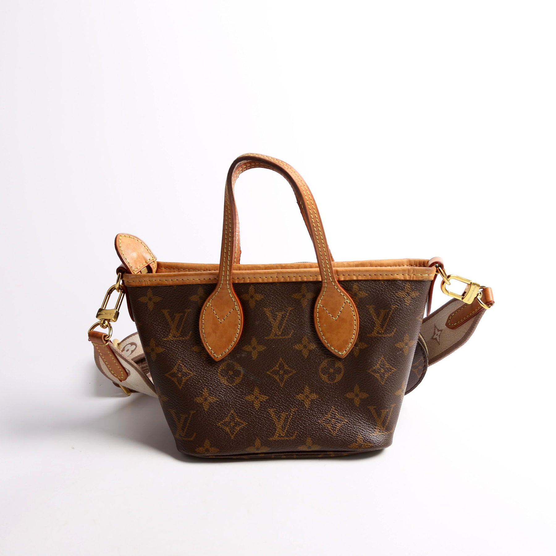 This pre-owned Louis Vuitton Neverfull BB is guaranteed 100% authentic. The exterior is in the classic Monogram coated canvas.