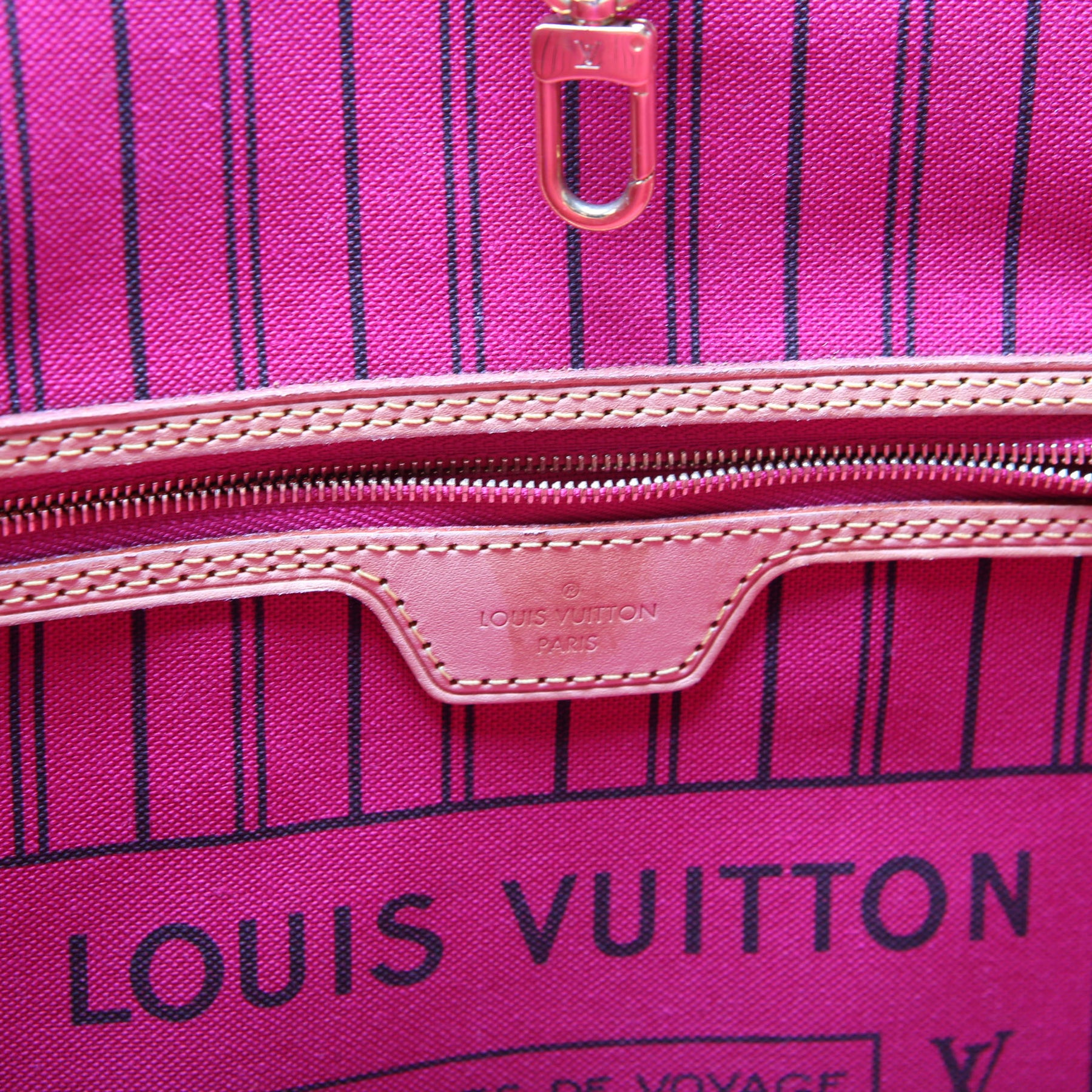 This pre-owned Louis Vuitton Neverfull MM is guaranteed 100% authentic. The exterior is in the classic Louis Vuitton Monogram coated canvas.