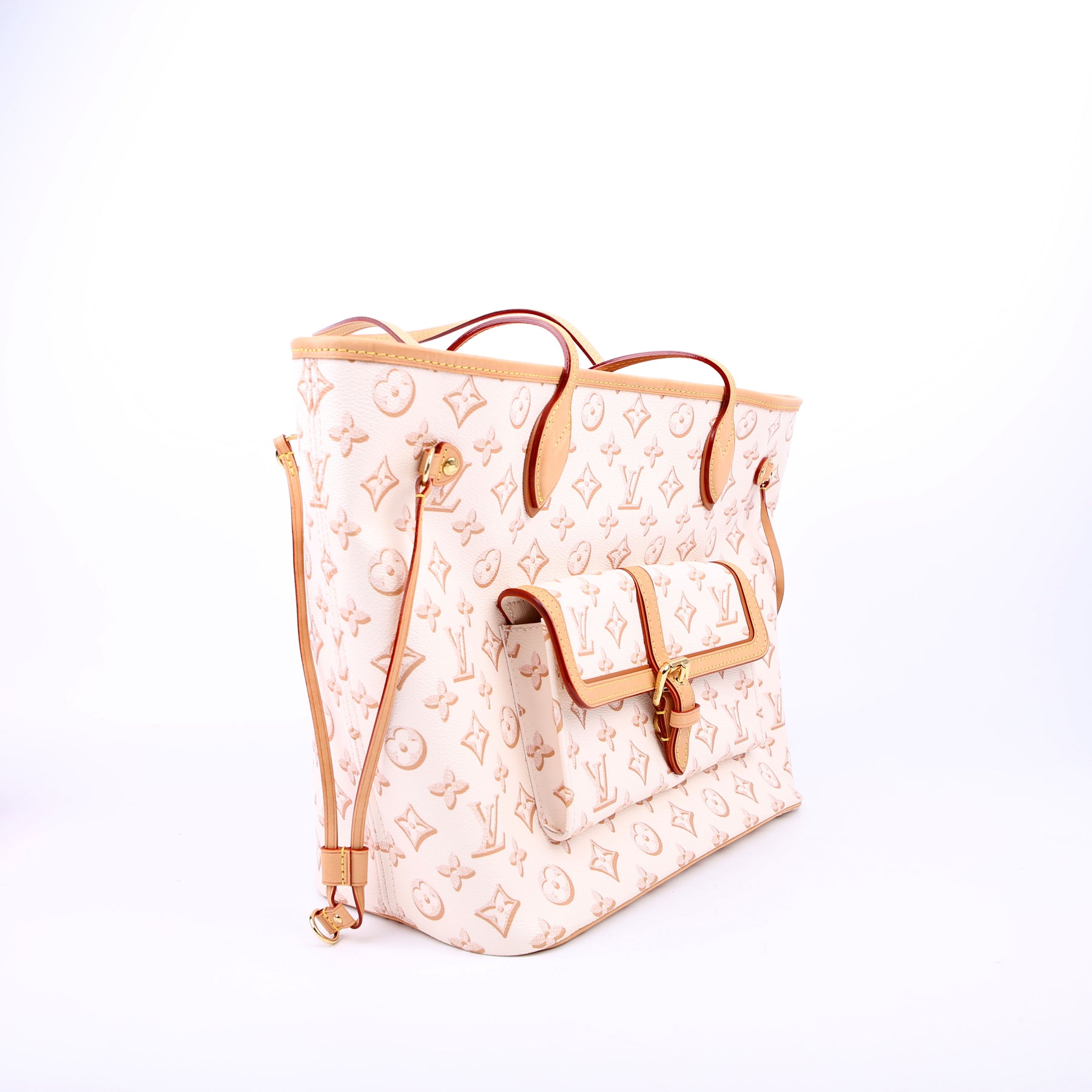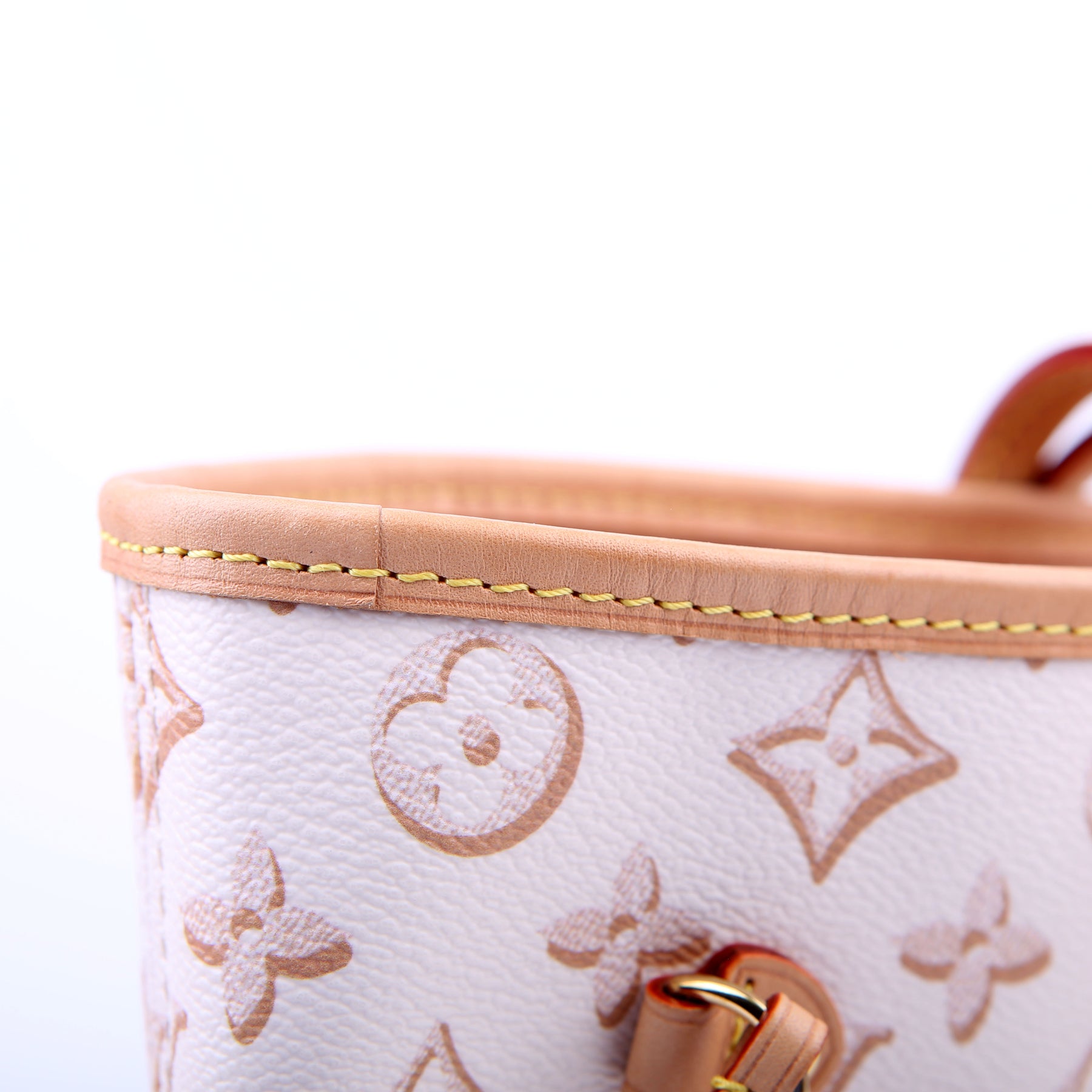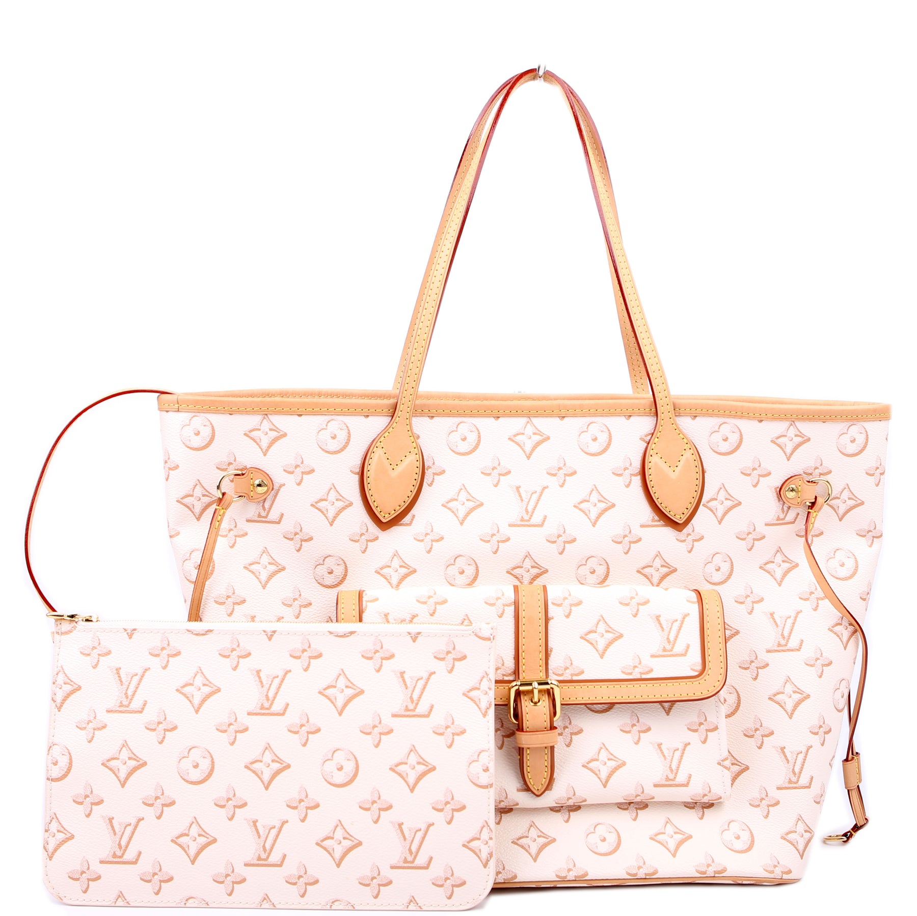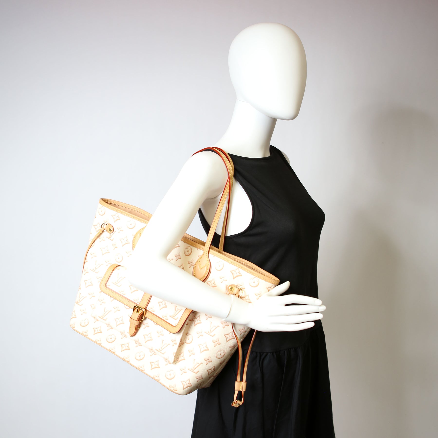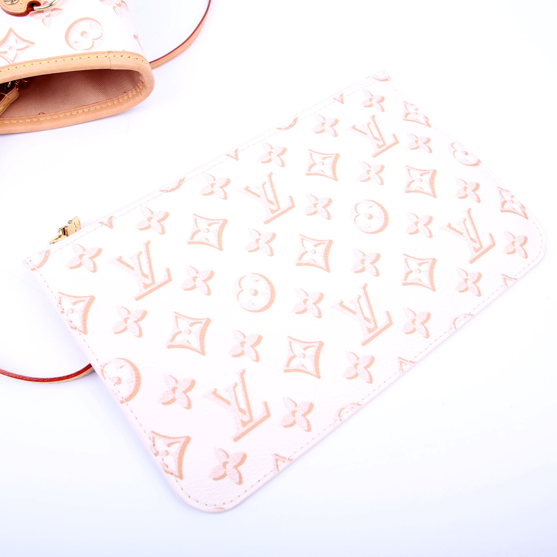 This pre-owned Louis Vuitton Neverfull with Wallet MM Fall For You is guaranteed 100% authentic.