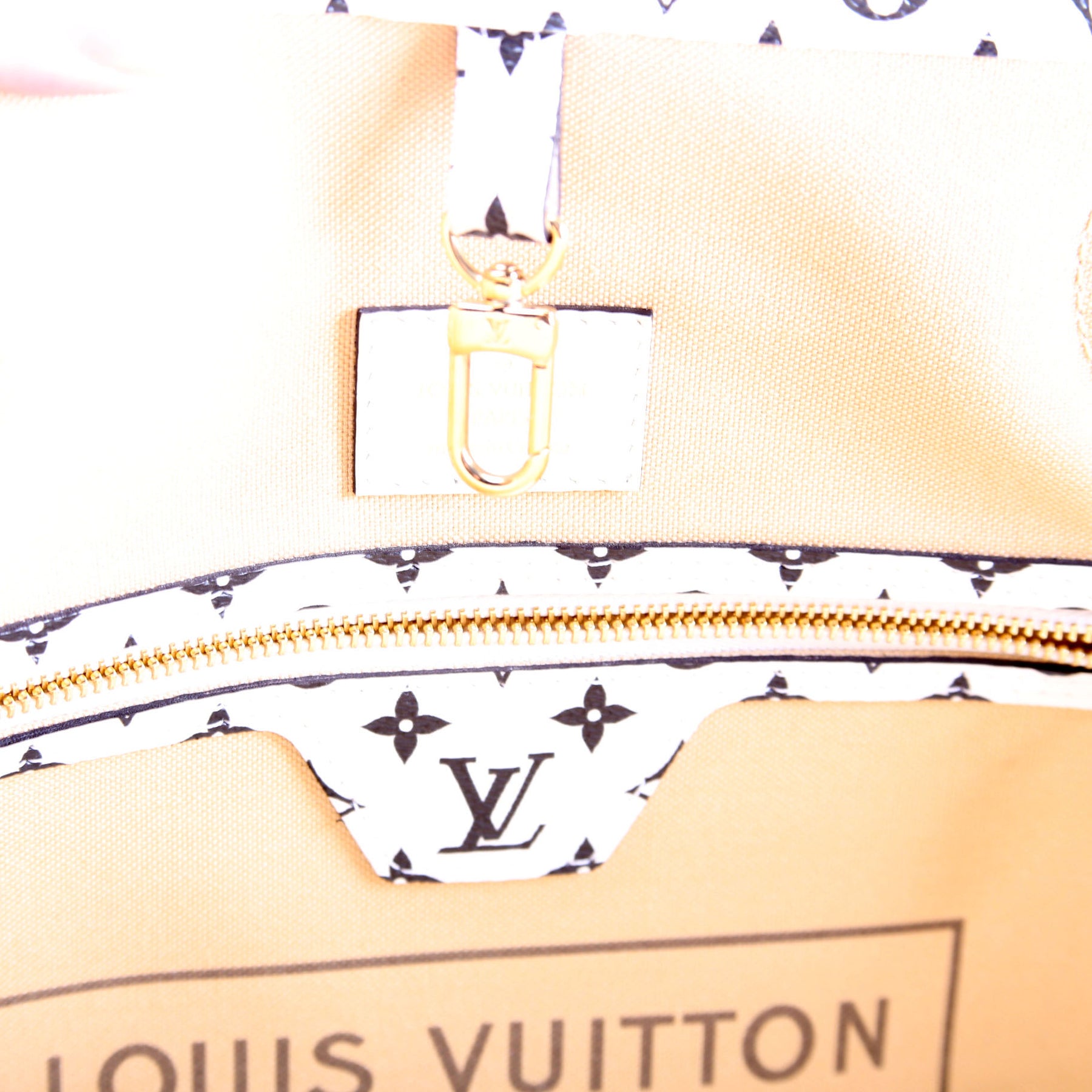 This pre-owned Louis Vuitton Neverfull MM is guaranteed 100% authentic. The exterior is in the classic Louis Vuitton Giant Monogram coated canvas.