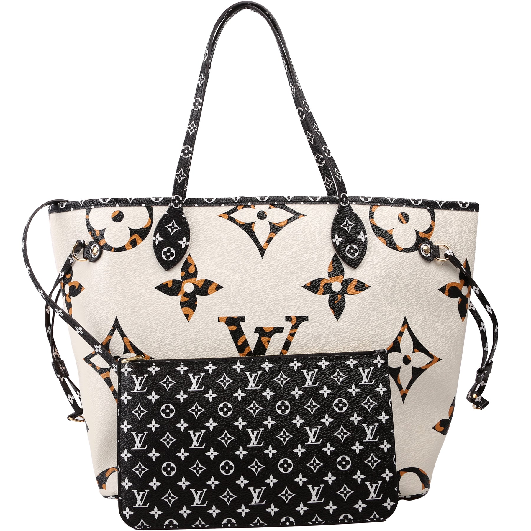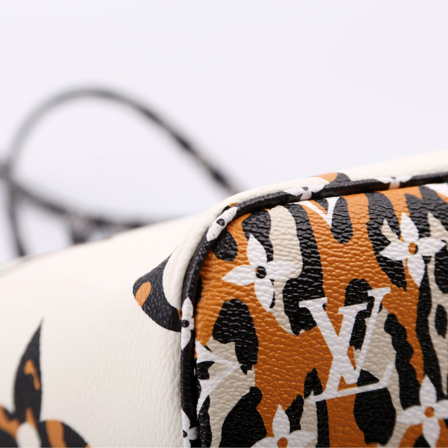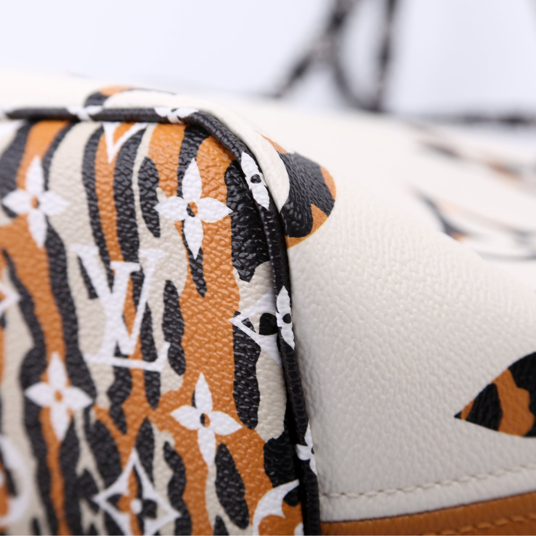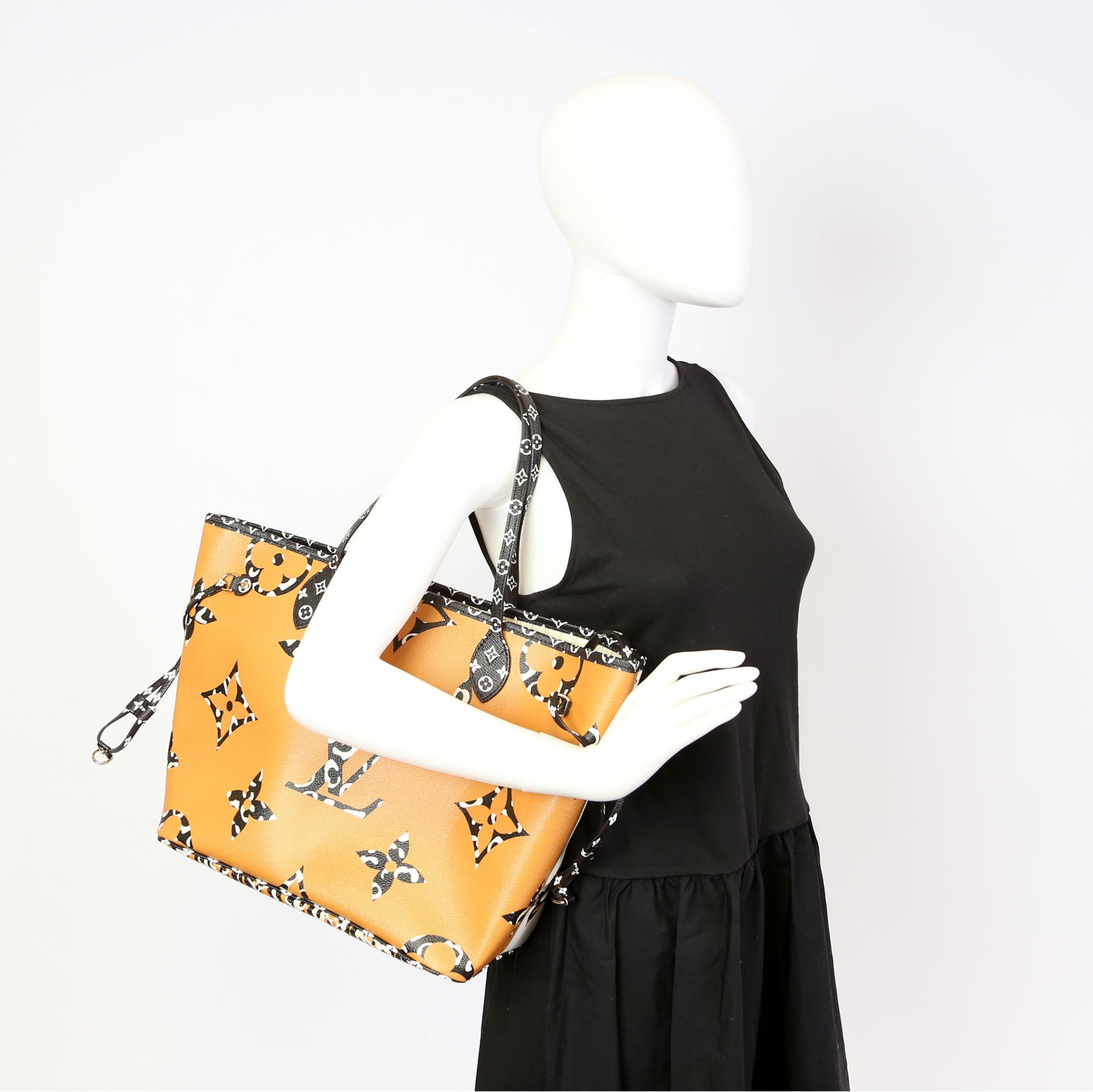 This pre-owned Louis Vuitton Neverfull With Wallet MM is guaranteed 100% authentic. The exterior is in the classic Louis Vuitton Jungle Monogram coated canvas.