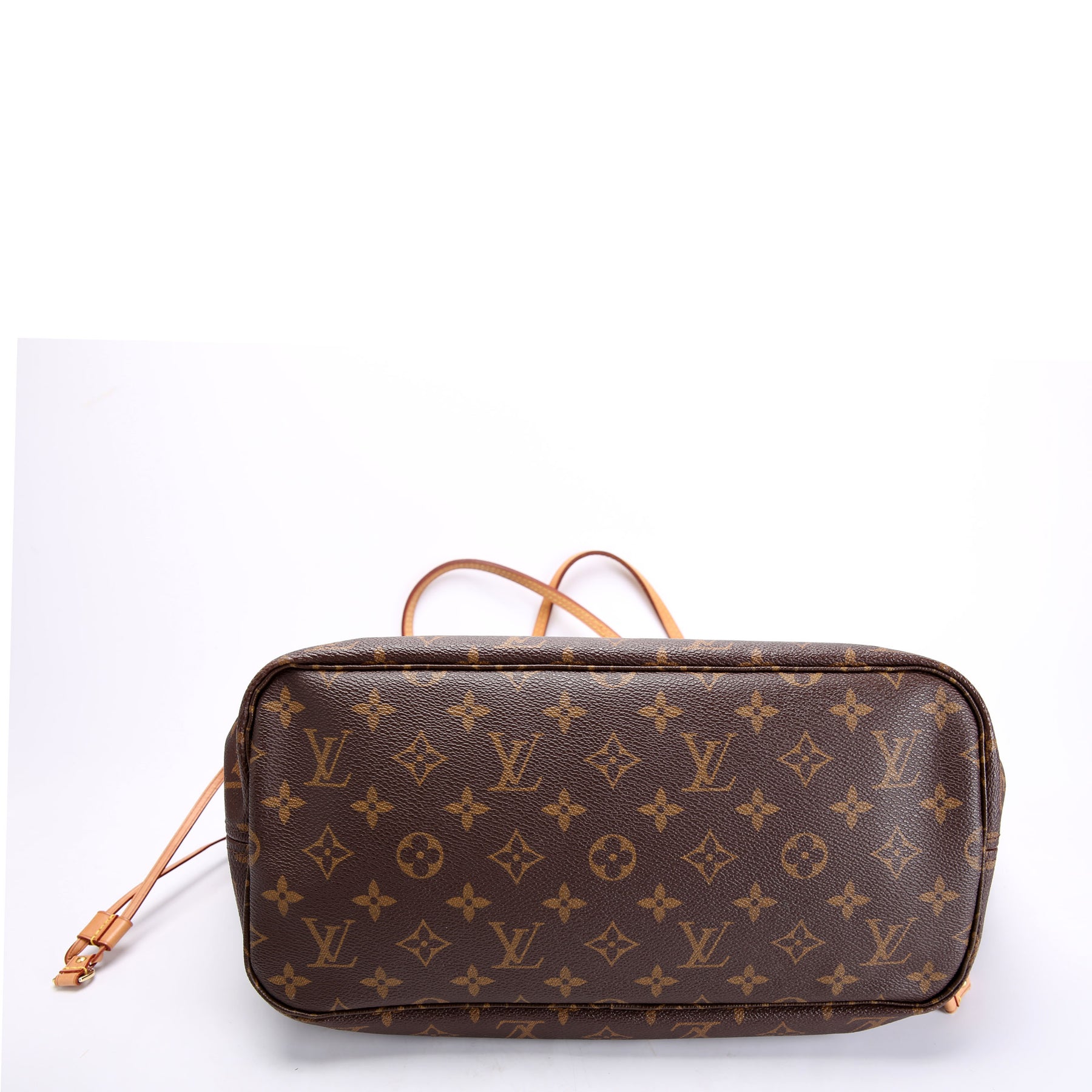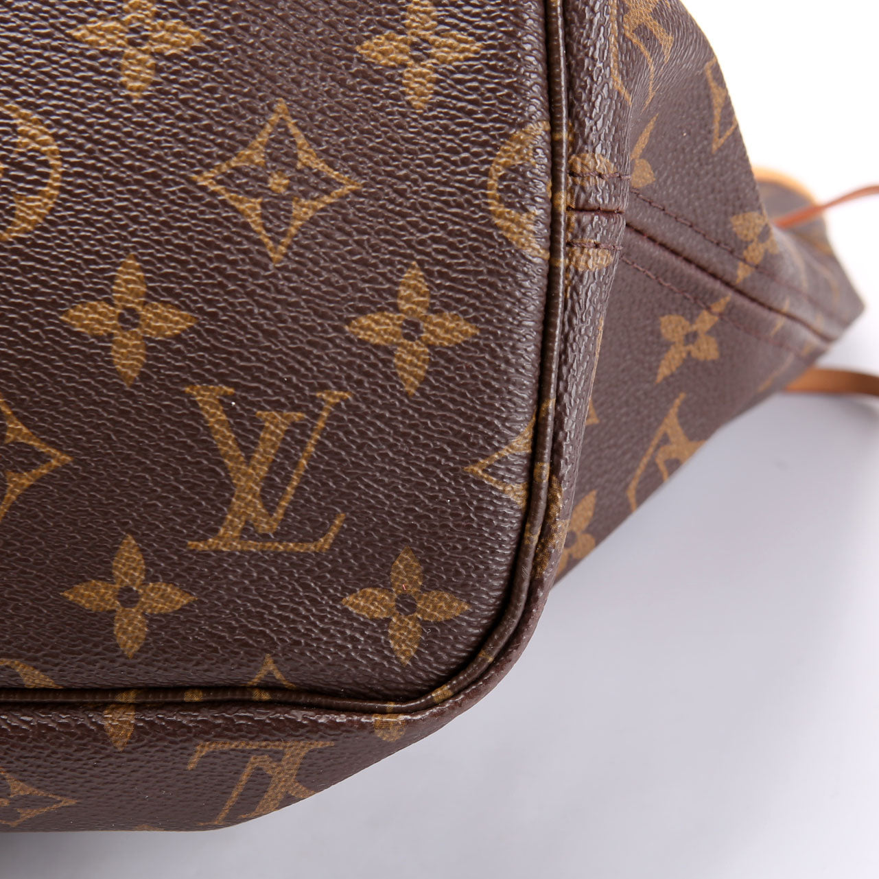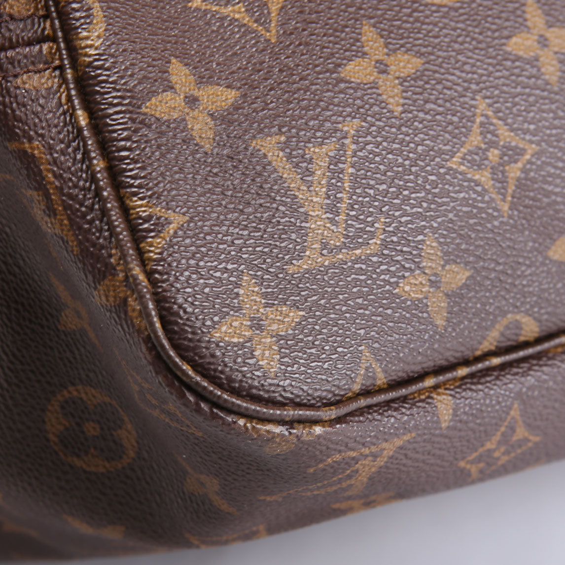 This pre-owned Louis Vuitton Neverfull With Wallet MM guaranteed 100% authentic. The exterior is in the classic Monogram coated canvas.