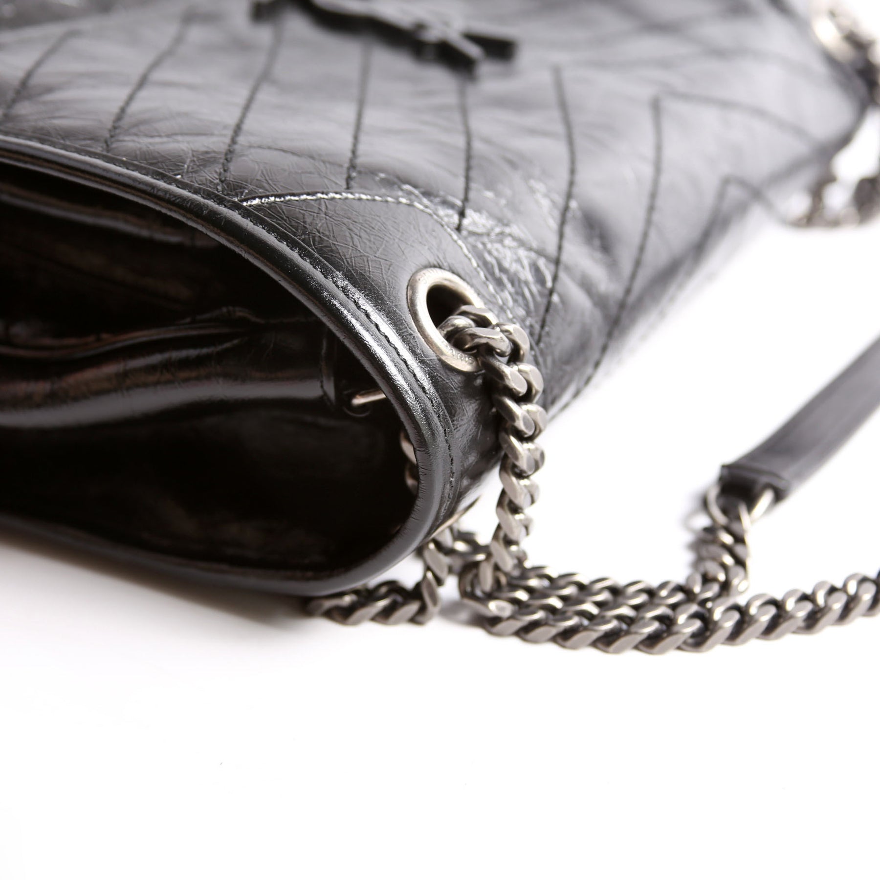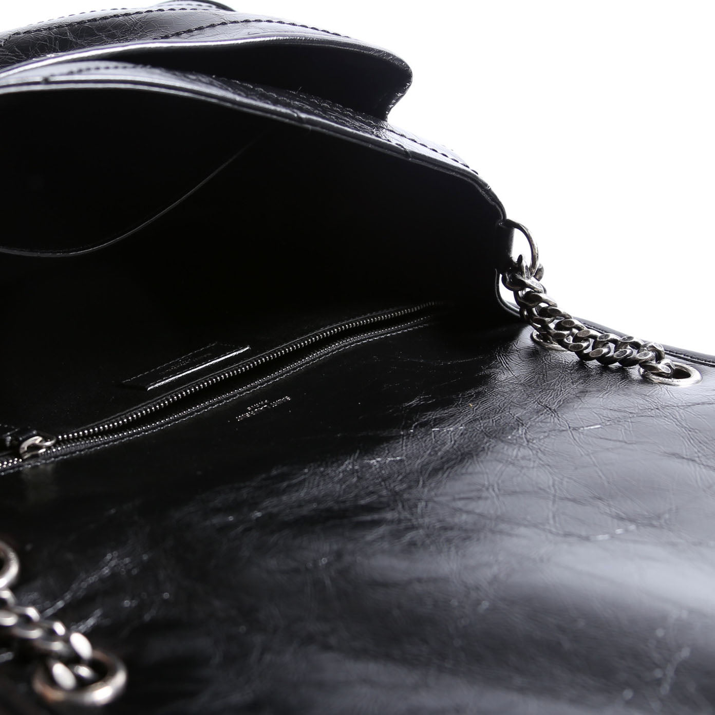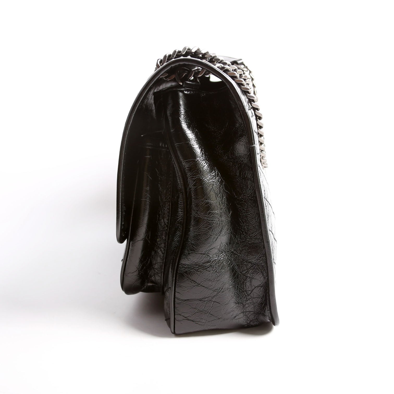 This pre-owned Saint Laurent Niki Large is guaranteed 100% authentic. The exterior is in the classic Saint Laurent Crinkled leather.