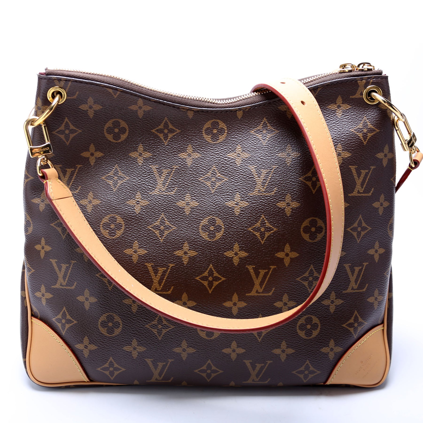 This pre-owned Louis Vuitton Odeon MM NM is guaranteed 100% authentic. The exterior is in the classic Louis Vuitton Monogram coated canvas.
