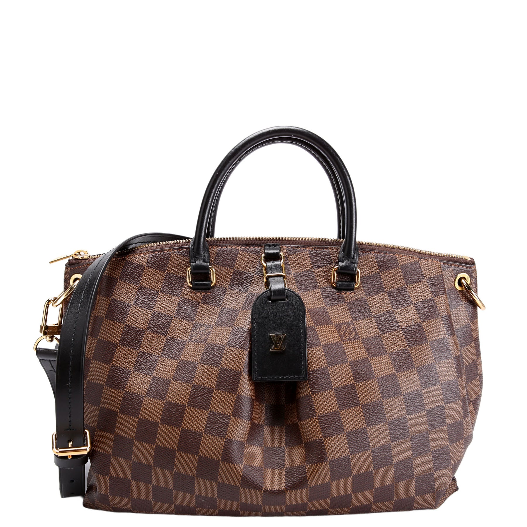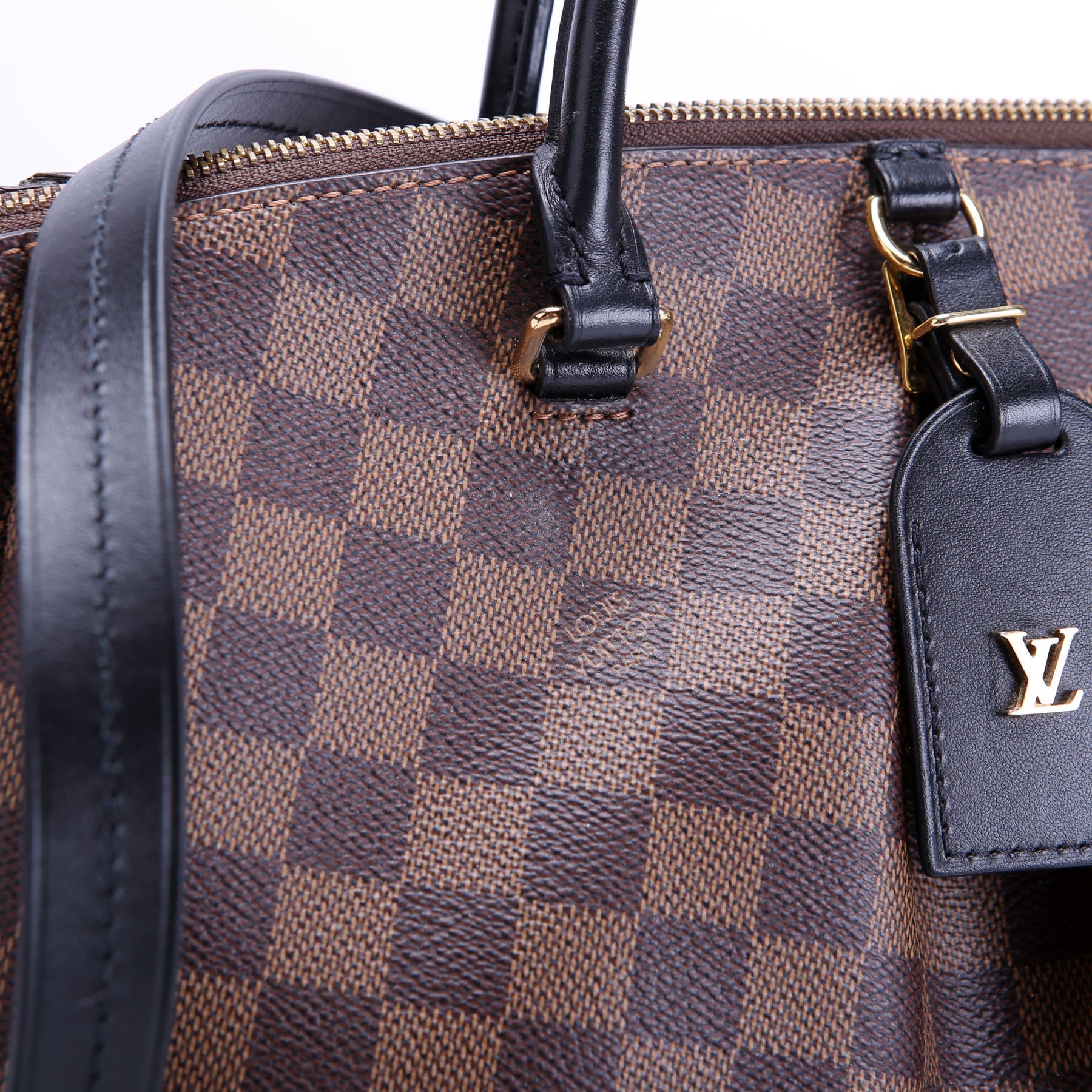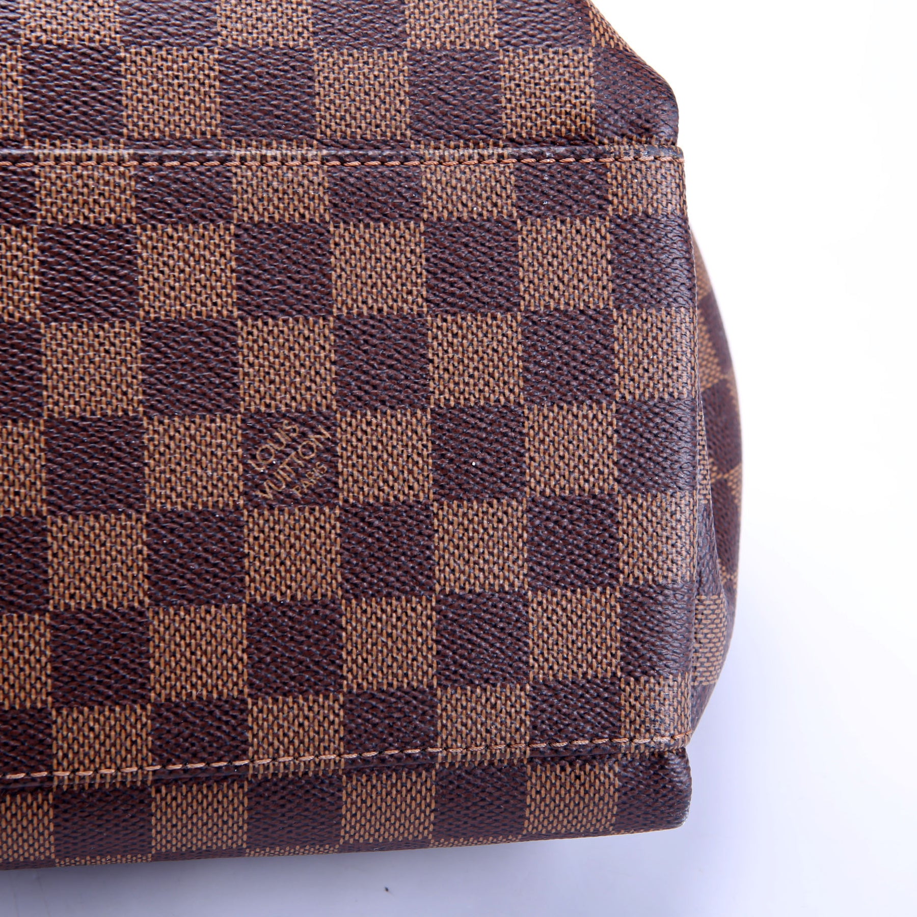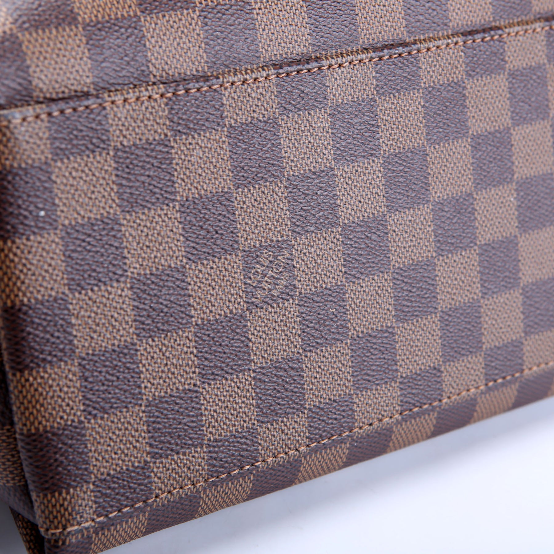 This pre-owned Louis Vuitton Odeon Tote MM is guaranteed 100% authentic. The exterior is in the classic Louis Vuitton Damier Ebene coated canvas.