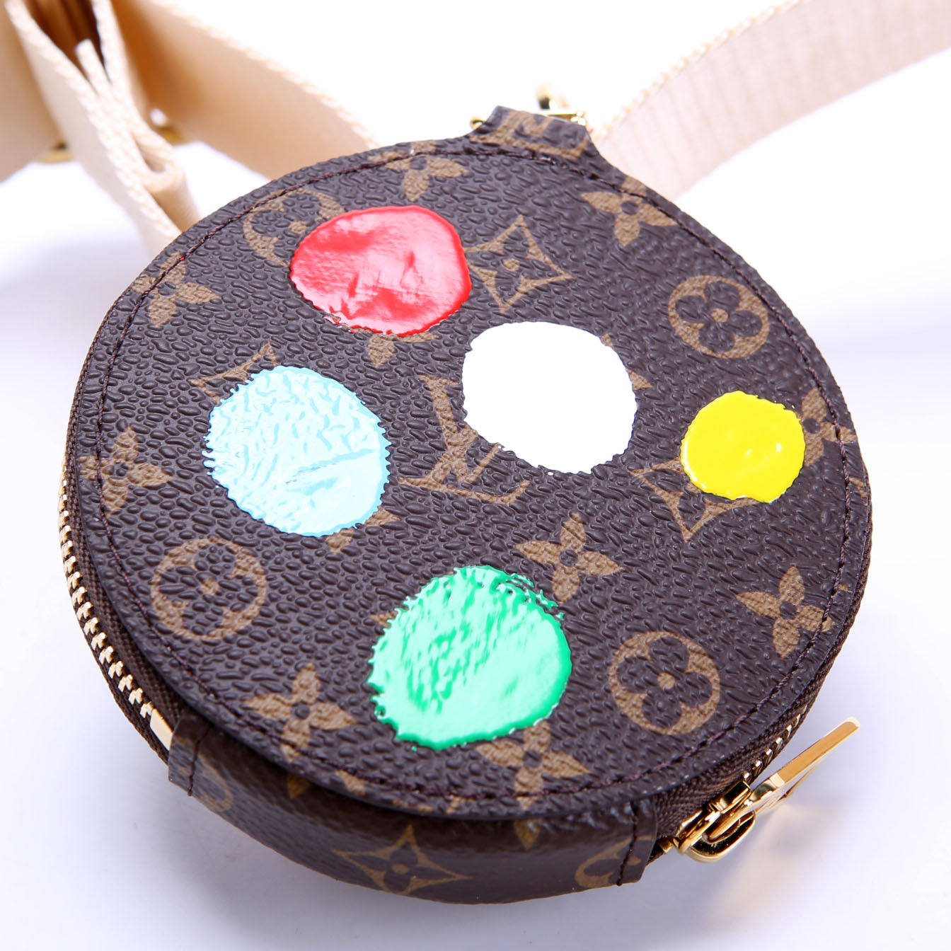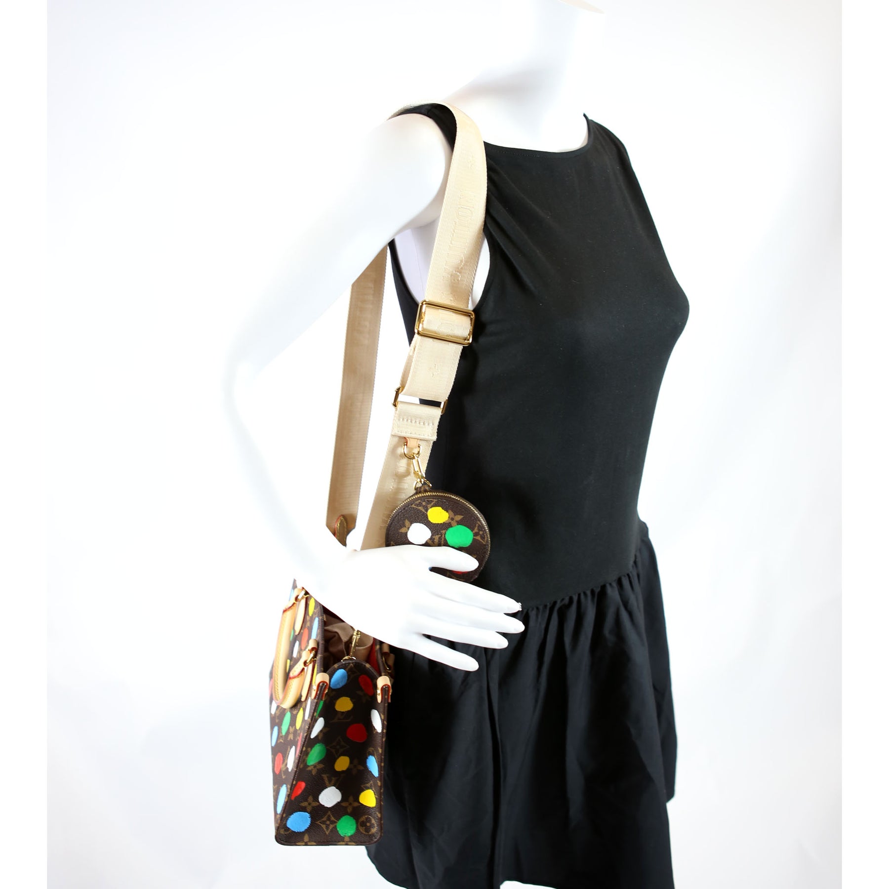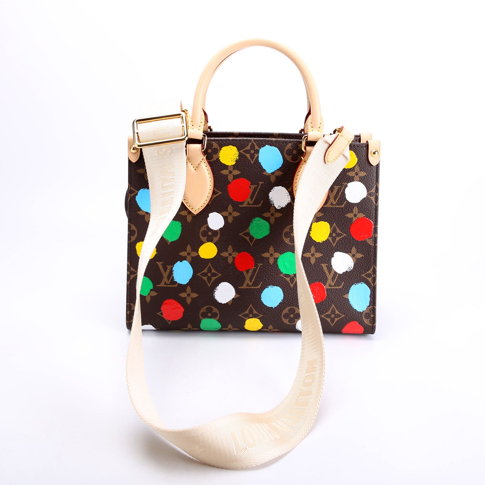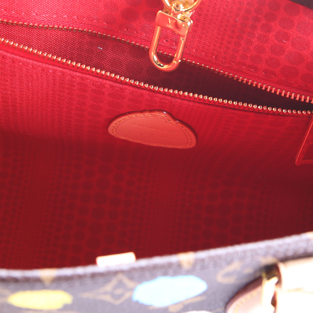 This pre-owned Louis Vuitton ONTHEGO PM Kusama Painted Dots is guaranteed 100% authentic. The exterior is in the classic Louis Vuitton Monogram coated canvas.