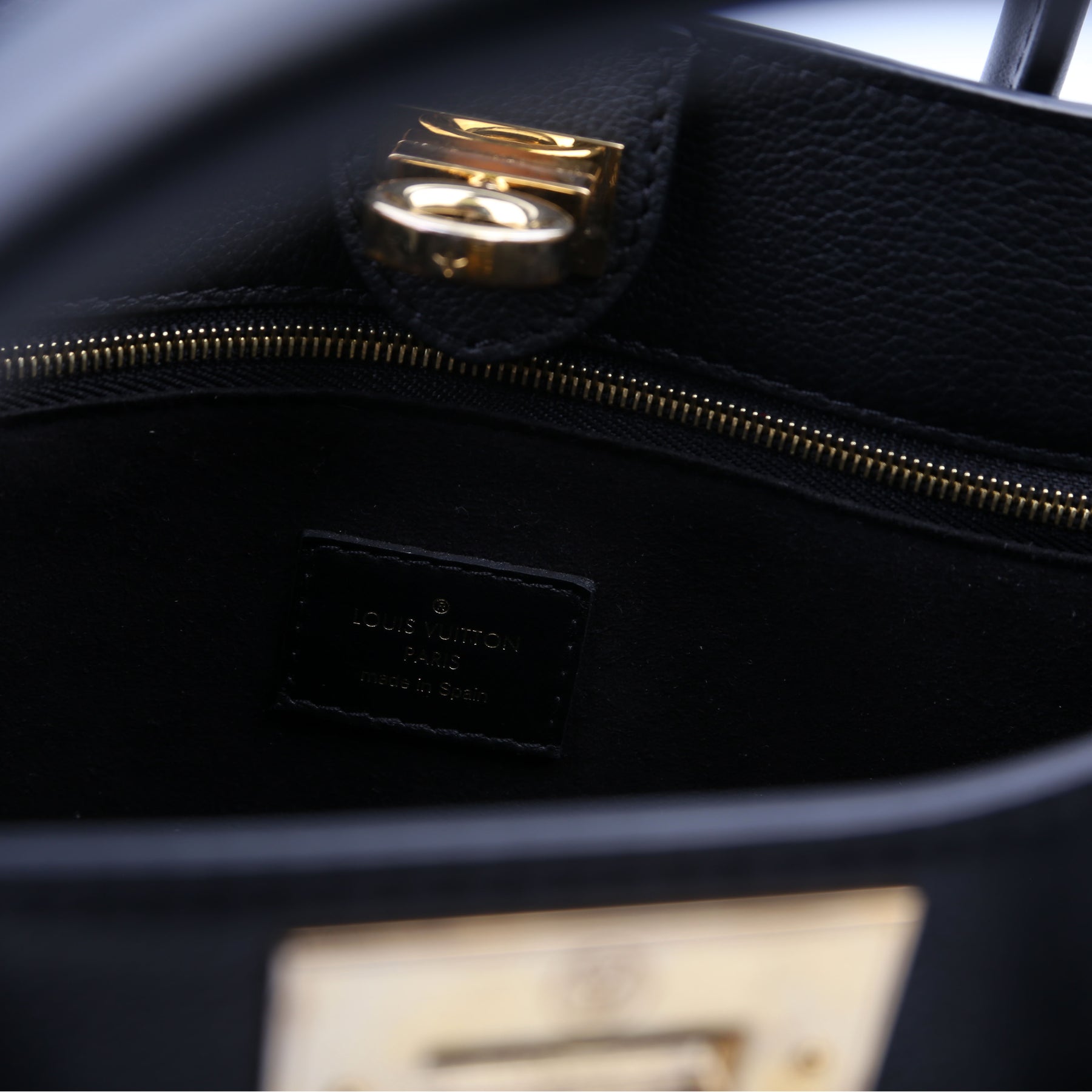 This pre-owned Louis Vuitton On My Side MM is guaranteed 100% authentic. The exterior is in the classic Louis Vuitton Calfskin leather and Monogram coated canvas.