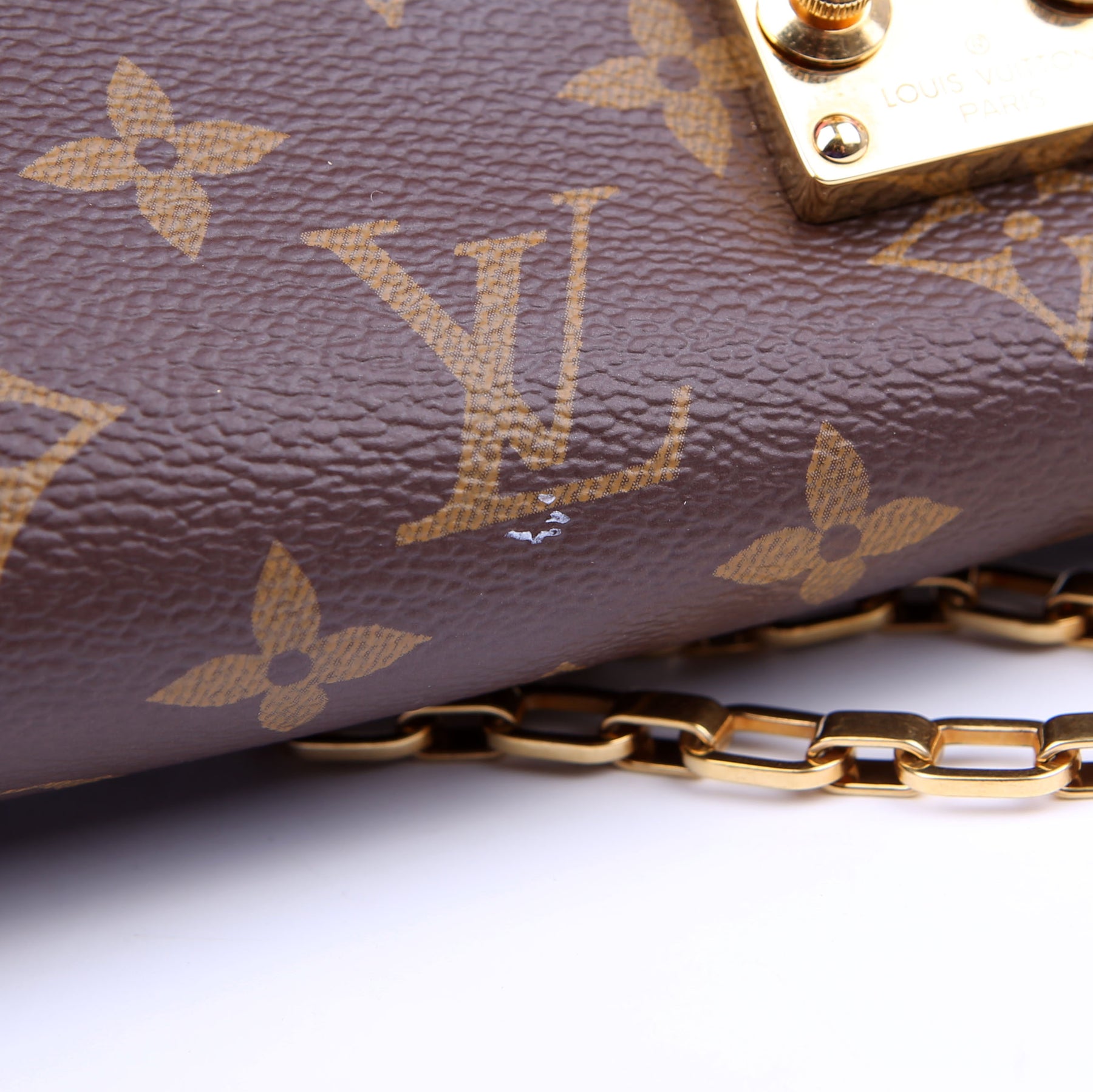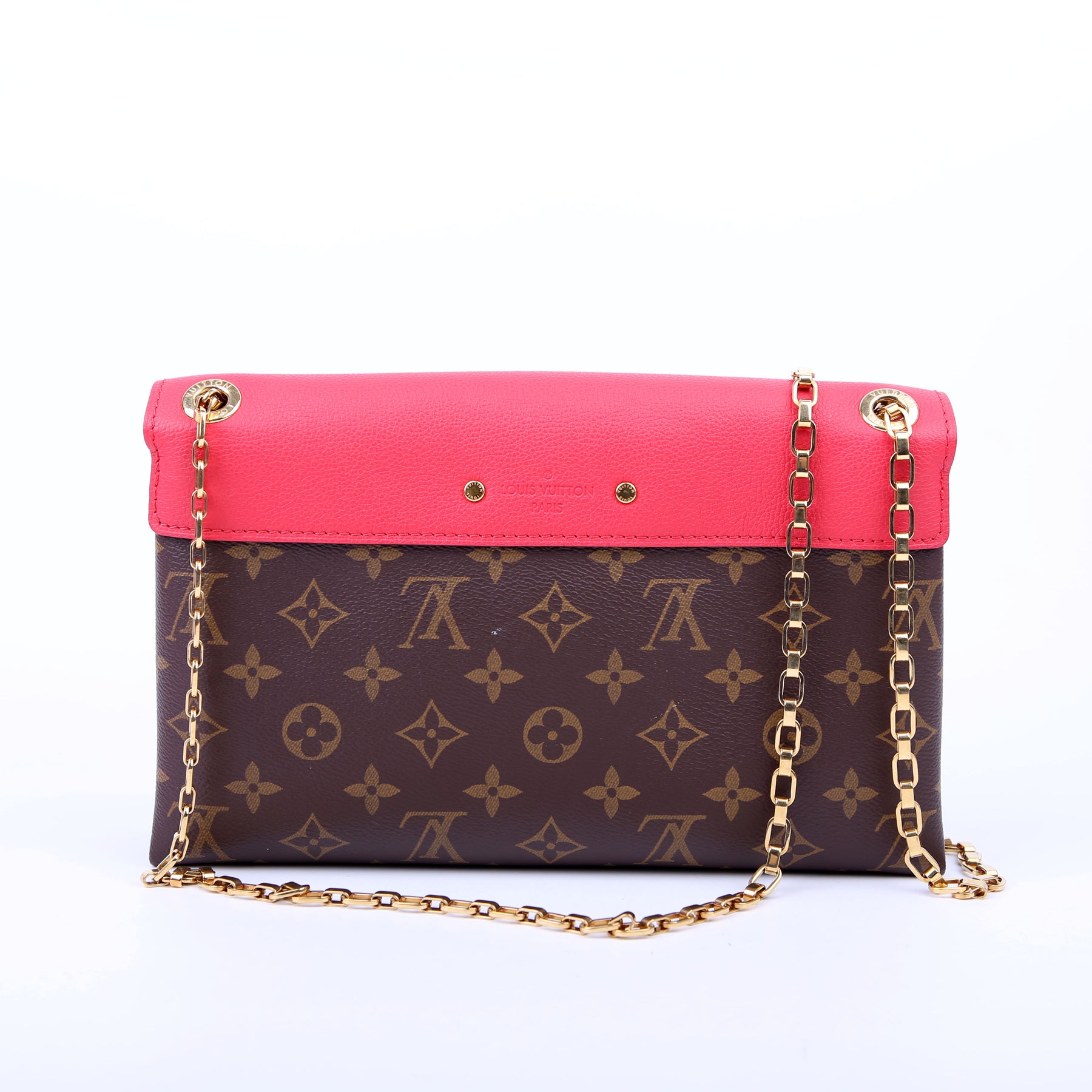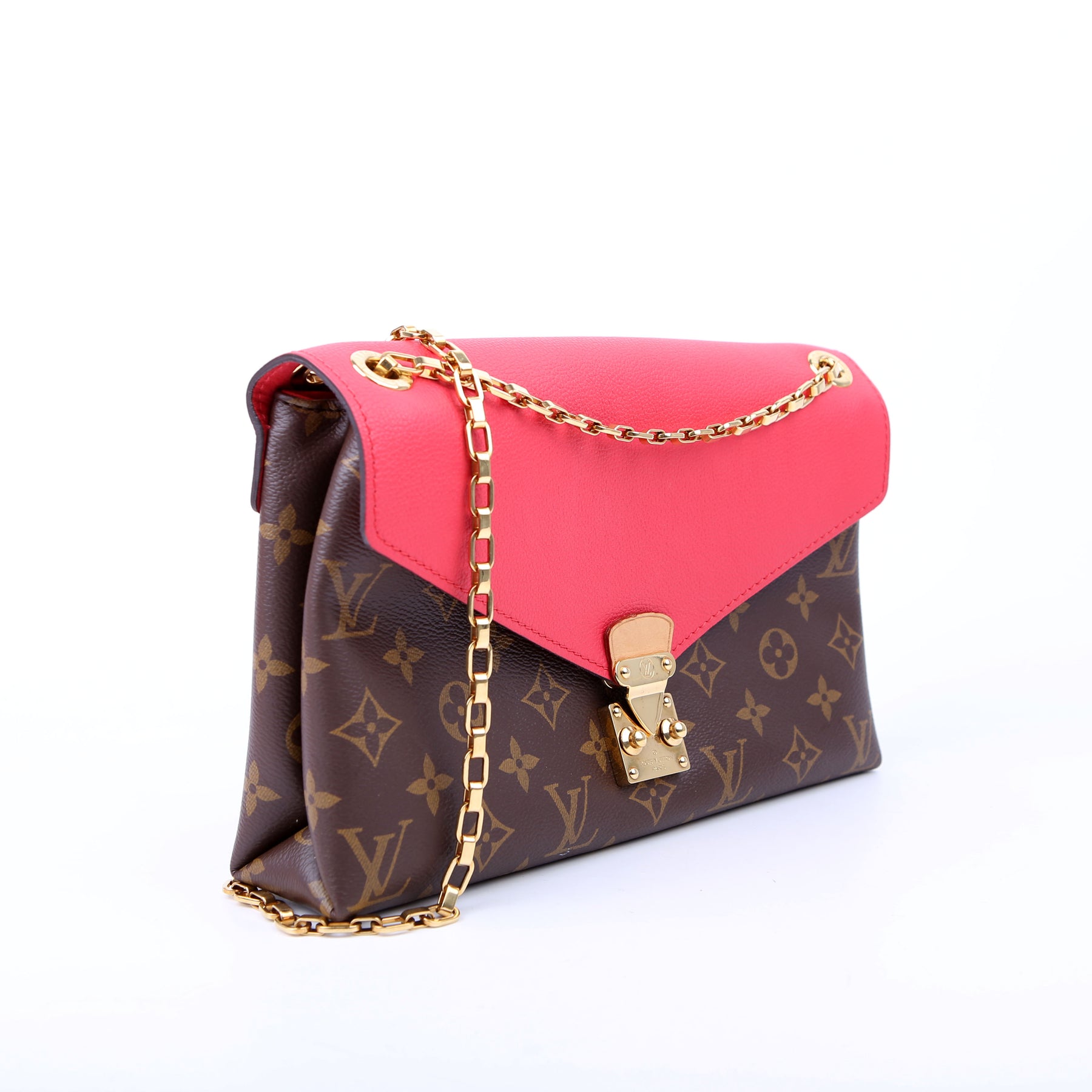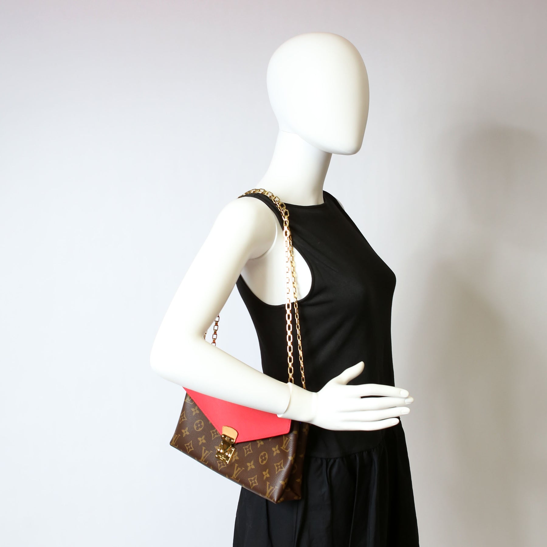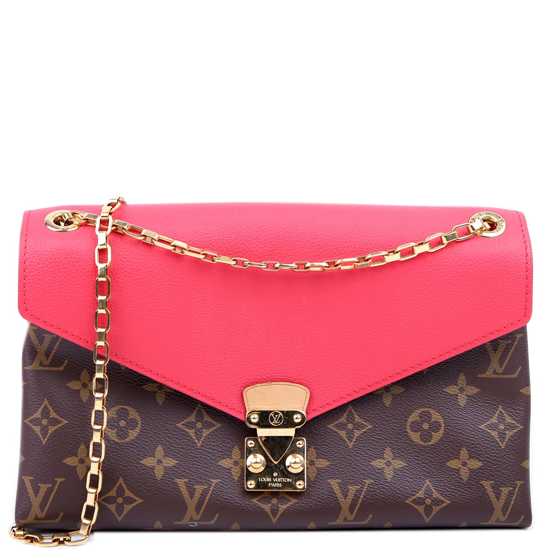 This pre-owned Louis Vuitton Pallas Chain is guaranteed 100% authentic. The exterior is in the classic Louis Vuitton Monogram coated canvas.