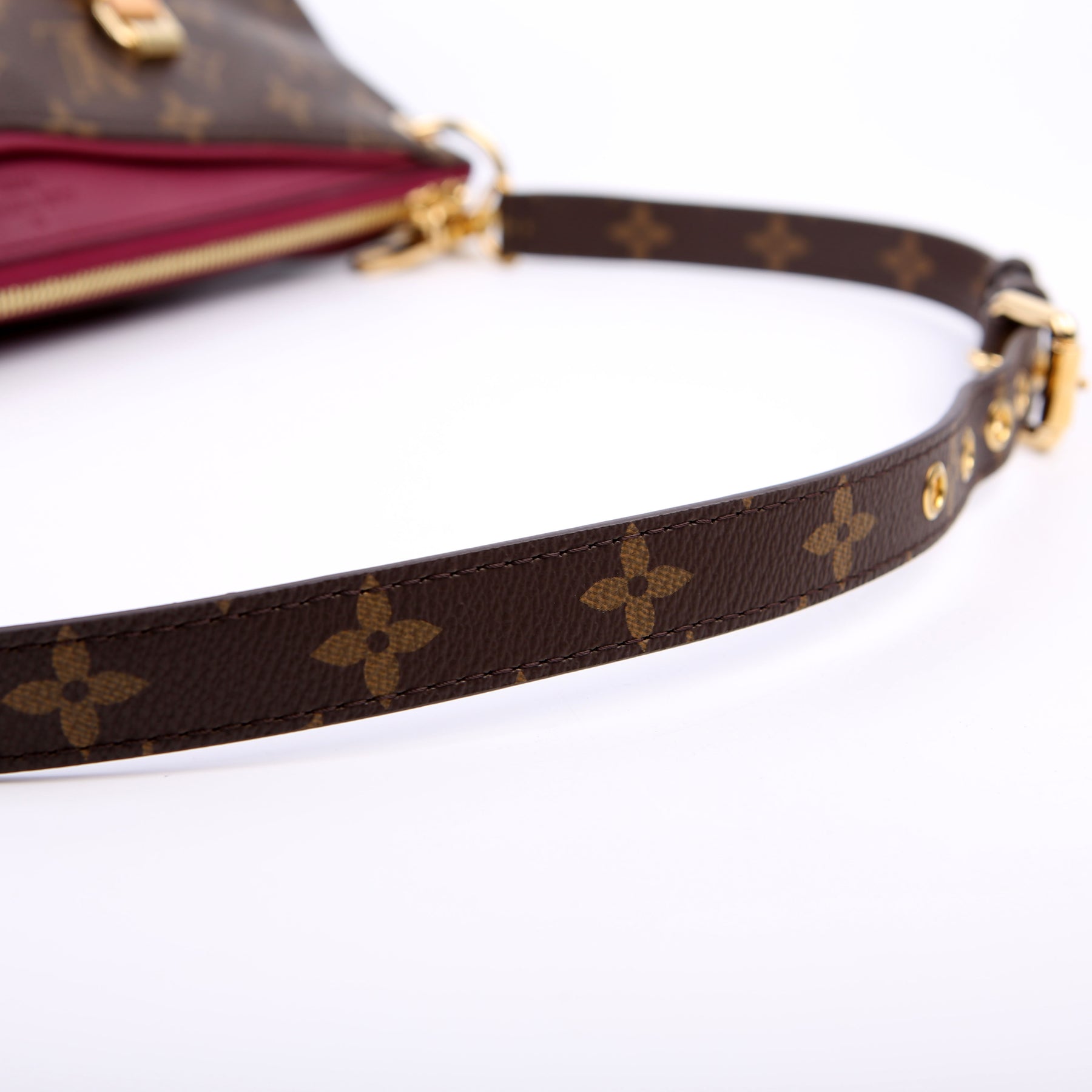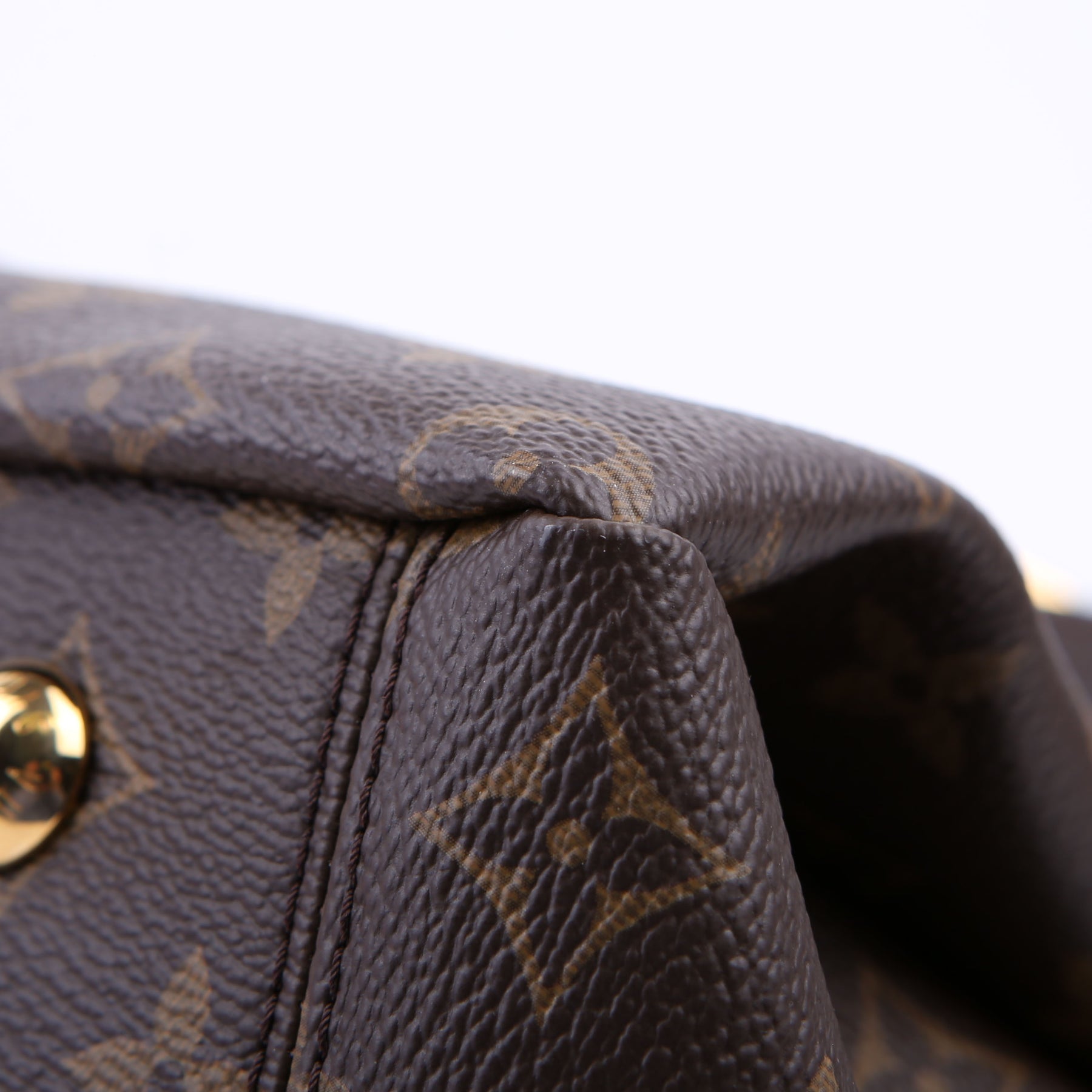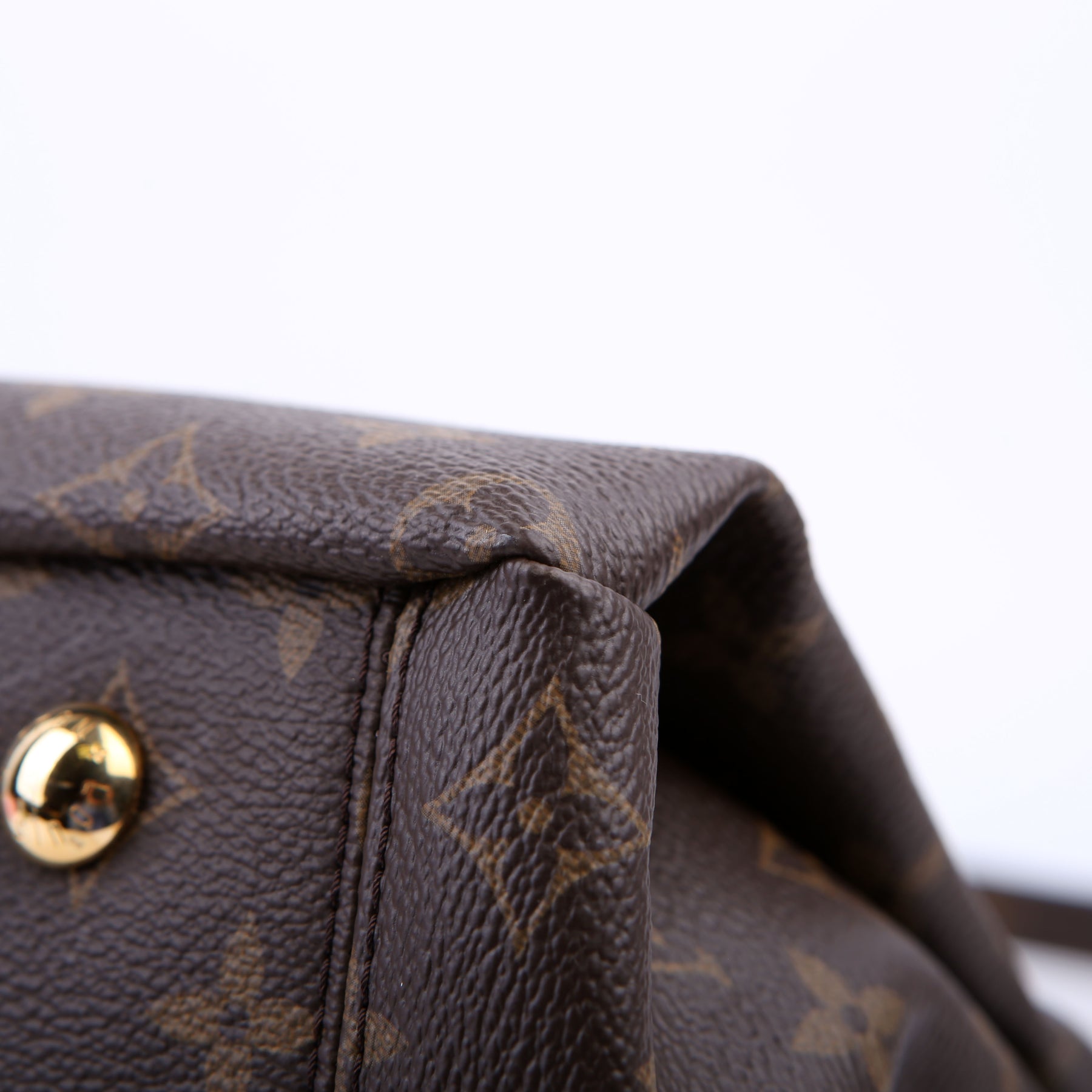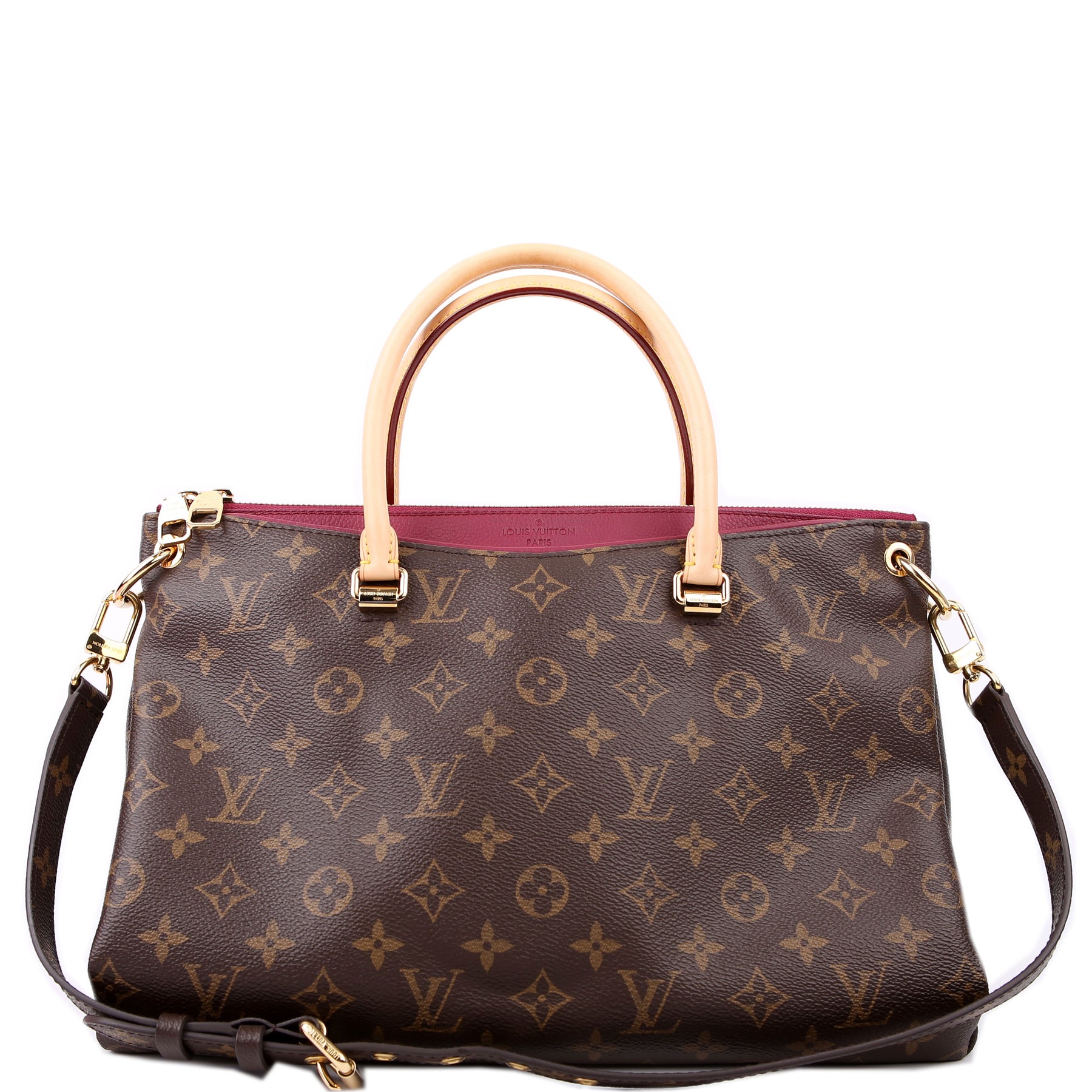 This pre-owned Louis Vuitton Pallas Tote Leather Side is guaranteed 100% authentic. The exterior is in the classic Louis Vuitton Monogram coated canvas.