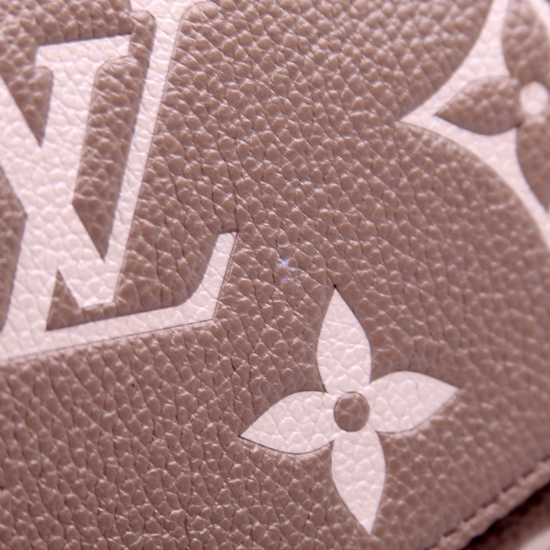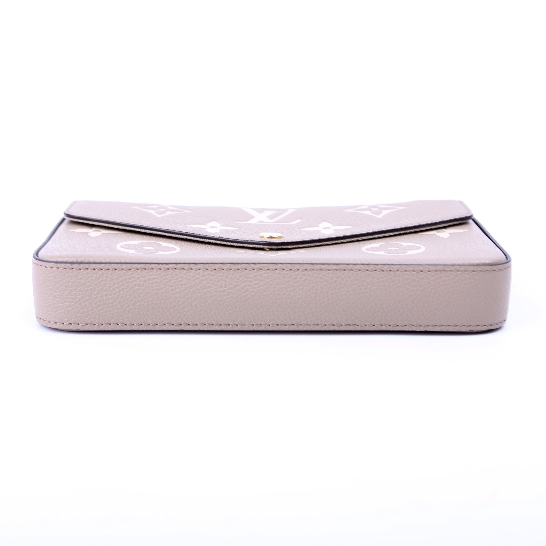 This pre-owned Louis Vuitton Pochette Felicie Bicolor is guaranteed 100% authentic. The exterior is in the classic Louis Vuitton Empreinte leather.