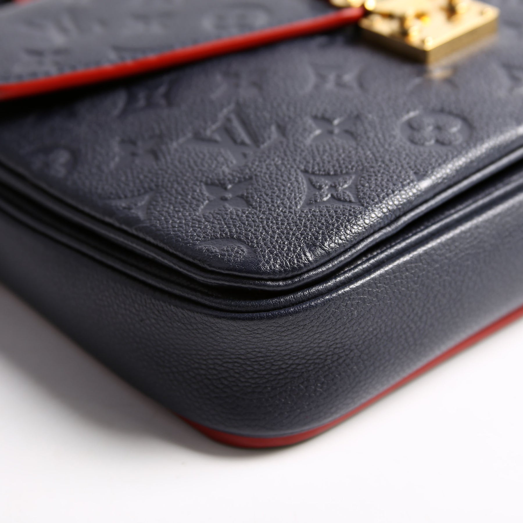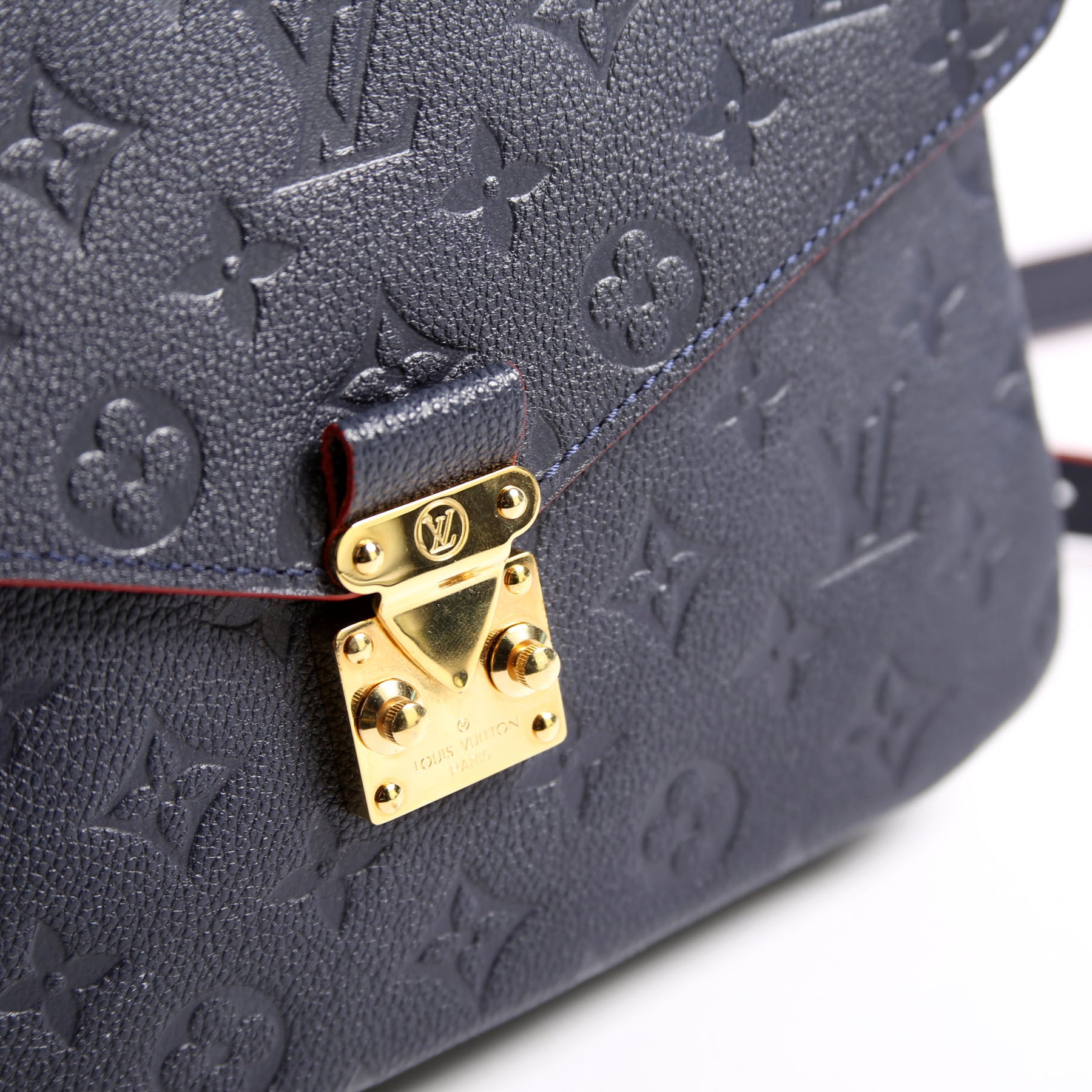 This pre-owned Louis Vuitton Pochette Metis is guaranteed 100% authentic. The exterior is in the classic Louis Vuitton Empreinte leather.