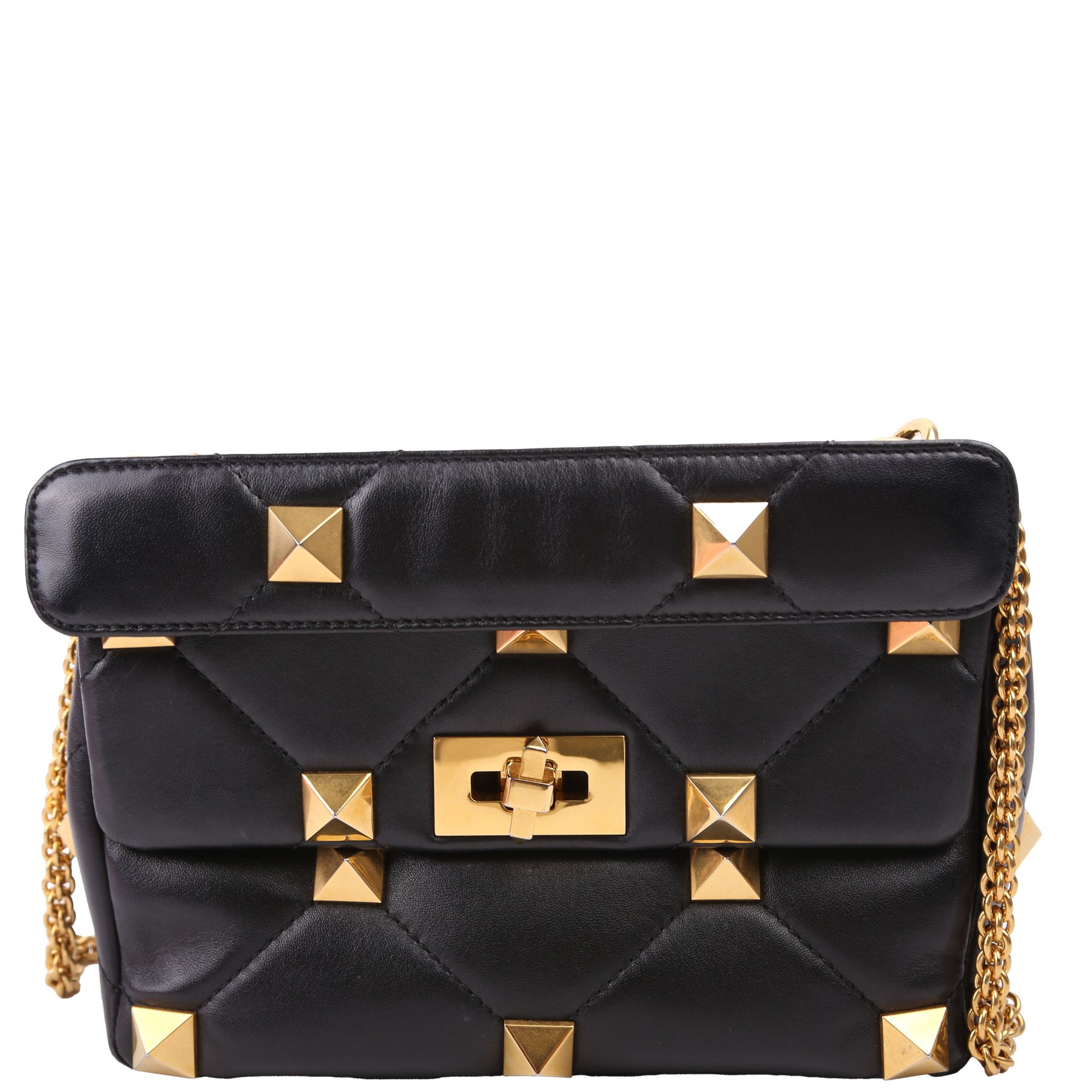 This pre-owned Valentino Roman Stud Medium Nappa is guaranteed 100% authentic. The exterior is in the classic Valentino Nappa leather.