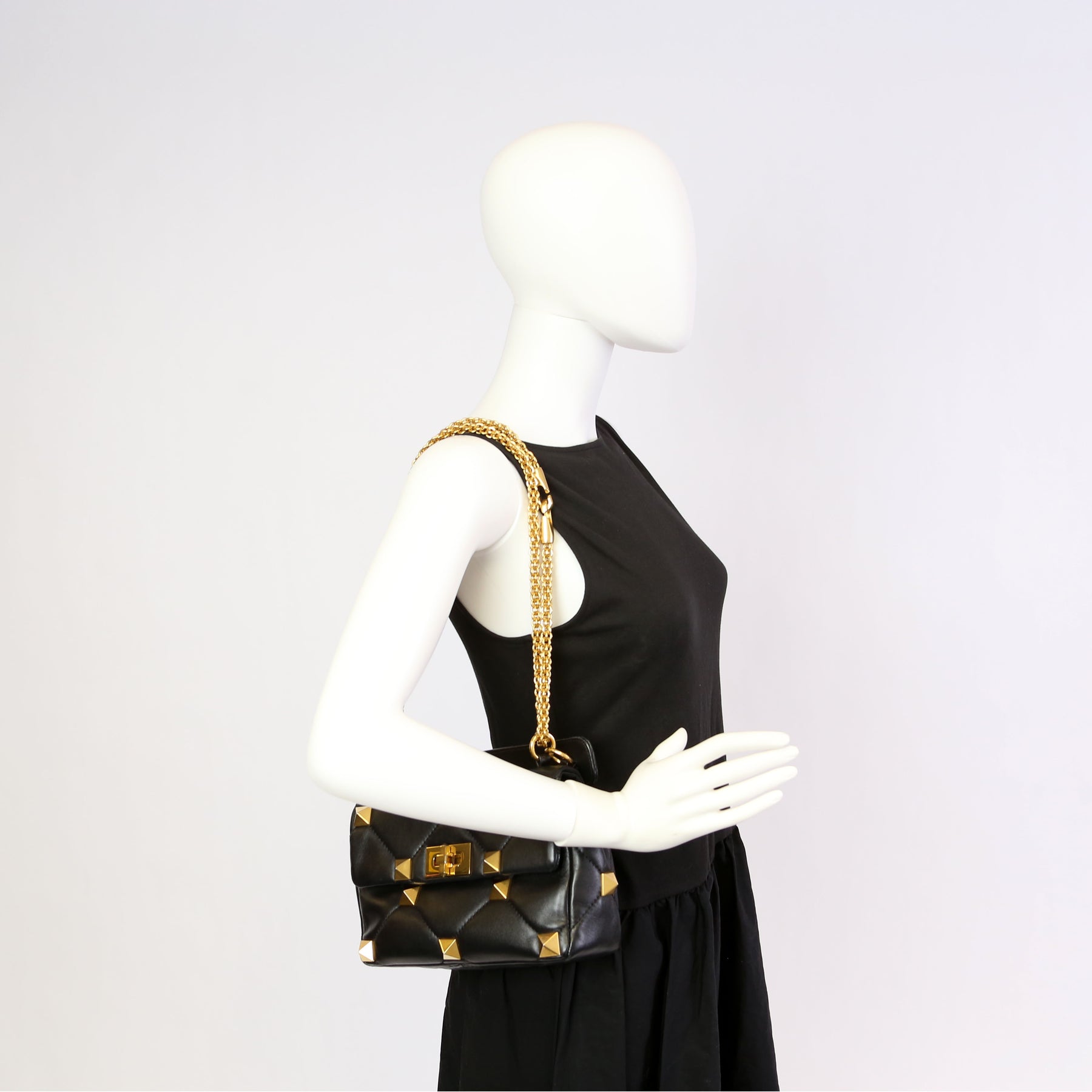 Roman Stud Medium Shoulder Bag Black