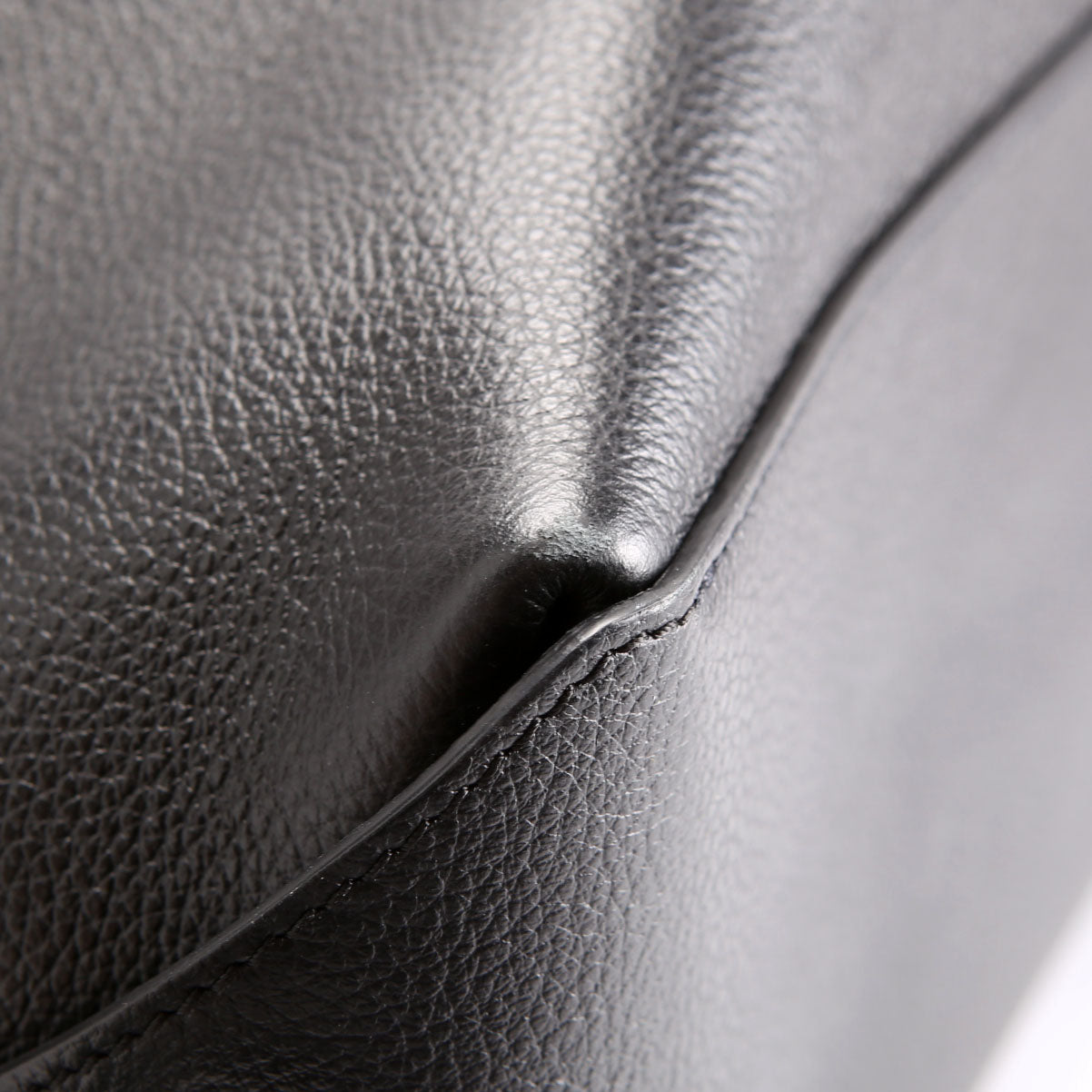 Exterior: The exterior leather has wear on all four corners of the bag.