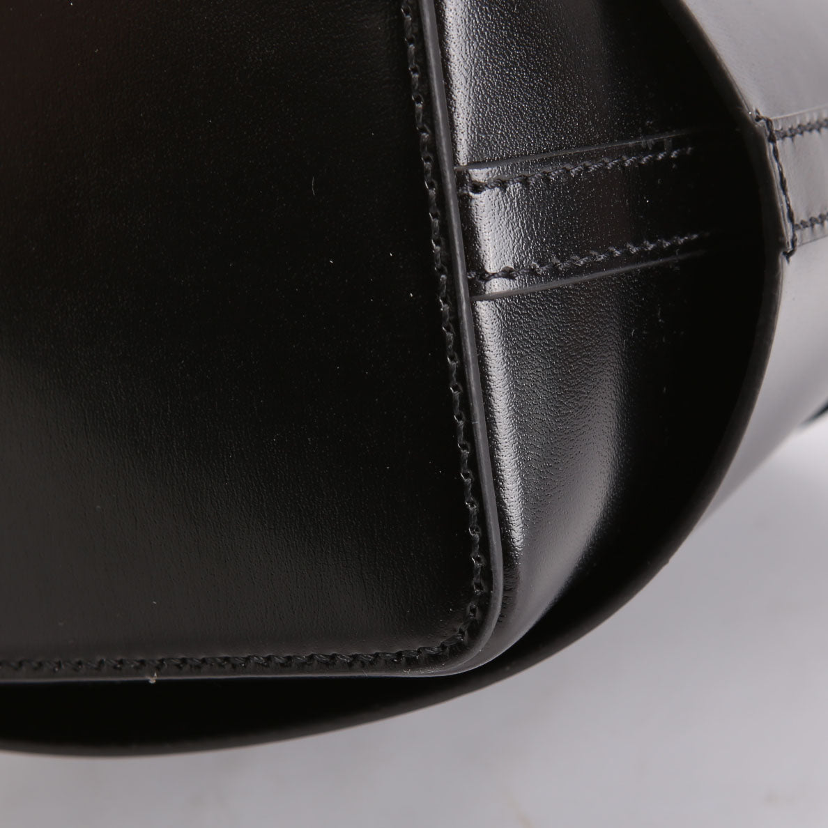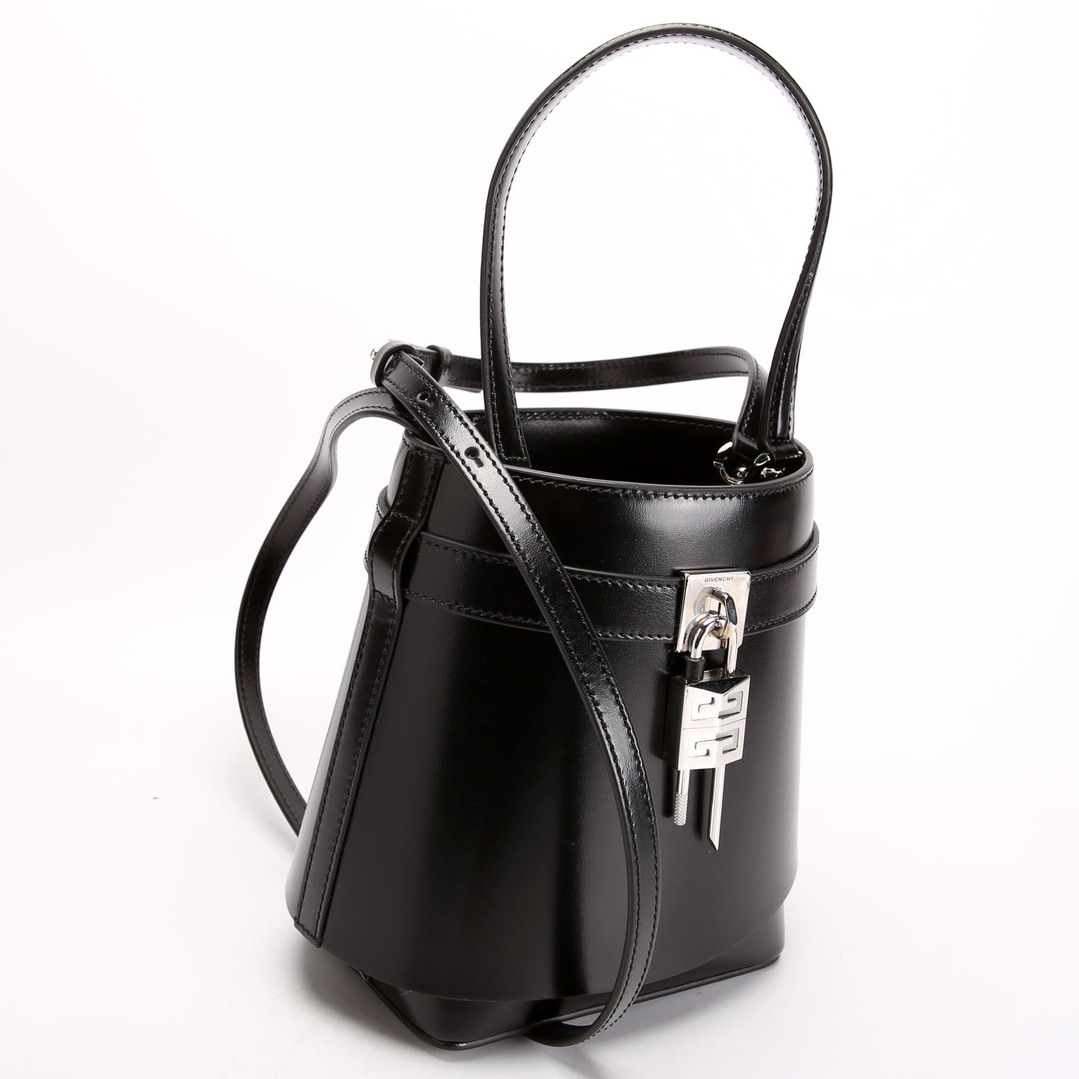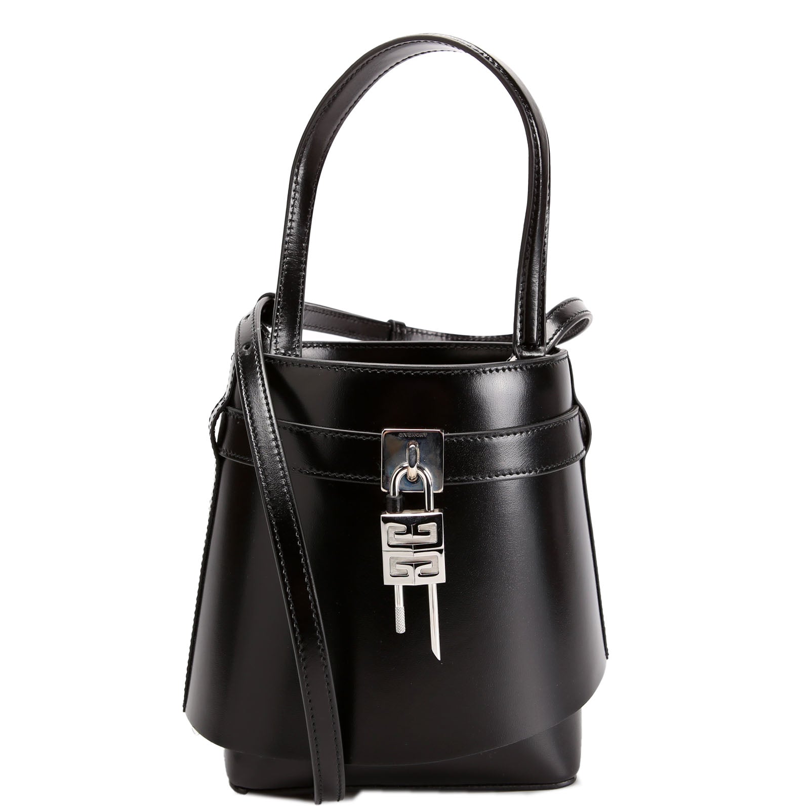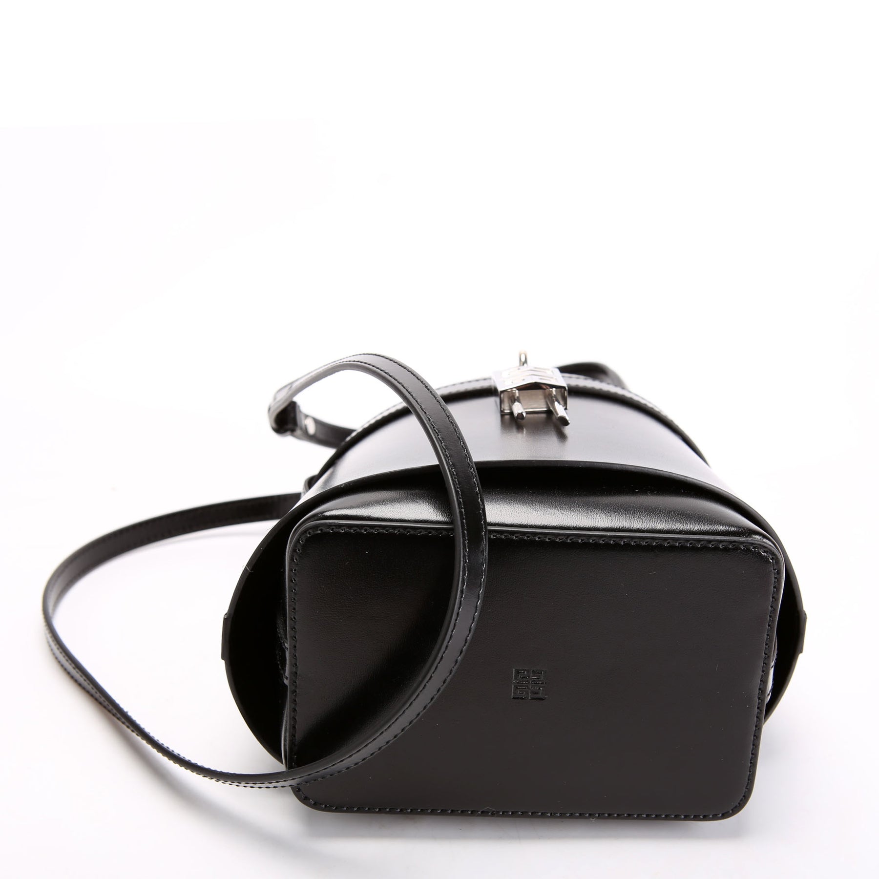 This pre-owned Givenchy Shark Lock Bucket Bag Box is guaranteed 100% authentic. The exterior is in the classic Givenchy Calfskin.