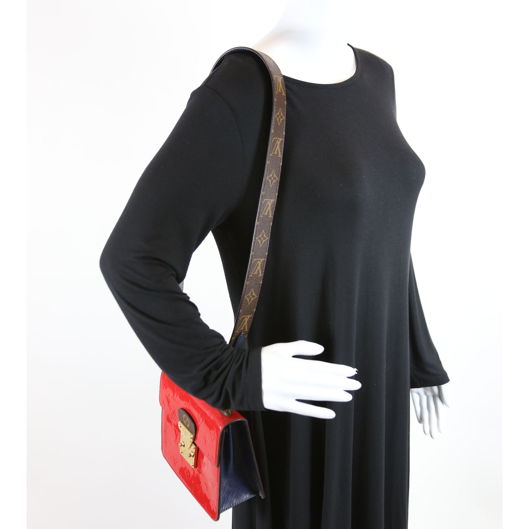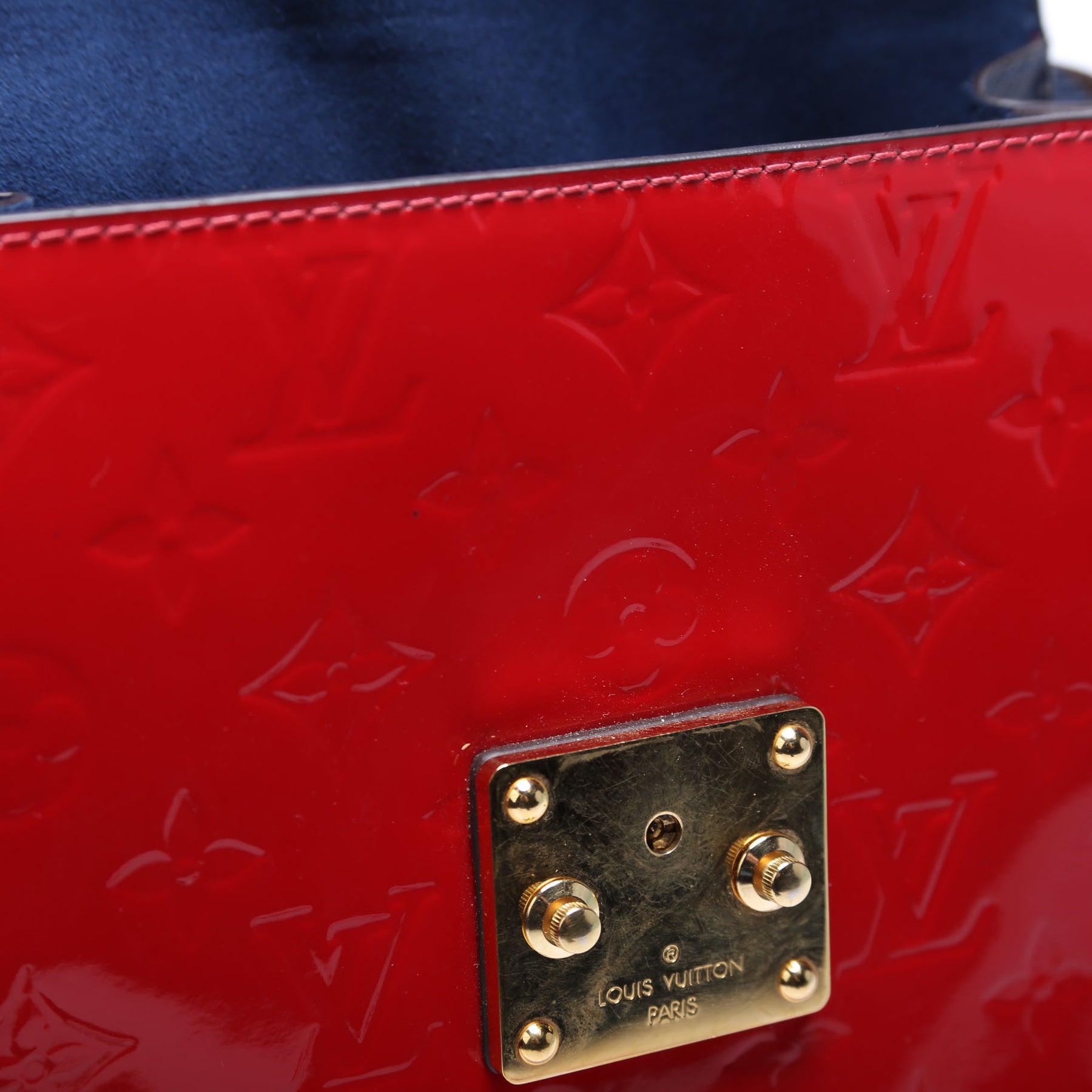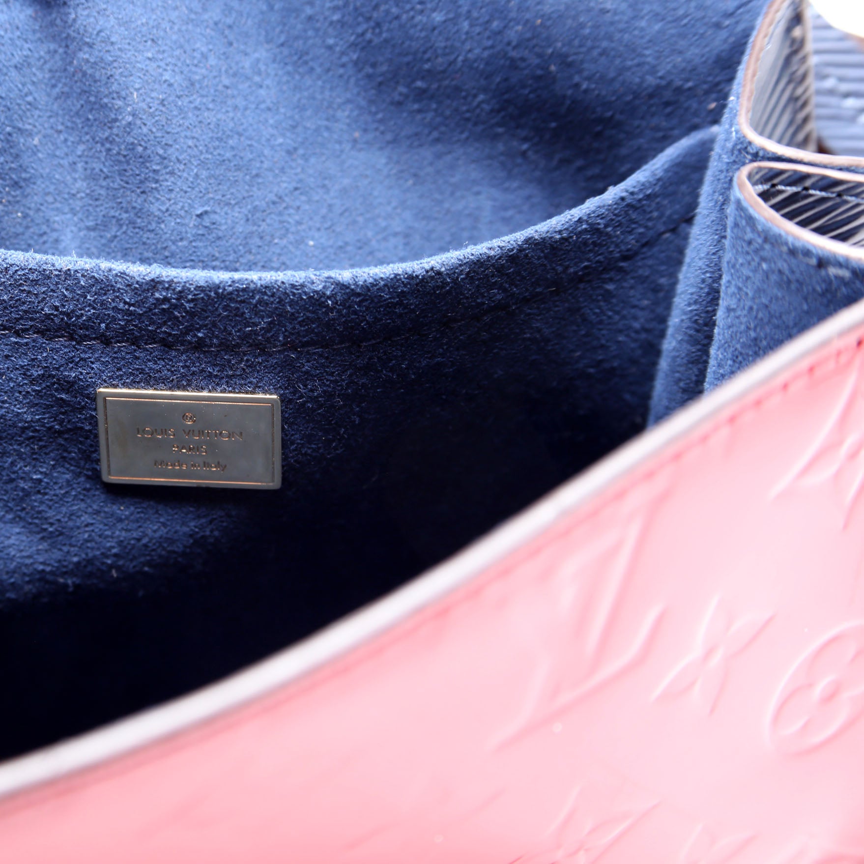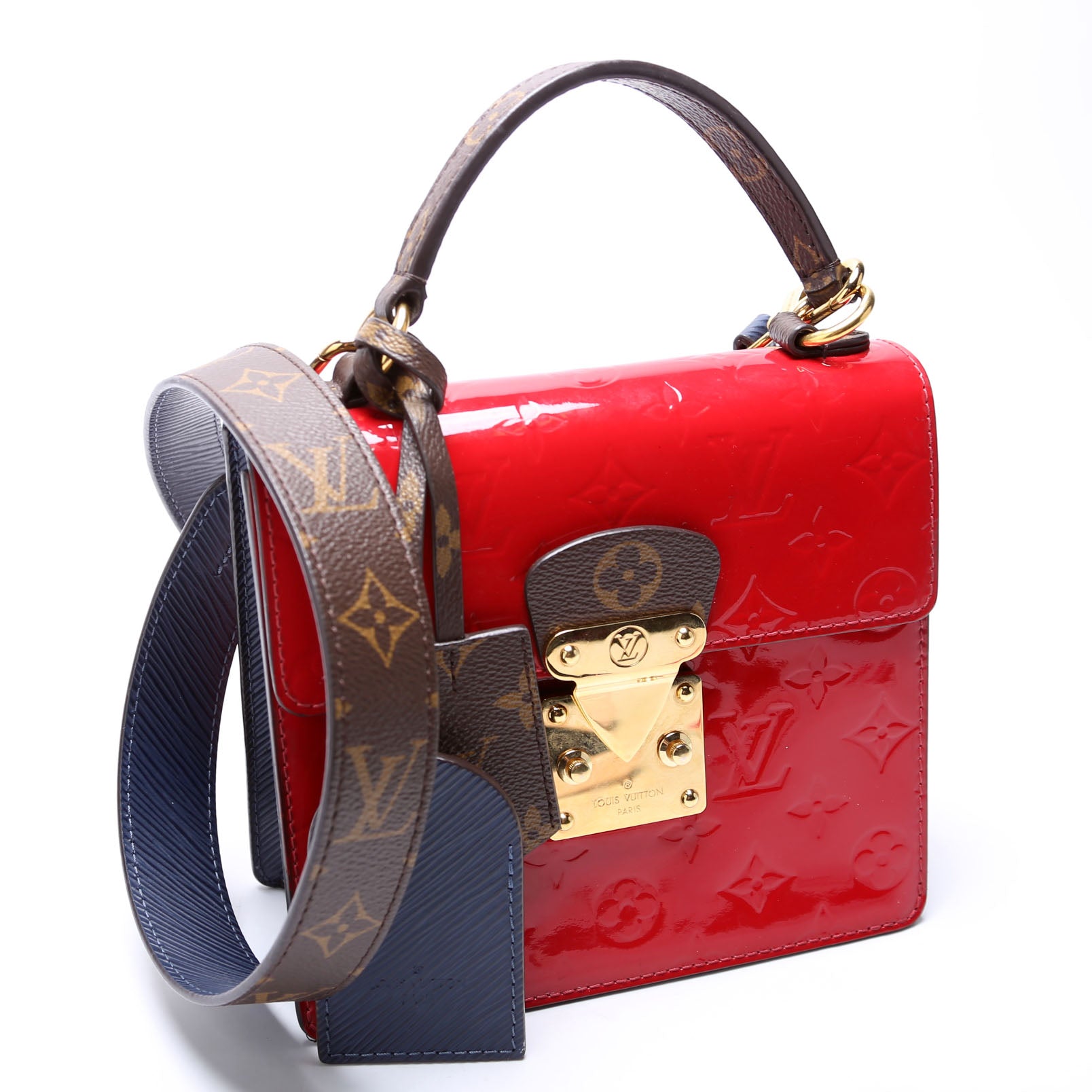 This pre-owned Louis Vuitton Spring Street is guaranteed 100% authentic. The exterior is in the classic Louis Vuitton Vernis Patent Leather.