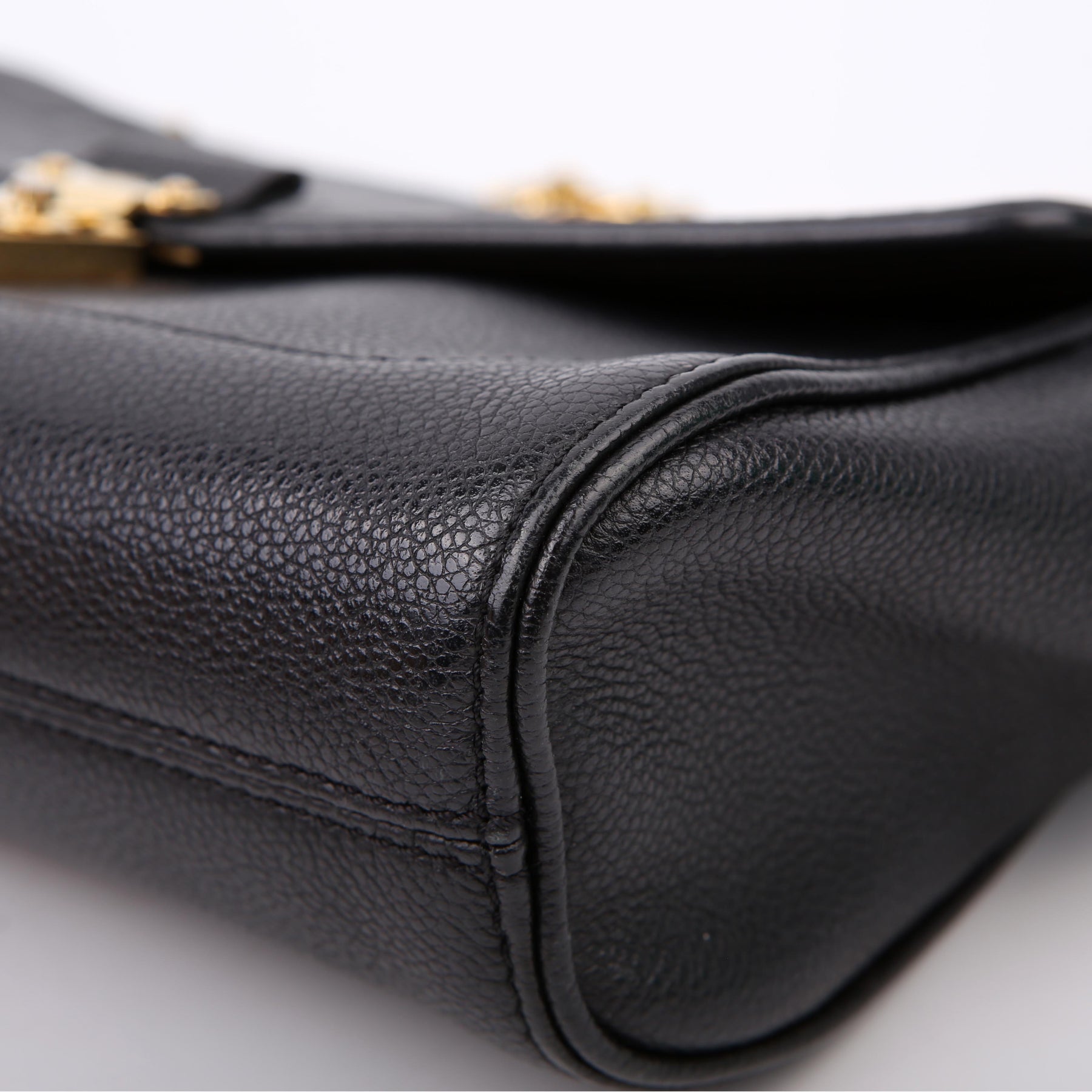 Hardware: The front clasp closure operates properly. The front hardware shows minor scratching.
