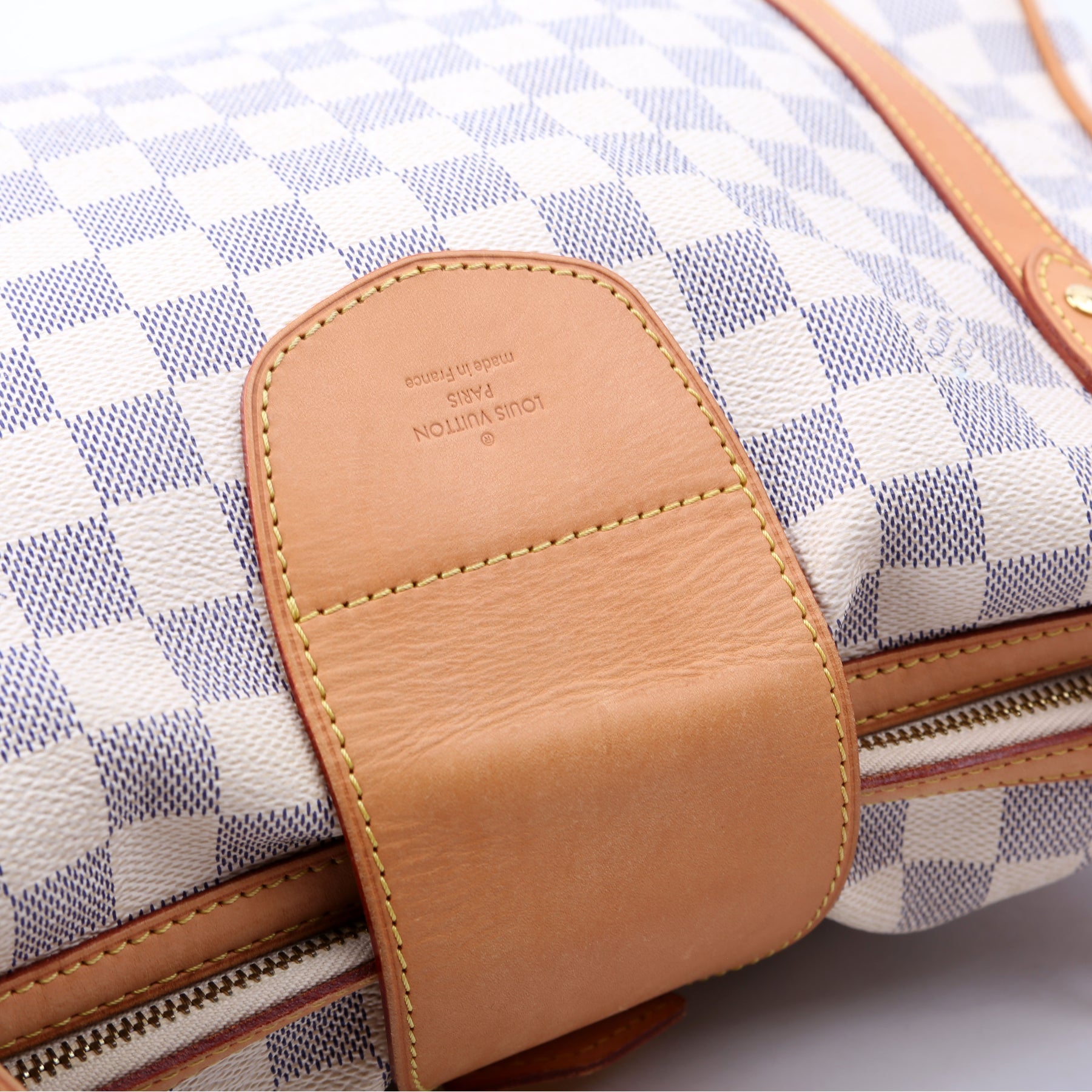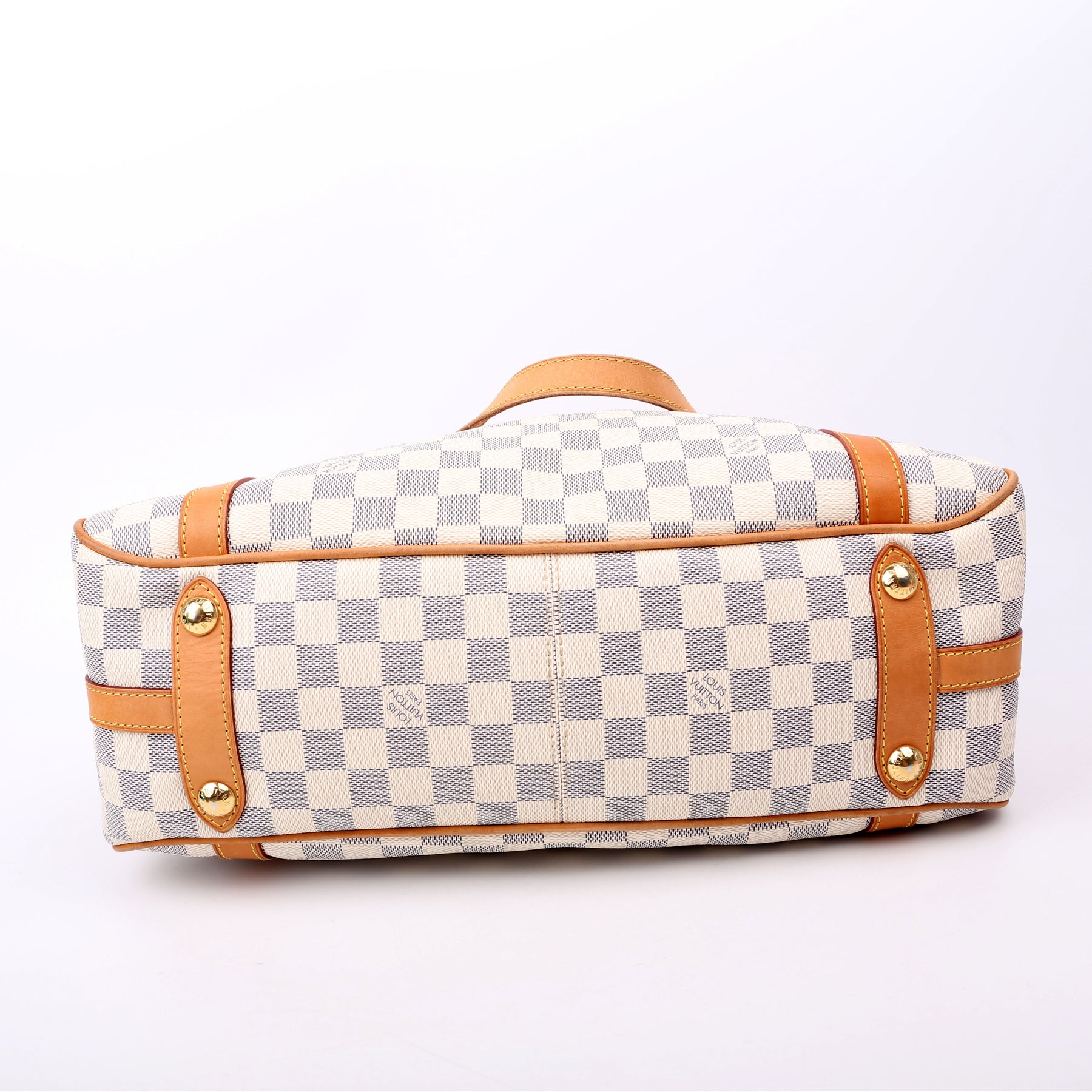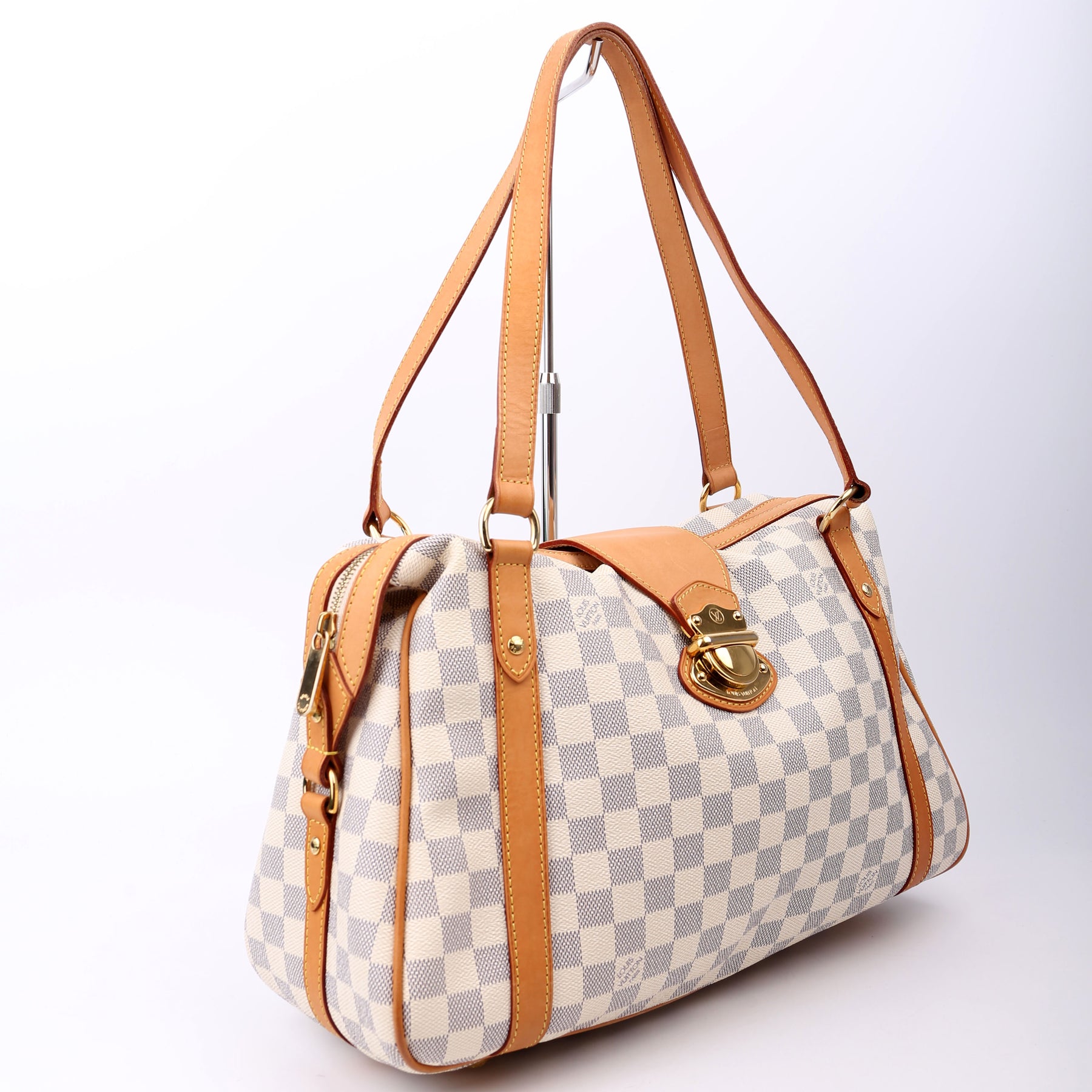 This pre-owned Louis Vuitton Stresa PM is guaranteed 100% authentic. The exterior is in the classic Louis Vuitton Damier Azur coated canvas.