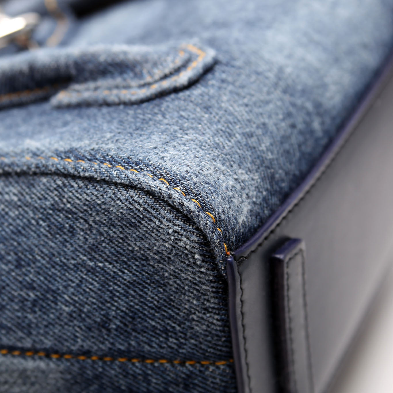This pre-owned Givenchy Toy Antigona Lock Denim is guaranteed 100% authentic.