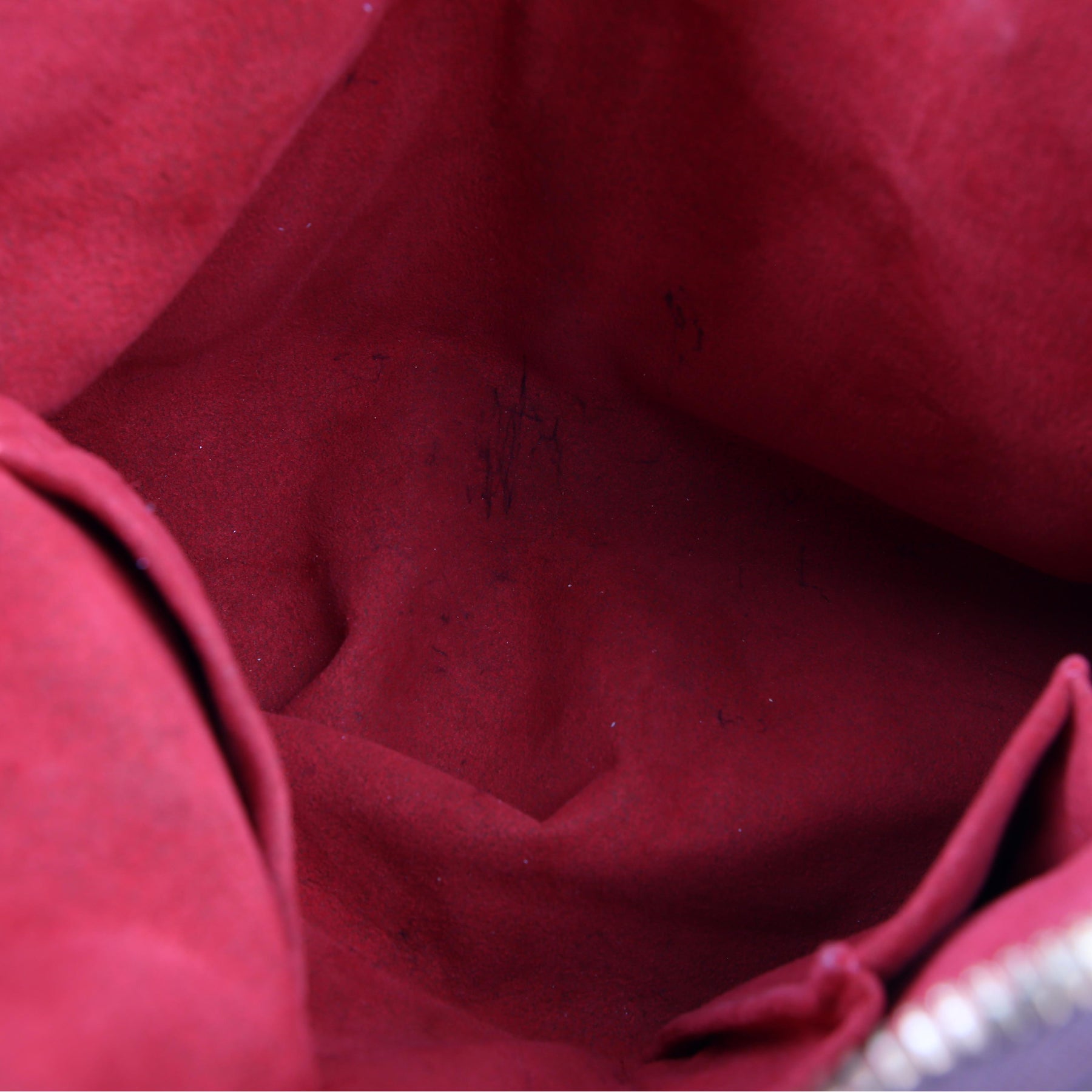 This pre-owned Louis Vuitton Trevi PM is guaranteed 100% authentic. The exterior is in the classic Louis Vuitton Damier Ebene coated canvas.