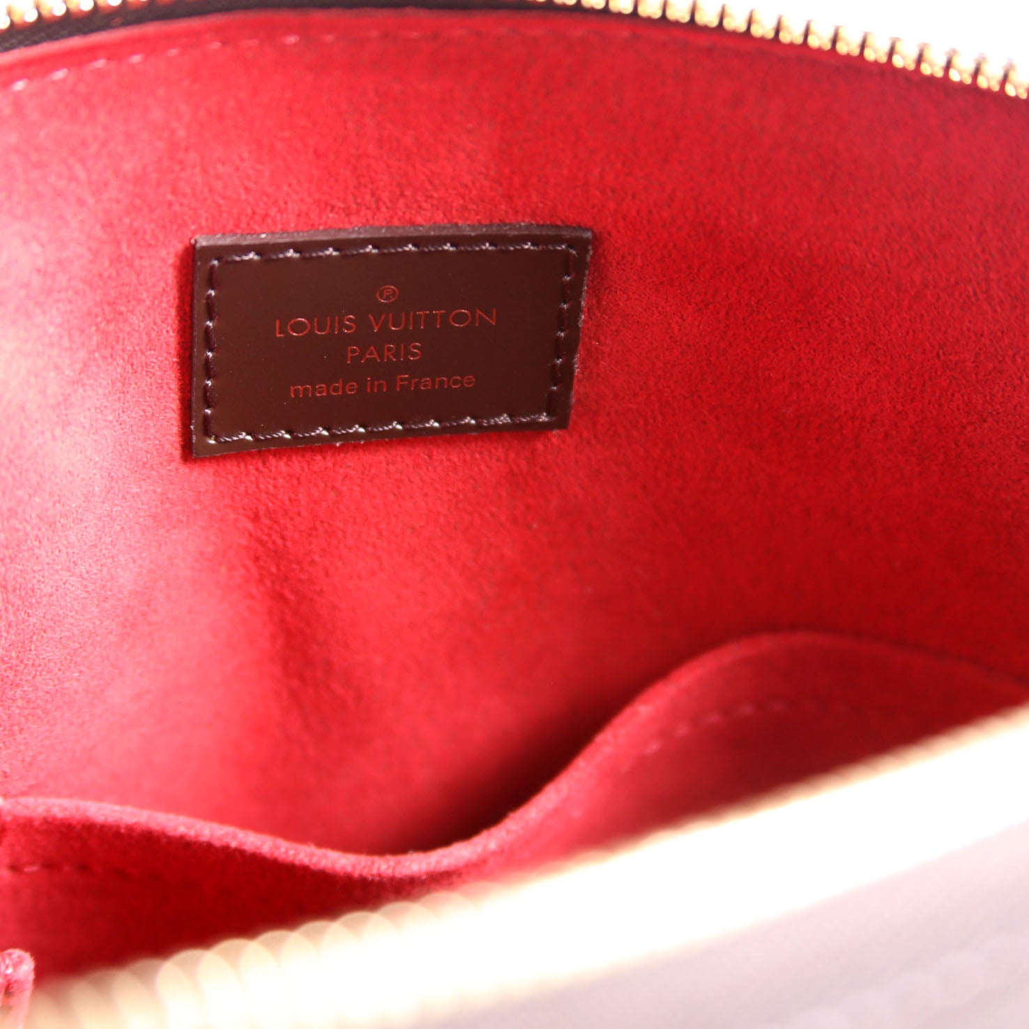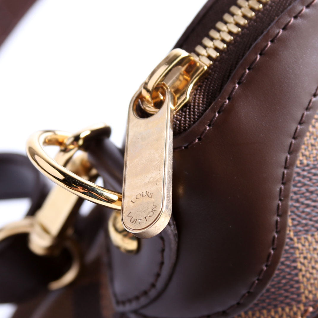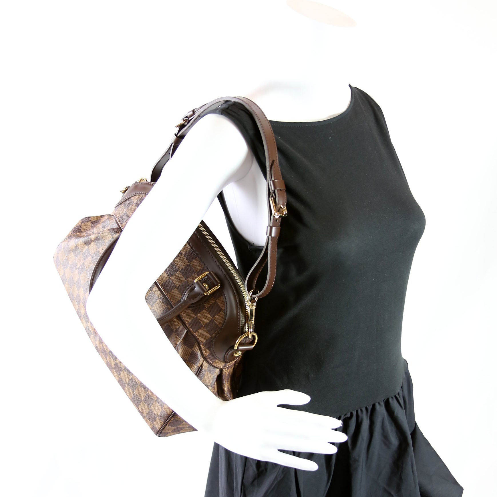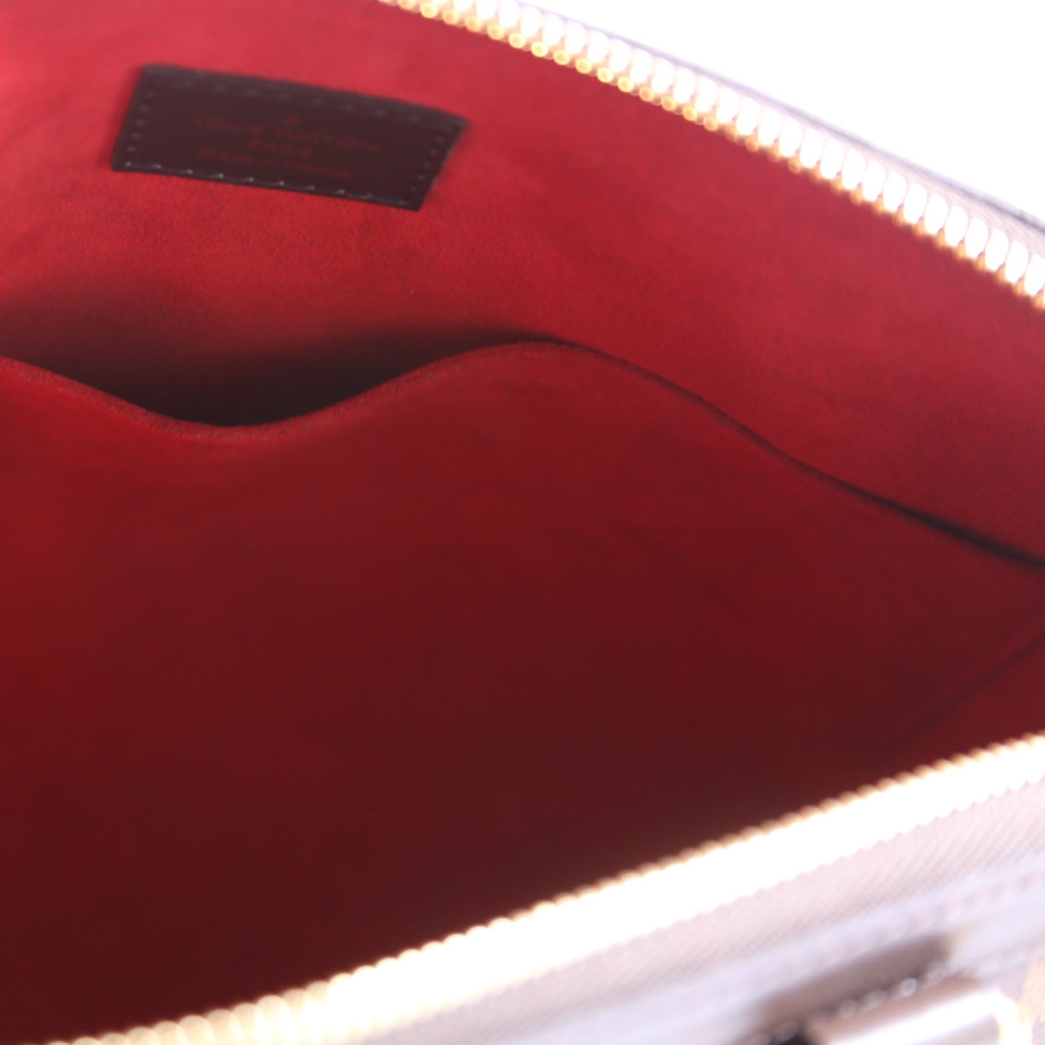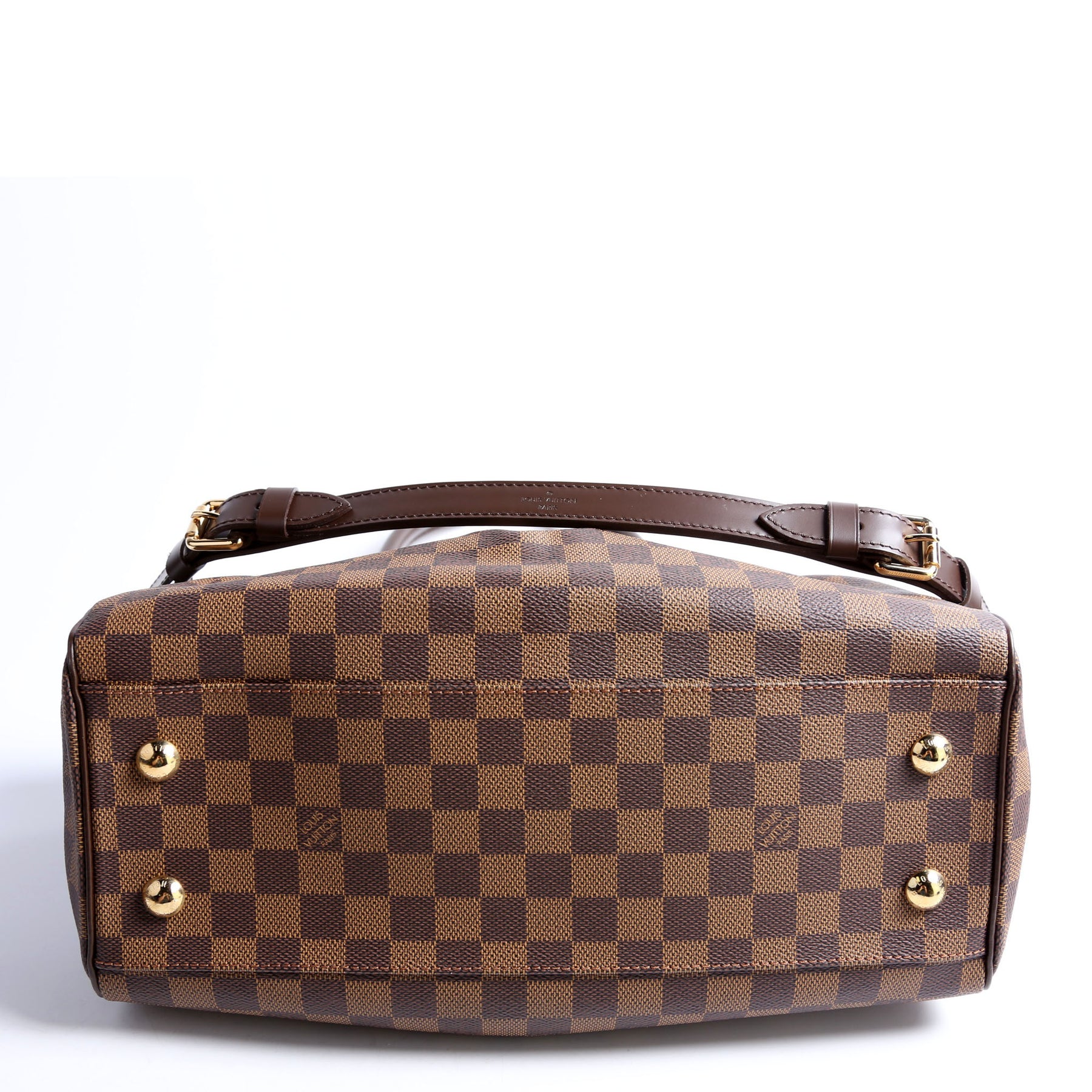 This pre-owned Louis Vuitton Trevi PM is guaranteed 100% authentic. The exterior is in the classic Louis Vuitton Damier Ebene coated canvas.