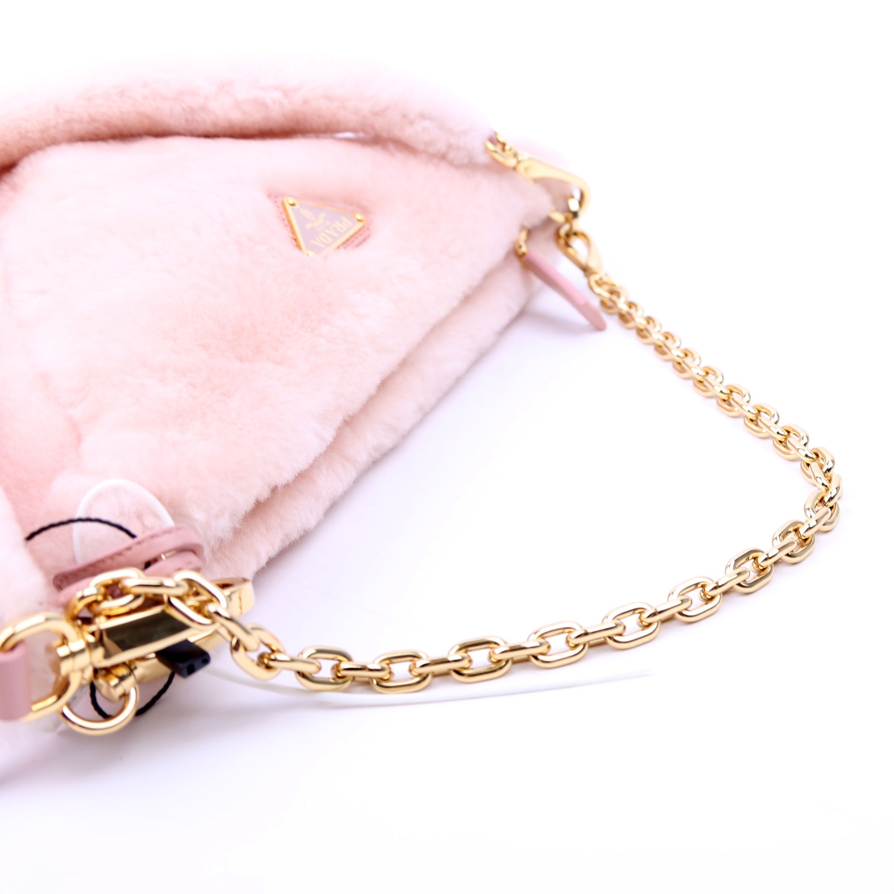 This pre-owned Prada Triangle Shearling Mini Bag is guaranteed 100% authentic.