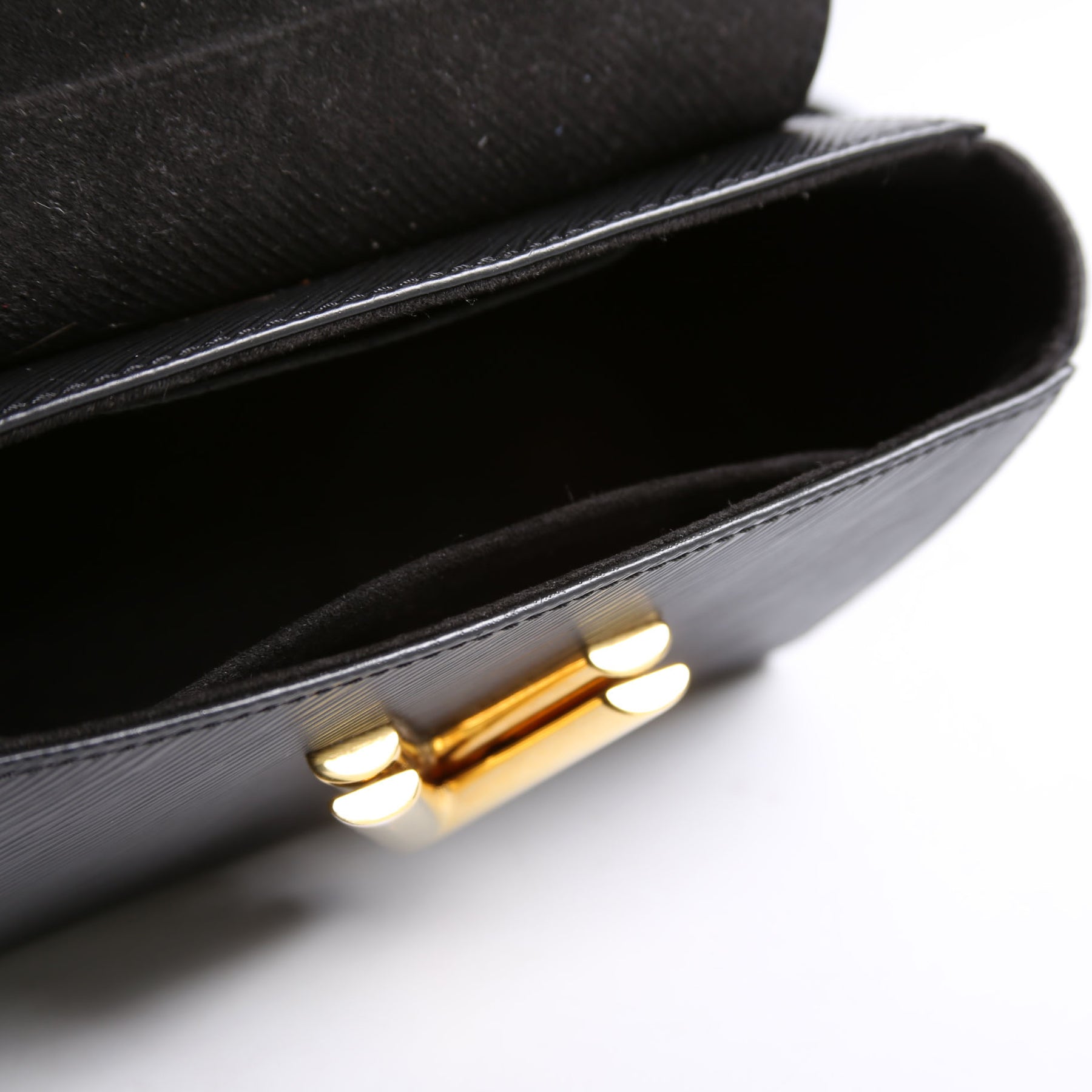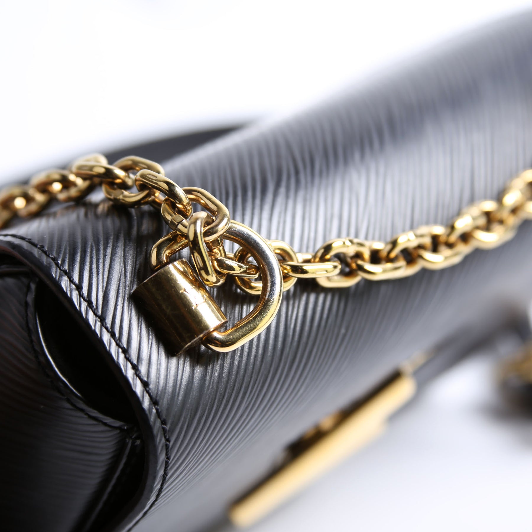 This pre-owned Louis Vuitton Twist PM is guaranteed 100% authentic. The exterior is in the classic Louis Vuitton Epi leather coated canvas.