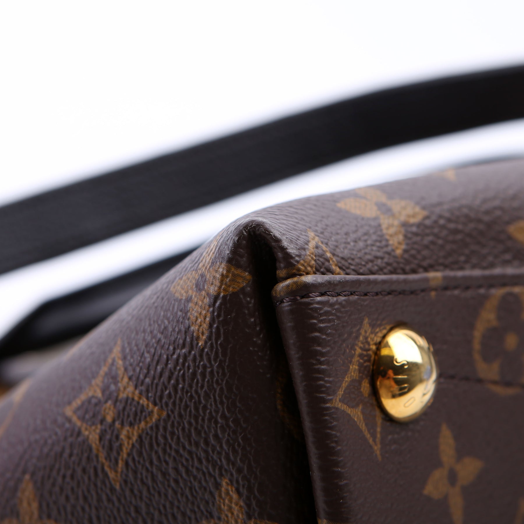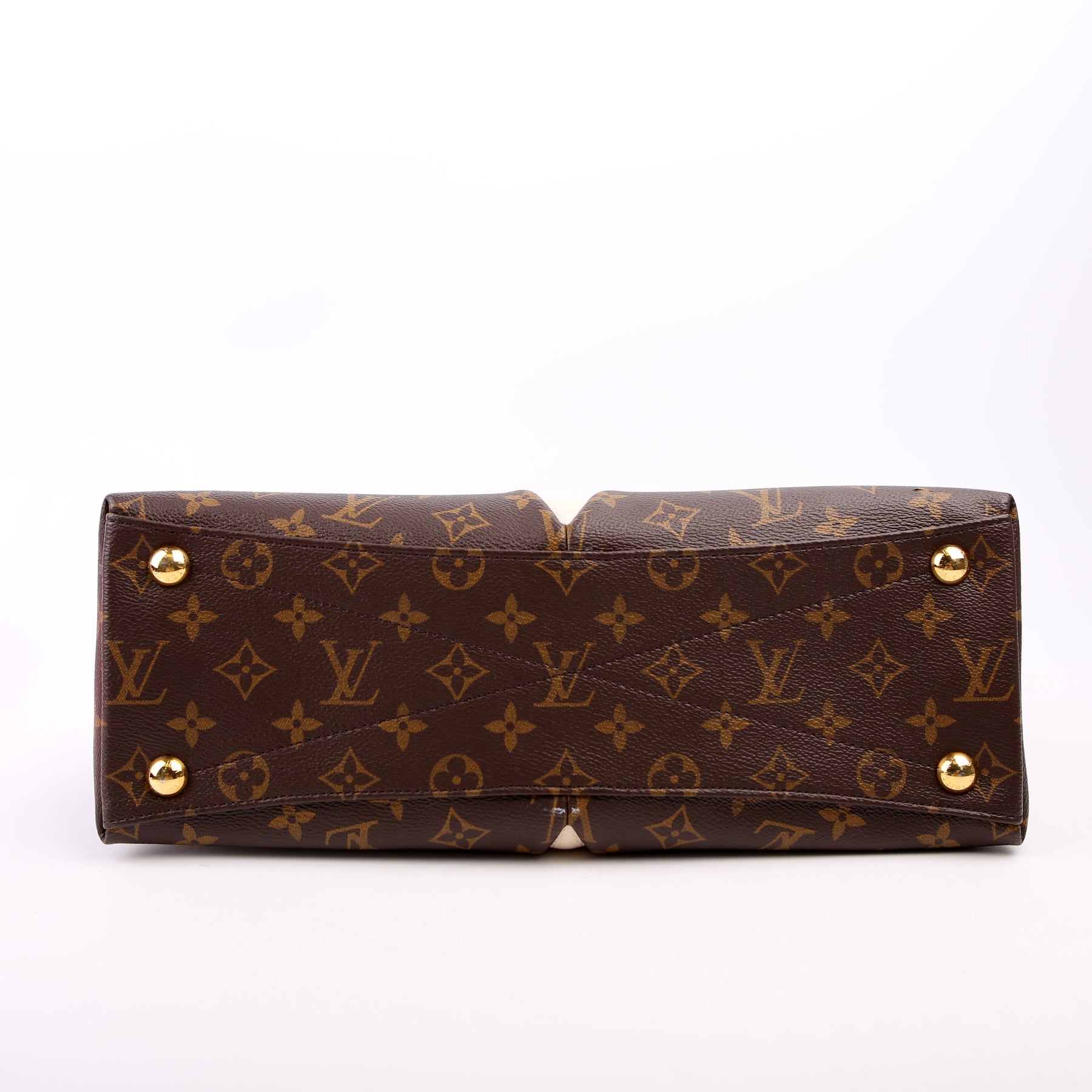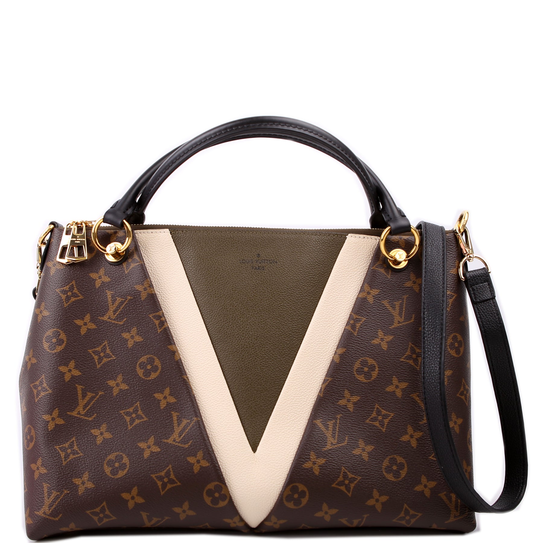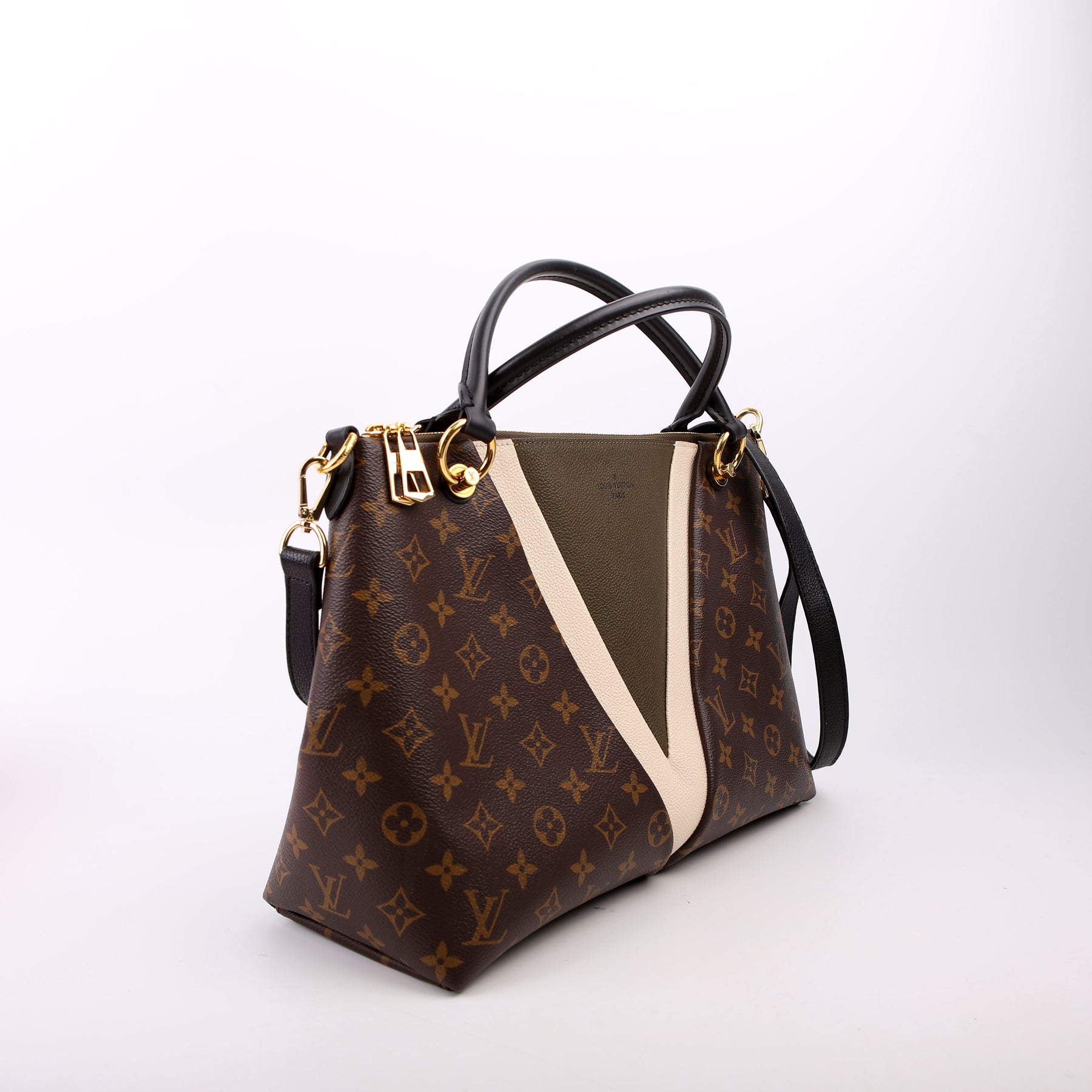 This pre-owned Louis Vuitton V Tote MM is guaranteed 100% authentic. The exterior is in the classic Louis Vuitton Monogram Coated Canvas.
