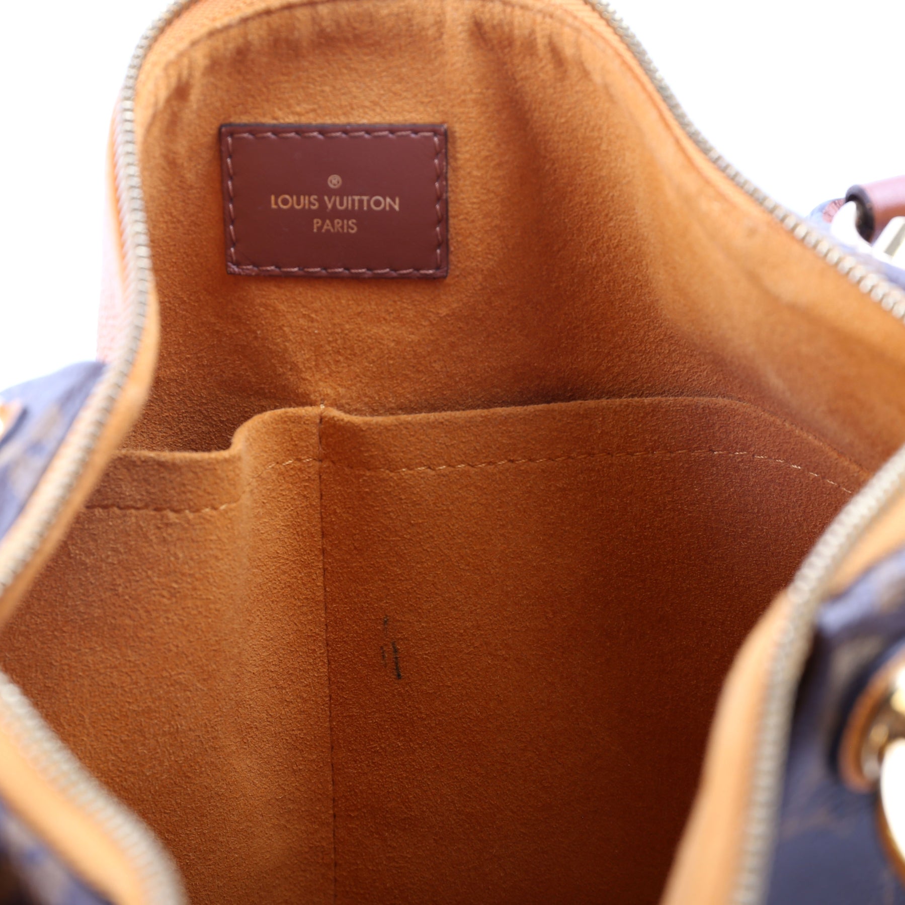 Hardware: The zipper operates properly and runs smoothly. The hardware shows minor scratches.