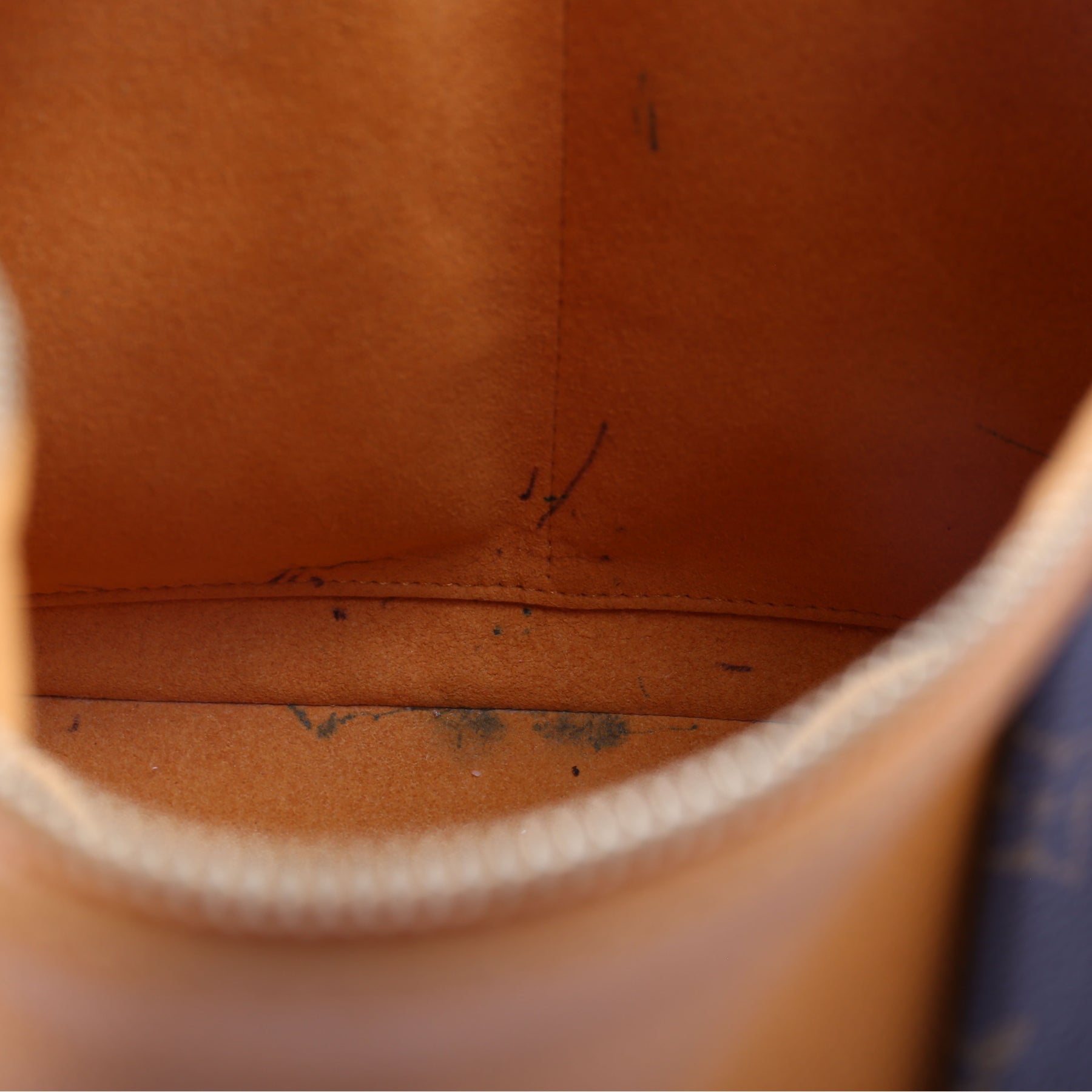 Interior: The interior has pen marks throughout. The interior features three open pockets.