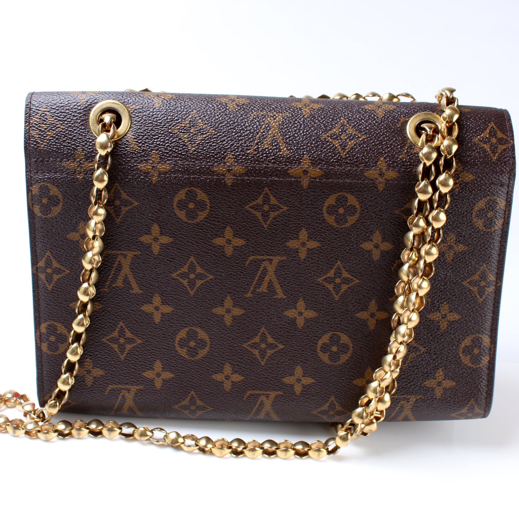 This pre-owned Louis Vuitton Victorie is guaranteed 100% authentic. The exterior is in the classic Monogram coated canvas.