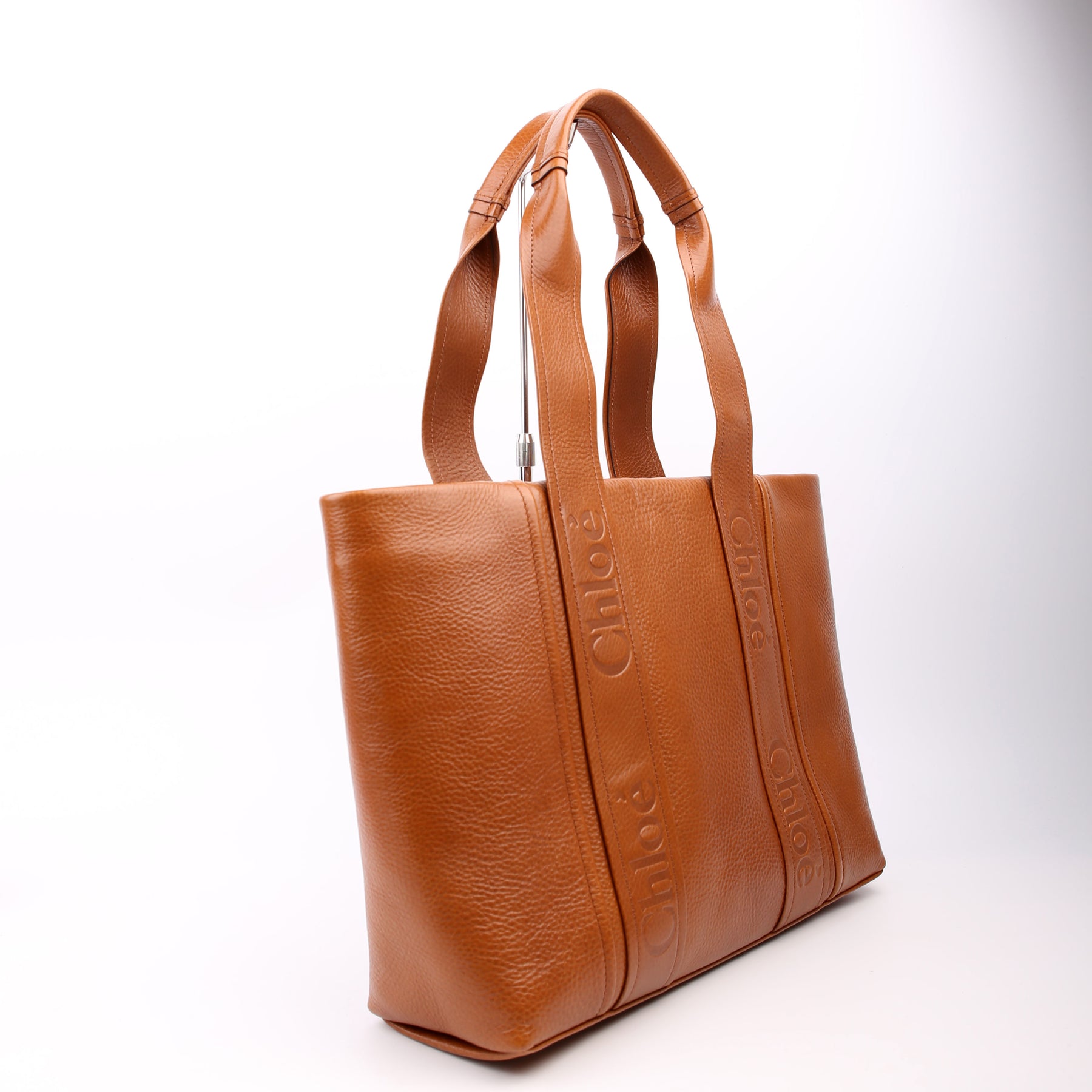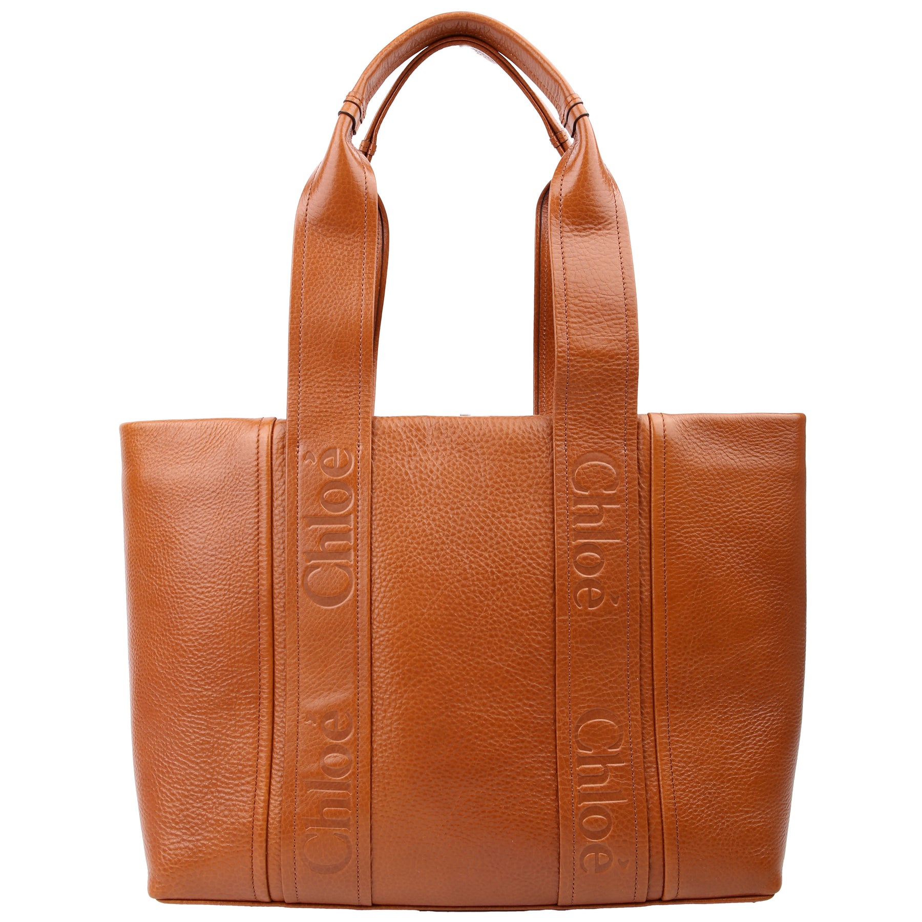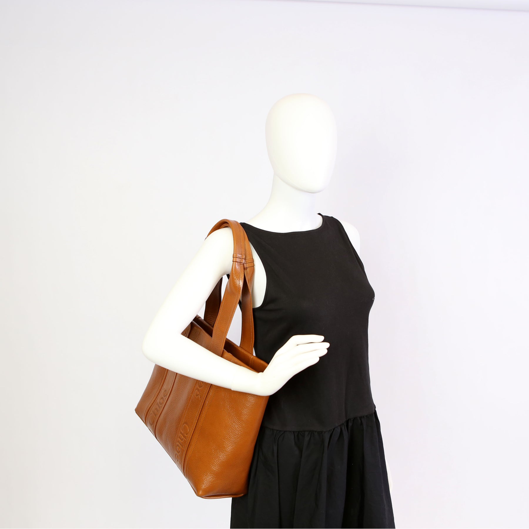This pre-owned Chloe Woody Medium Shiny Grained Leather Tote is guaranteed 100% authentic.